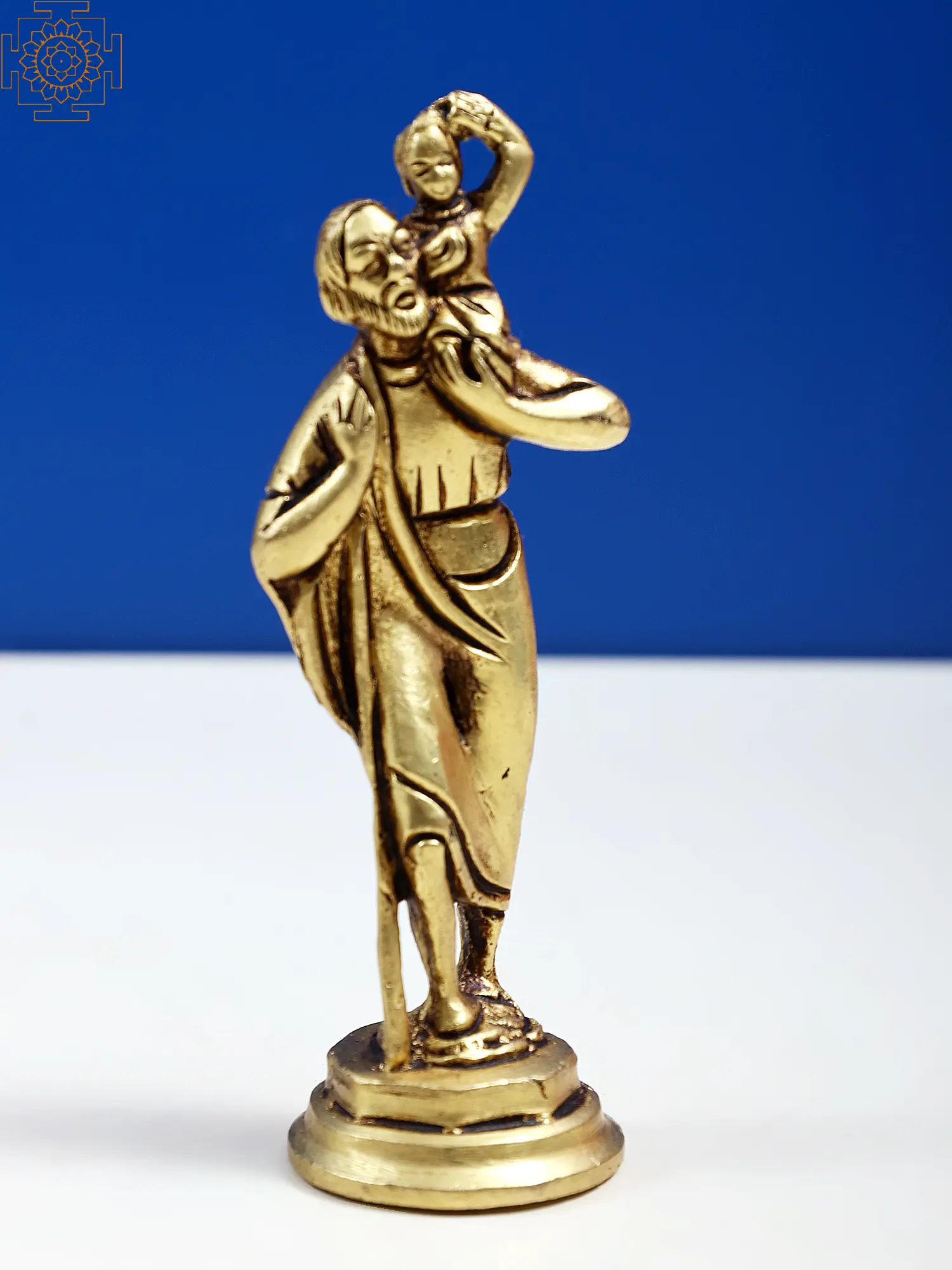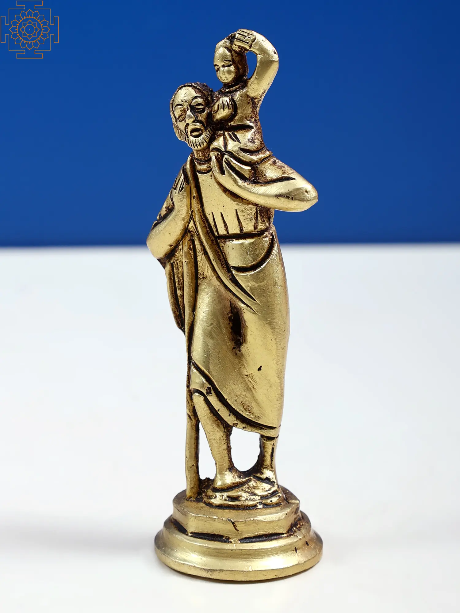 This brass statue represents the revered Christian saint Christopher, the patron saint of travelers, who protects the wanders and the pilgrims from the known and unknown dangers on their journeys.