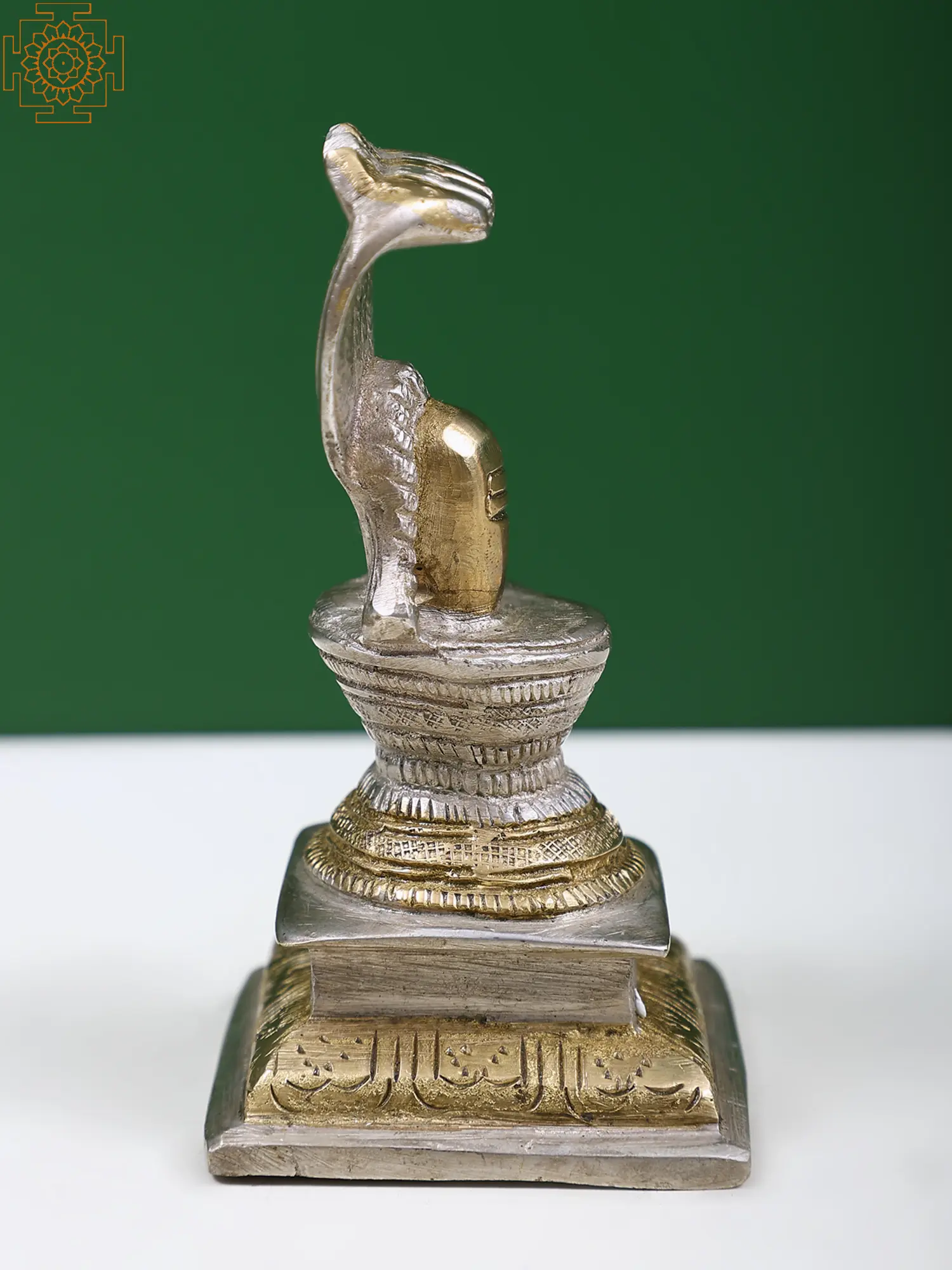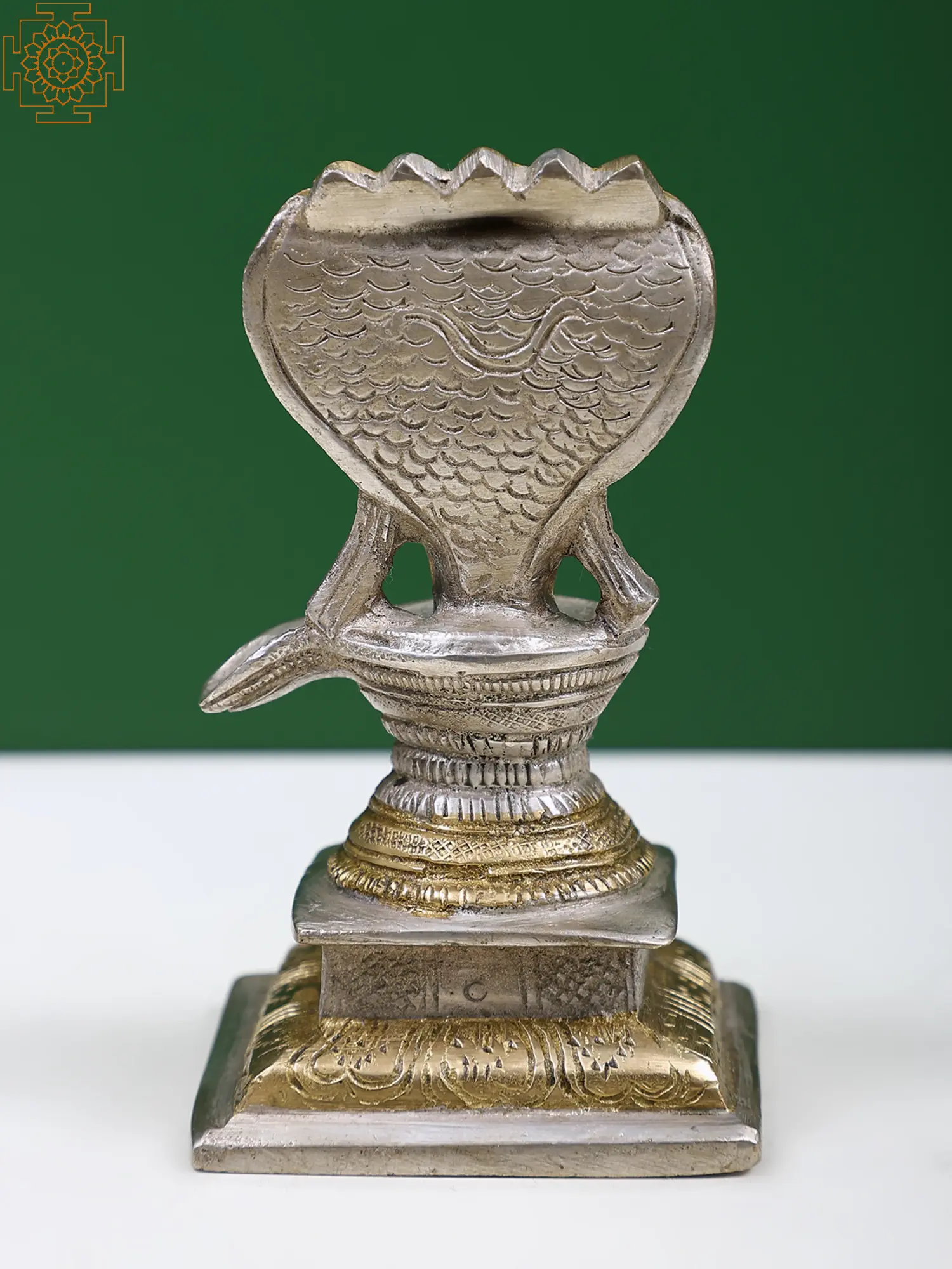 3" Small Brass Shiva Linga with Nandi and Five - Hooded Snake Crown