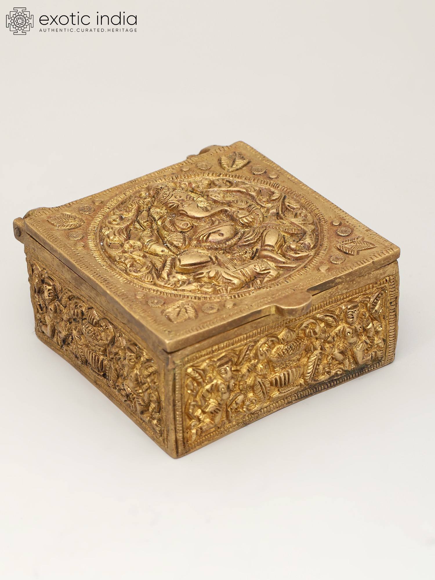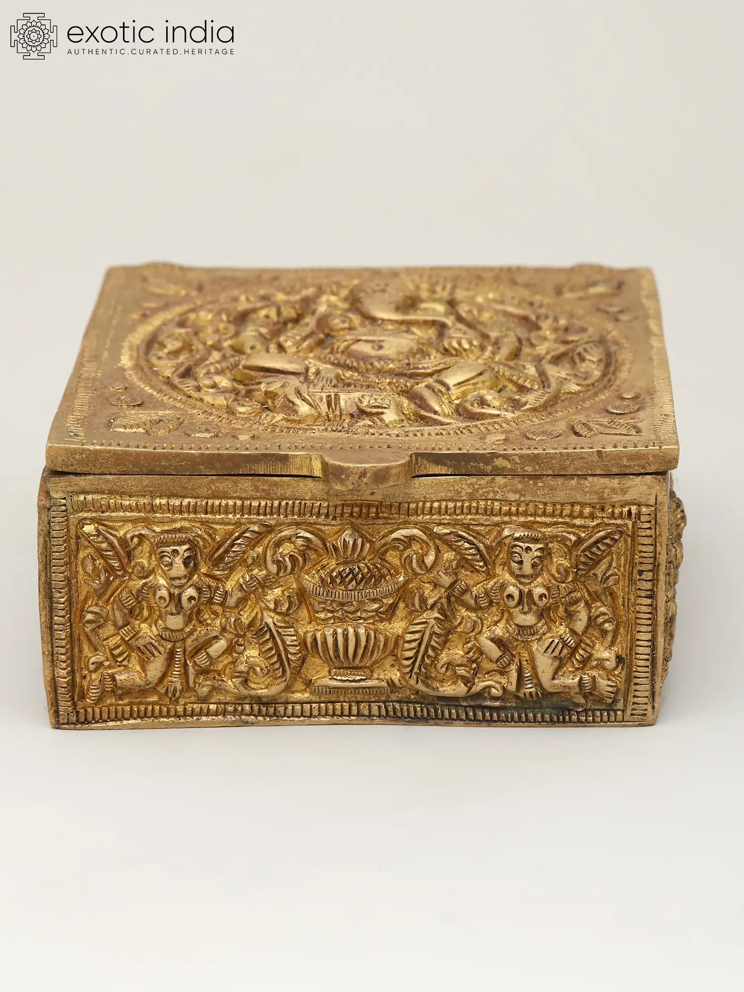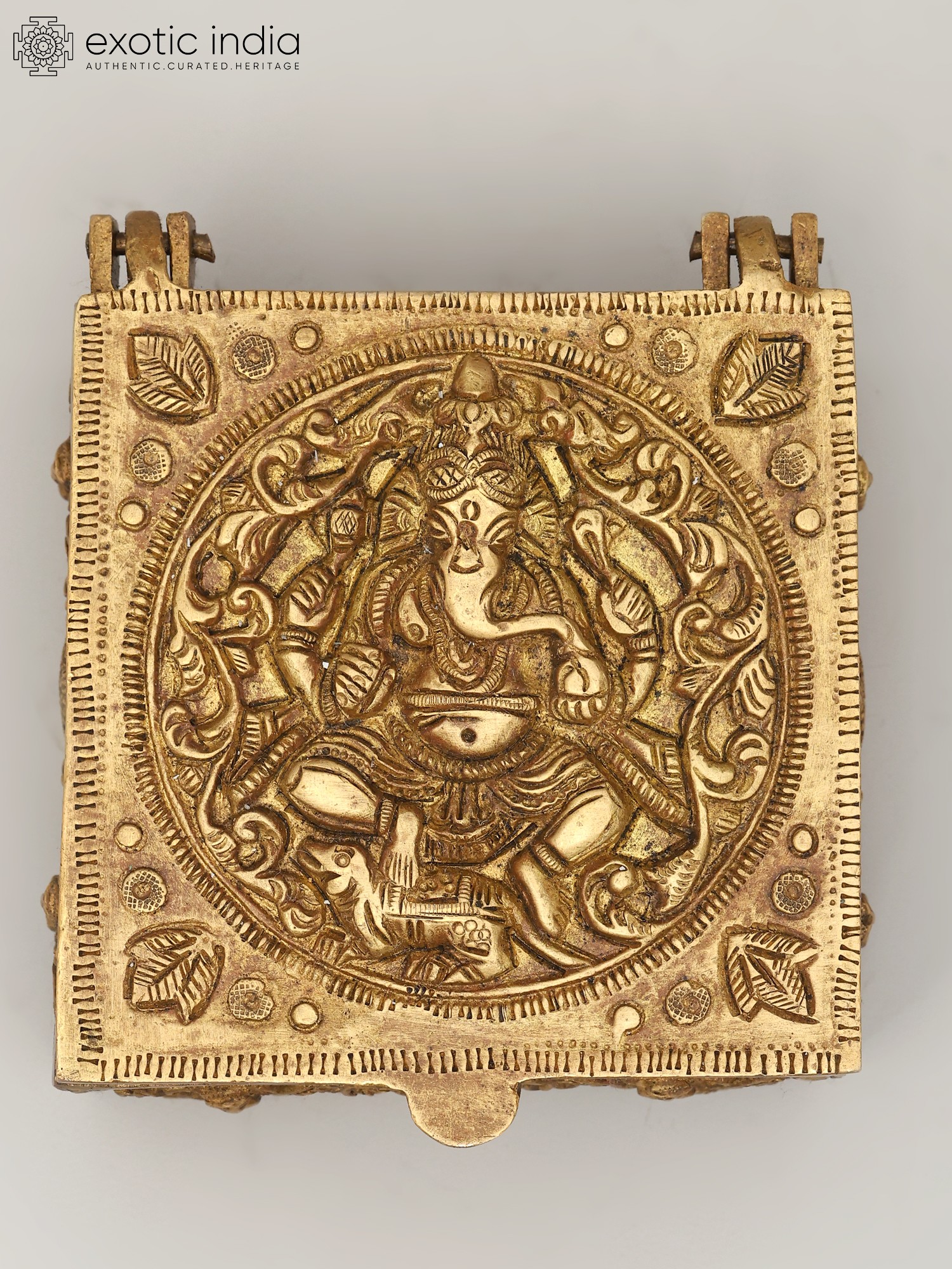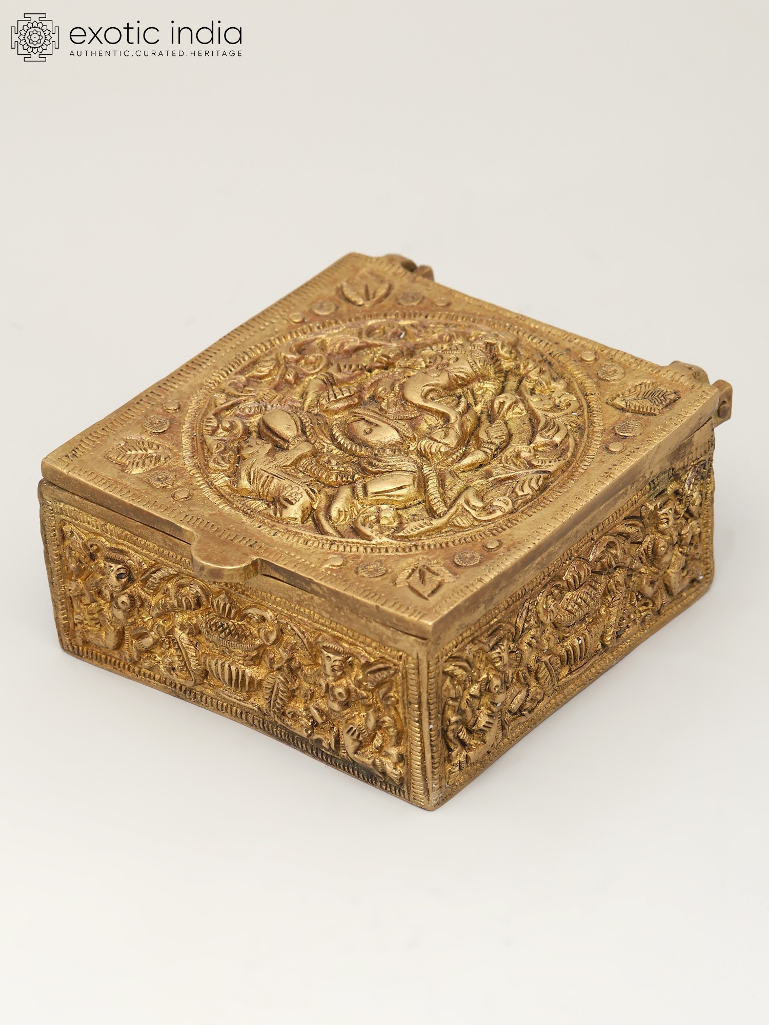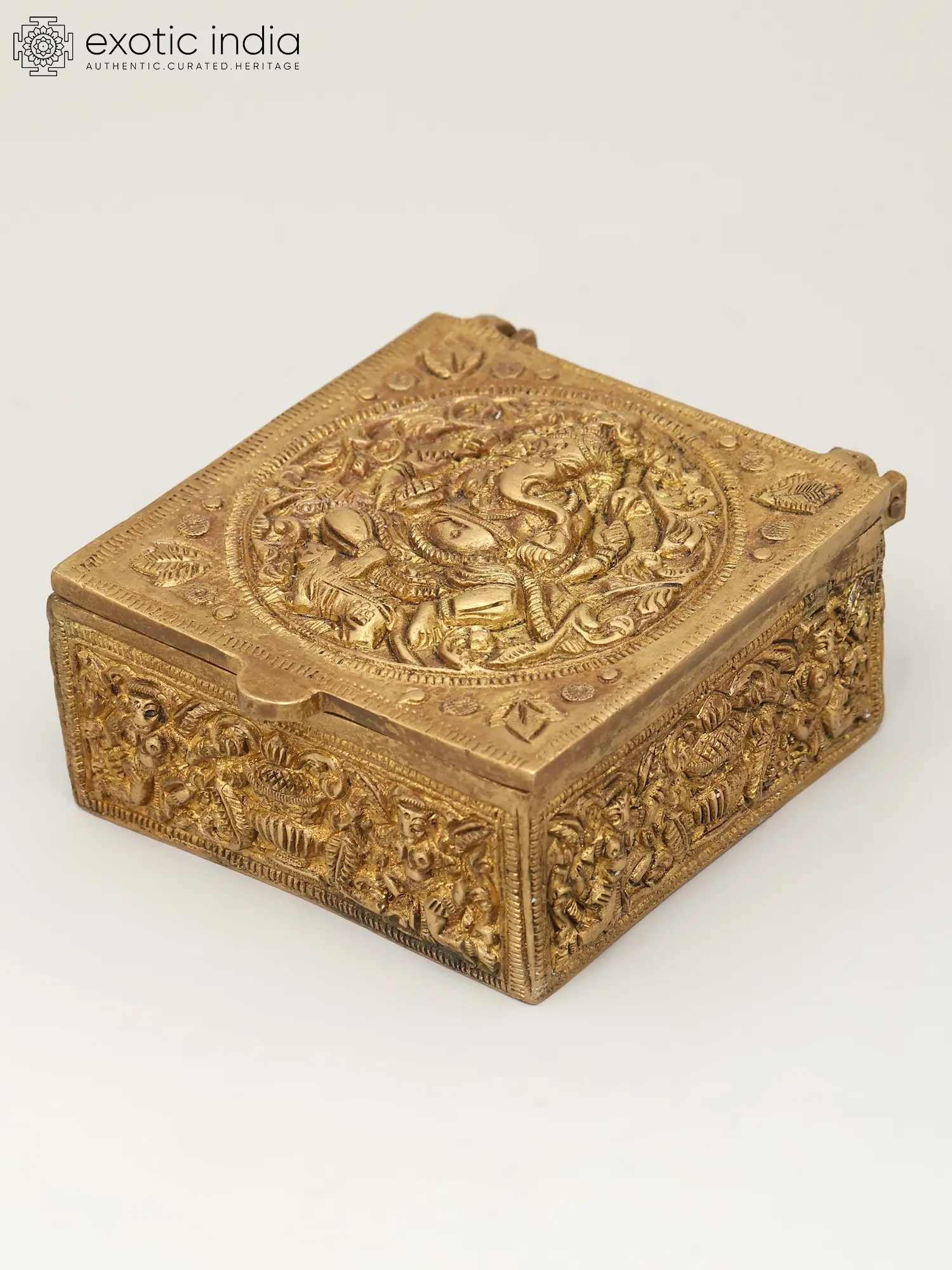 5" Sri Ganesh Brass Ritual Box with Lids | Handmade | Made in India