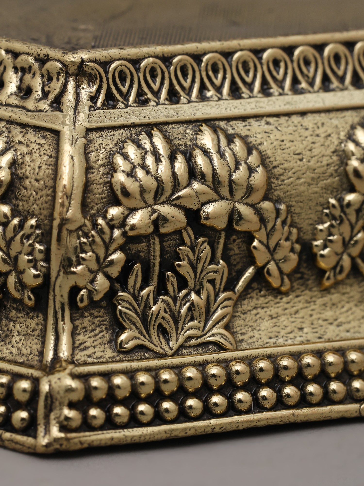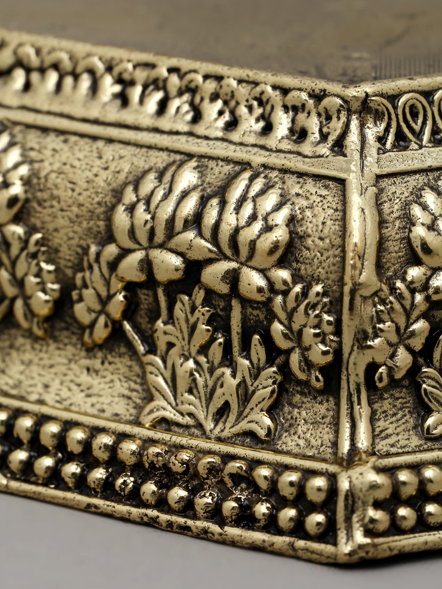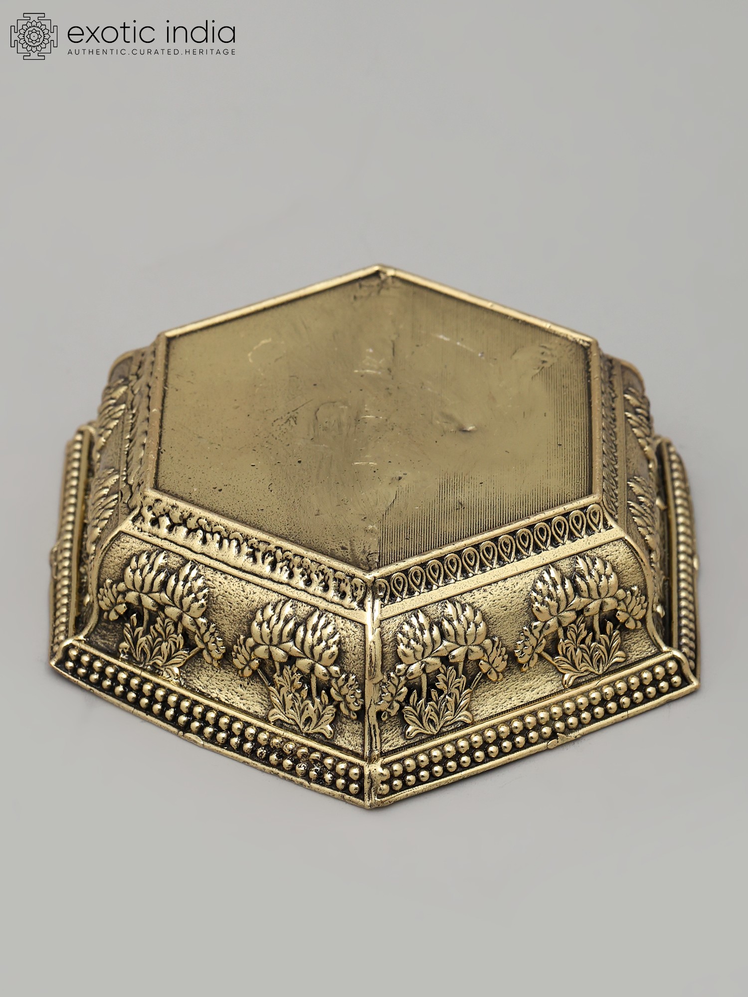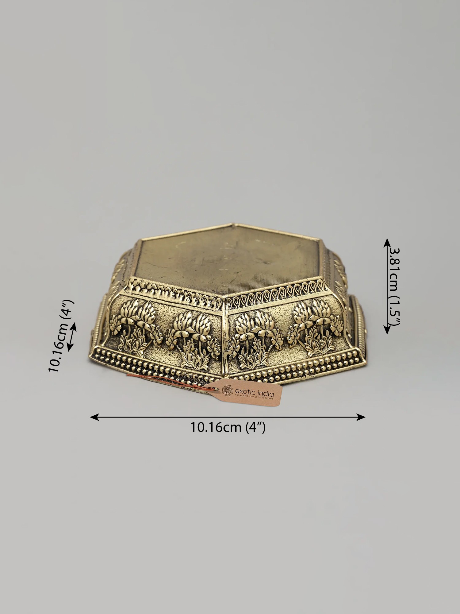 Created from high-quality brass, this pedestal possesses a warm, golden hue that radiates a sense of timelessness and sacredness. The craftsmanship is evident in the precise detailing of the lotus motifs and the smooth, polished surface. The sturdiness of the brass ensures that it can safely and securely support your statues, while the elegant design enhances their visual appeal. Whether you are a seasoned practitioner or just beginning your spiritual journey, this pedestal will be a cherished addition to your home or shrine. Every detail, from the overall shape to the individual lotus petals, is thoughtfully executed, reflecting a deep understanding of artistic tradition and spiritual significance. Bring home this beautiful and functional piece, and let it serve as a constant reminder of the divine presence in your life.