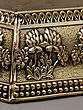 The pedestal is adorned with intricately embossed lotus designs. The lotus flower holds profound symbolic meaning in many Eastern religions and cultures, particularly Hinduism and Buddhism. Emerging from murky waters, the lotus blossoms into exquisite beauty, symbolizing purity, enlightenment, rebirth, and transcendence. The unfolding petals represent the expansion of the soul and the journey towards spiritual awakening. In Hindu mythology, many deities are depicted seated upon lotus thrones, symbolizing their divine status and their connection to purity and spiritual wisdom. Lakshmi, the goddess of prosperity and good fortune, is often associated with the lotus, as is Brahma, the creator god, who is believed to have emerged from a lotus that sprouted from Vishnu's navel.