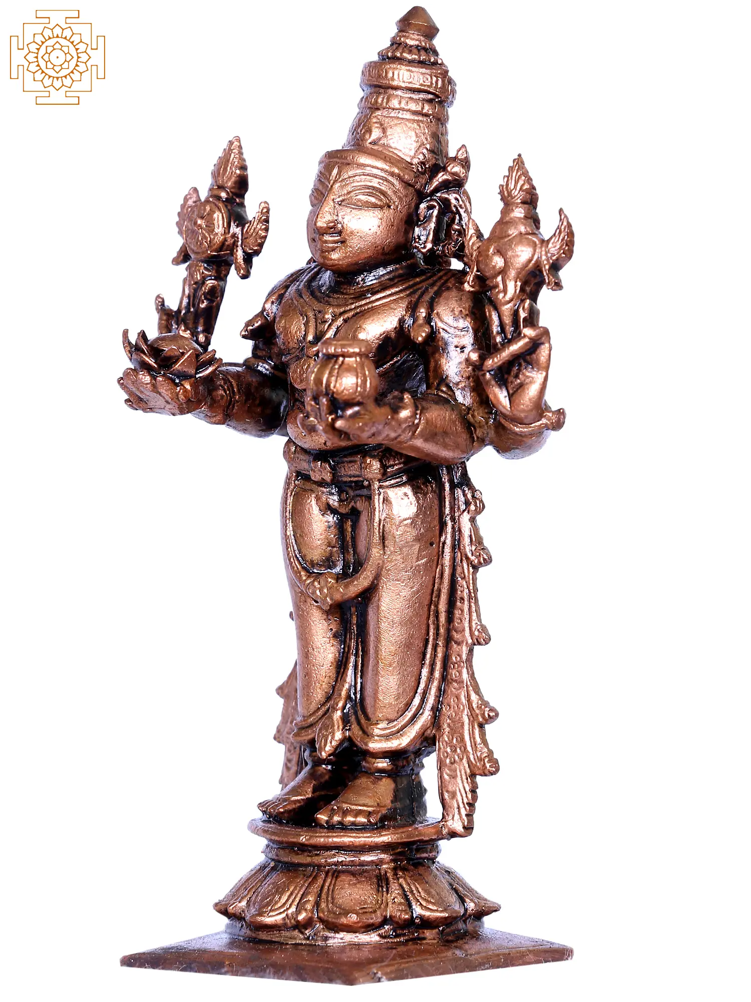 The Small Bronze Bhagawan Dhanvantari sculpture portrays the divine physician of the Devas, carrying the celestial bowl of Amrita, the nectar of immortality. With his benevolent expression and healing touch, Dhanvantari embodies the source of health and well-being. This sculpture captures the essence of healing and restoration. Bhagawan Dhanvantari's presence reminds us that in serving and healing others, we find the path to our own inner wholeness. He inspires us to be passionate about the art of compassion and selfless service, knowing that healing others is a sacred journey of discovering our own divine essence.