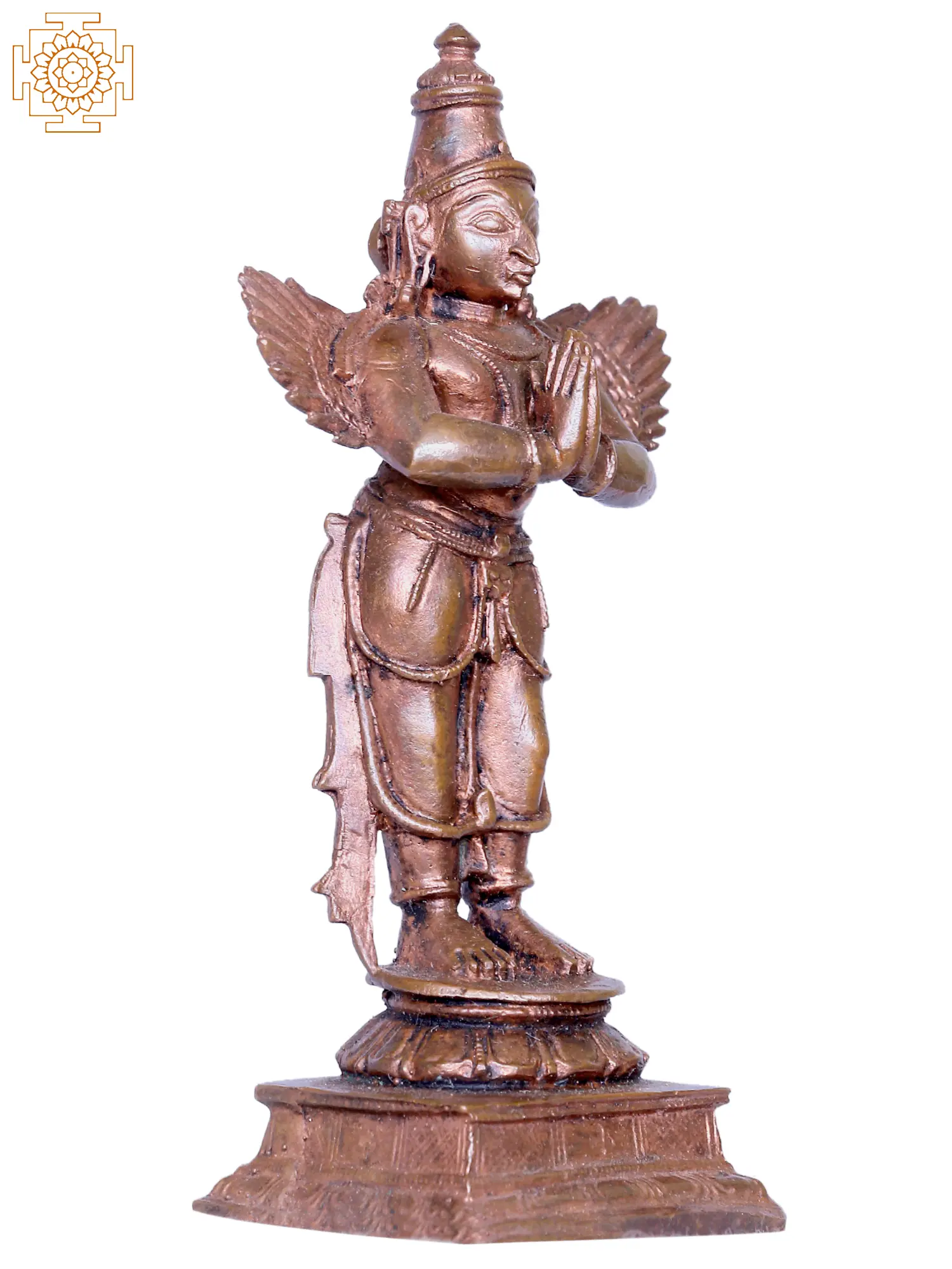 4" Small Standing Garuda Dev in Namaskar Mudra | Bronze Statue