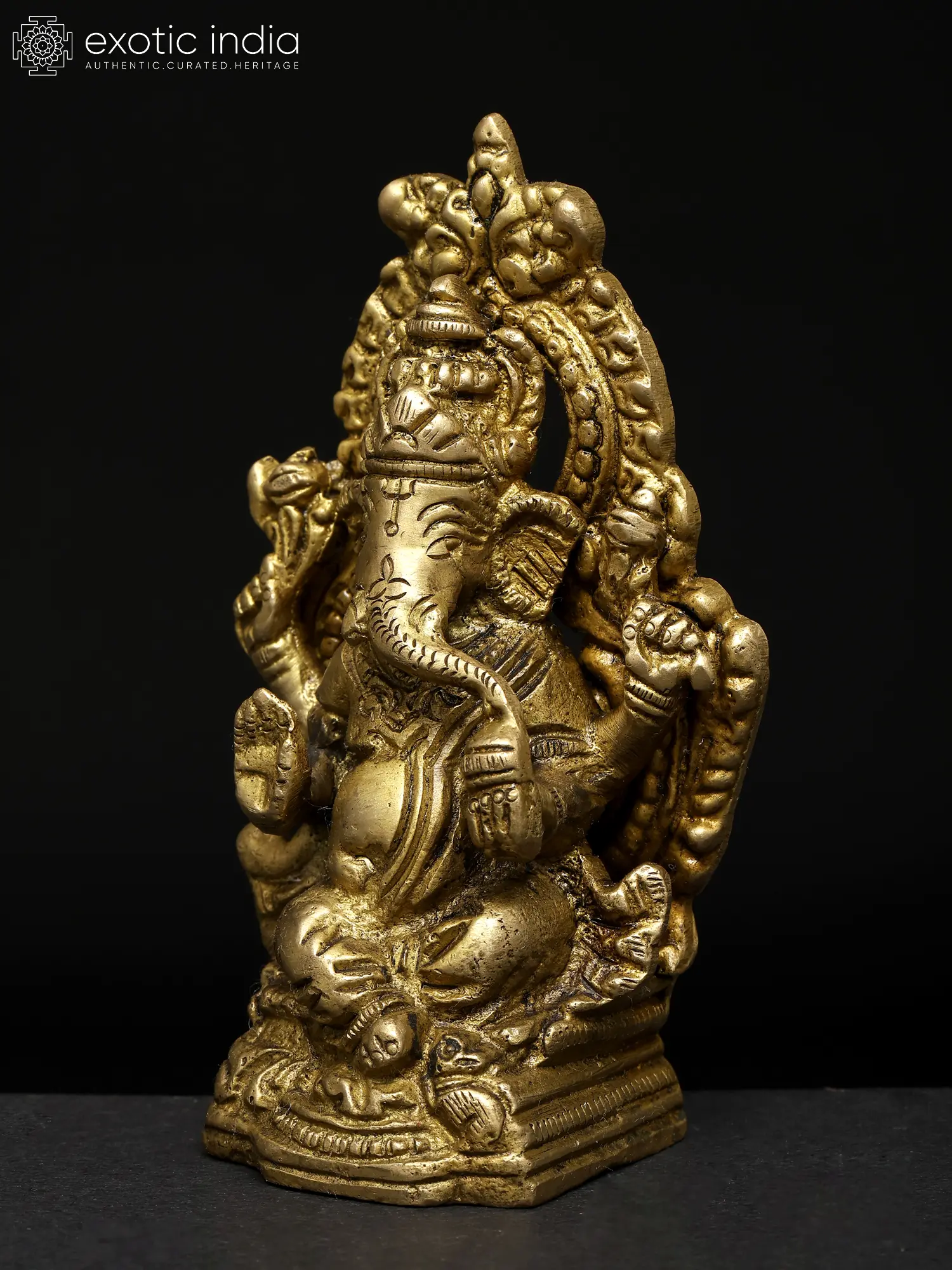 9" Brass Rat with Carving of Ganesha Ji on Back
