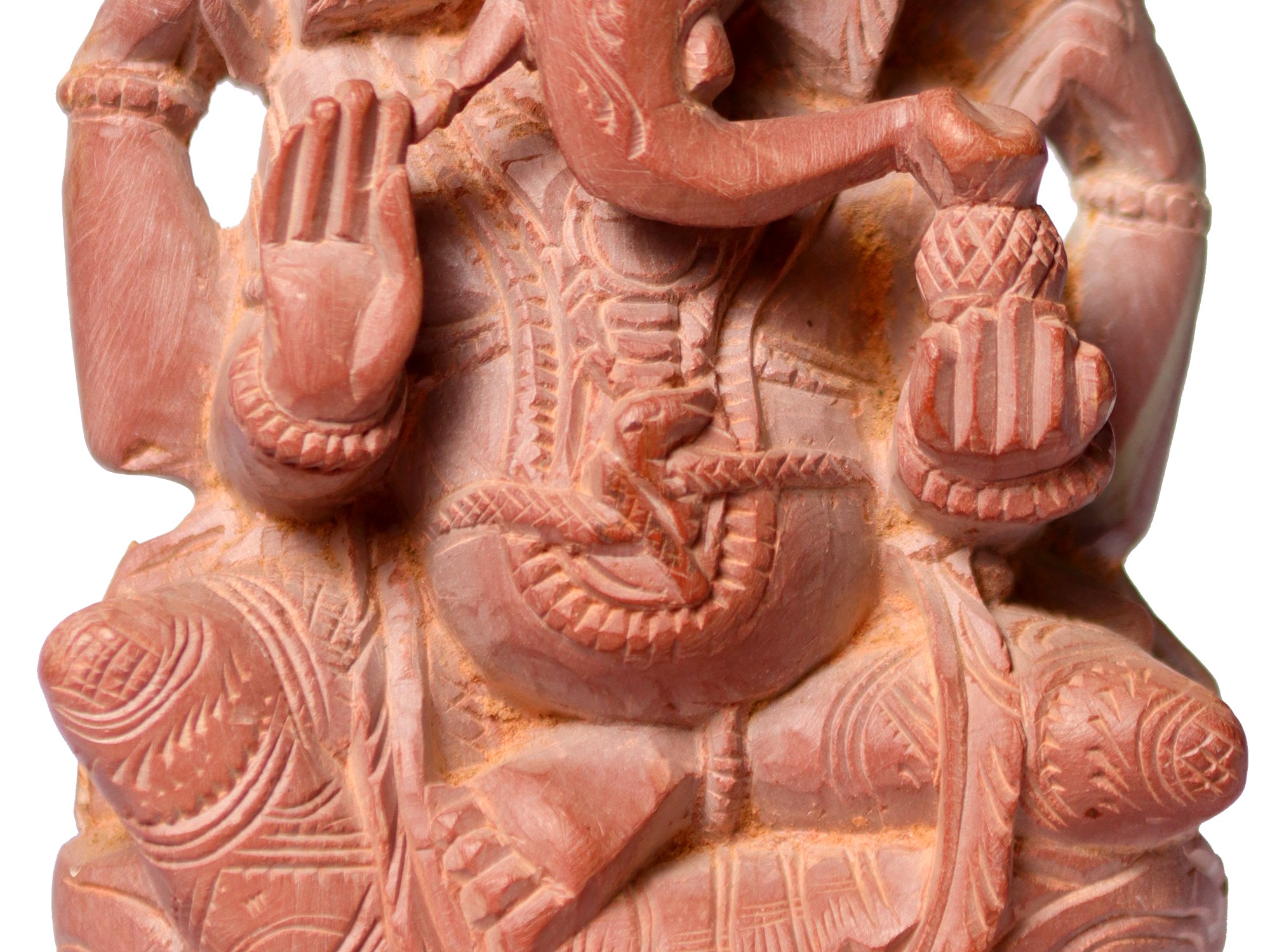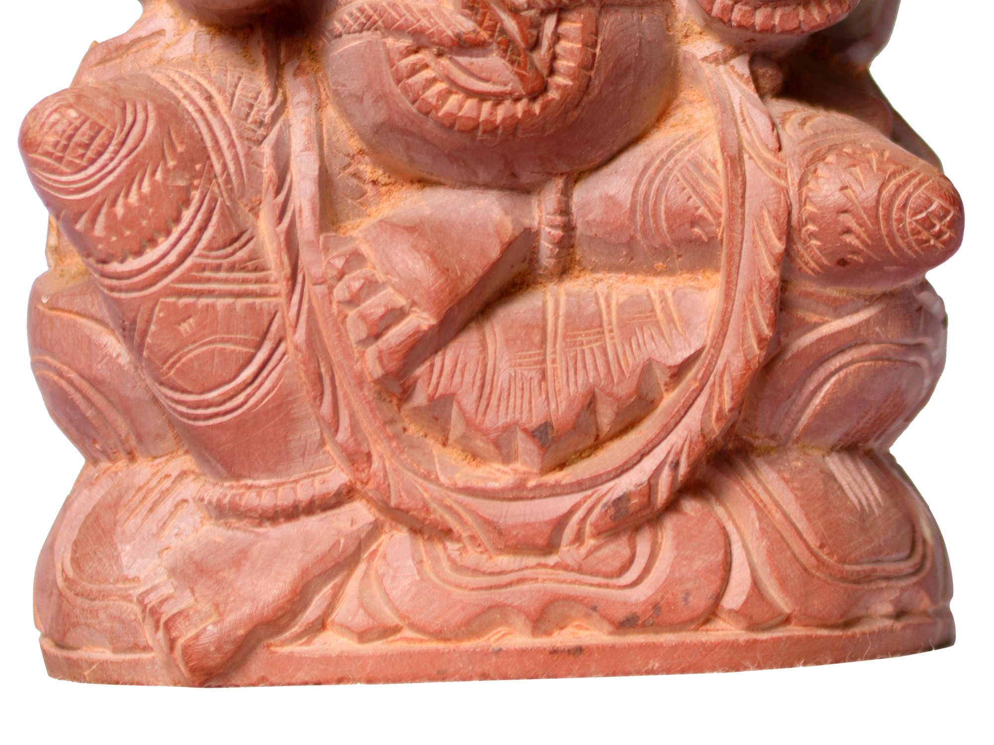 Originating from the rich artistic traditions of Odisha, a state renowned for its stone carving heritage, this idol embodies centuries of spiritual devotion and meticulous craftsmanship. The artisans of Odisha have a profound connection to their craft, passed down through generations, infusing each creation with a sense of sacredness. The choice of pink stone lends a unique warmth and earthy vibrance to the deity, making it a captivating centerpiece for any altar, desk, or sacred space. The intricate detailing, from the folds of his dhoti to the textured representation of his ornaments and the symbolic weapons, speaks to the skill and dedication of the sculptor.