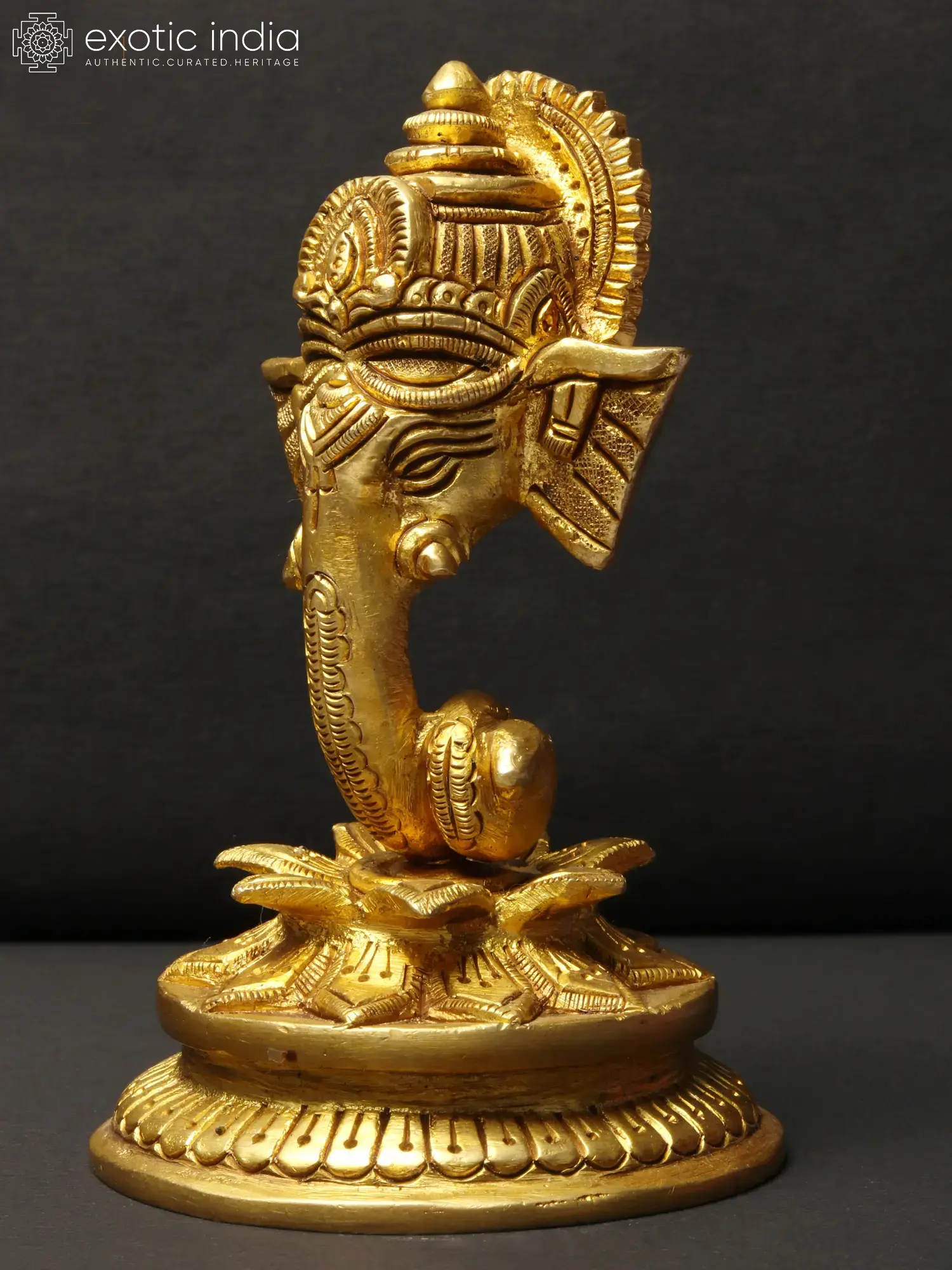 This exquisite brass sculpture portrays Lord Ganesha with his trunk gracefully resting upon a delicate lotus pedestal, symbolizing purity and enlightenment. His large ears symbolize his attentiveness to his devotees’ prayers. Adorned with a majestic crown, Vinayaka exudes regal divinity, symbolizing his supreme authority. A prominent trident (Trishul) mark on his trunk signifies his connection to “Lord Shiva”. This masterpiece radiates grace, wisdom, and the blessings of the beloved Elephant God in a breathtakingly ornate form.