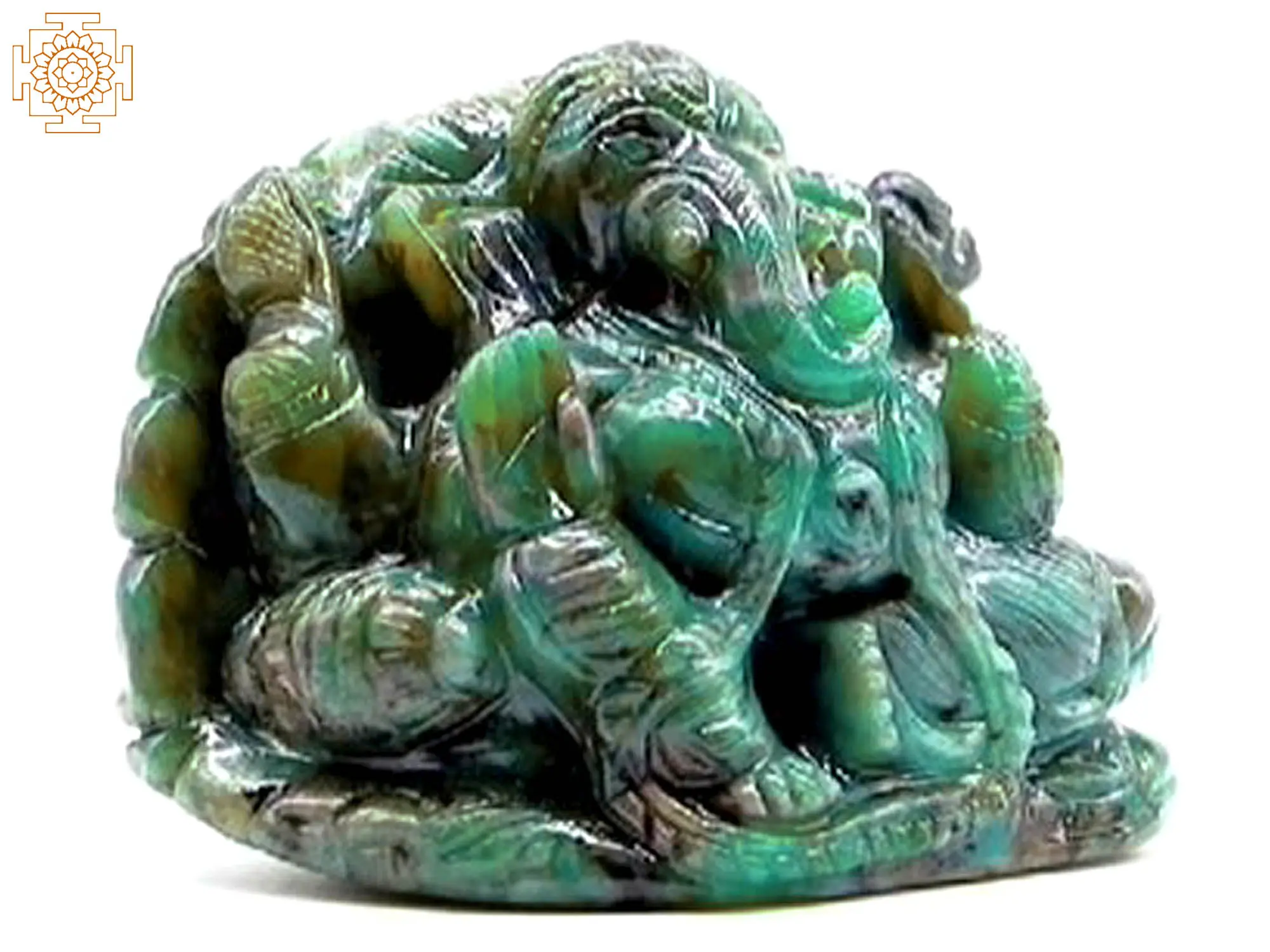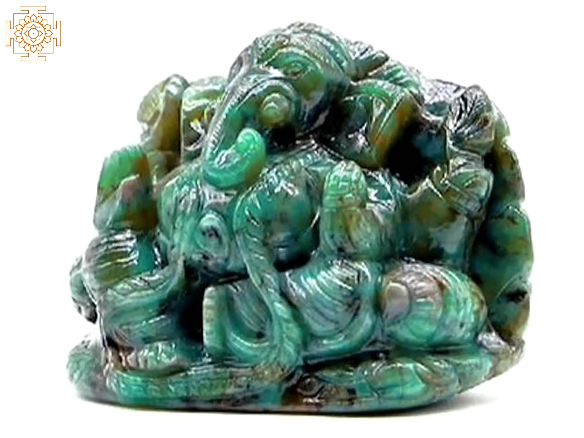Lord Ganesha, the beloved elephant-headed deity, is revered as the harbinger of auspicious beginnings, wisdom, and the remover of obstacles. His presence in the form of this small figurine is a powerful symbol of divine protection and guidance throughout life's journey. At the focus of this figurine lies the precious emerald gem, renowned for its vibrant green hue and association with abundance and prosperity. Emerald is a stone of growth, fertility, and renewal, making it a fitting choice to accompany Lord Ganesha's blessings.