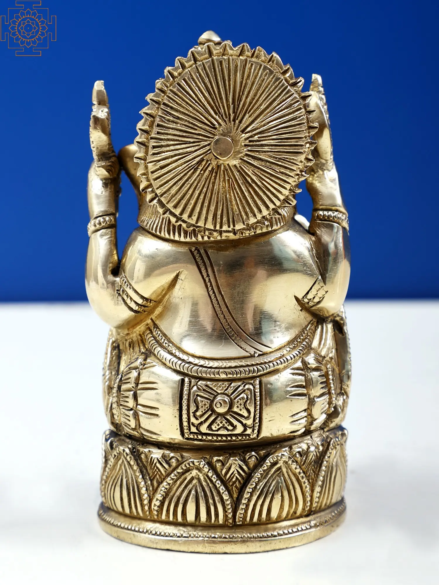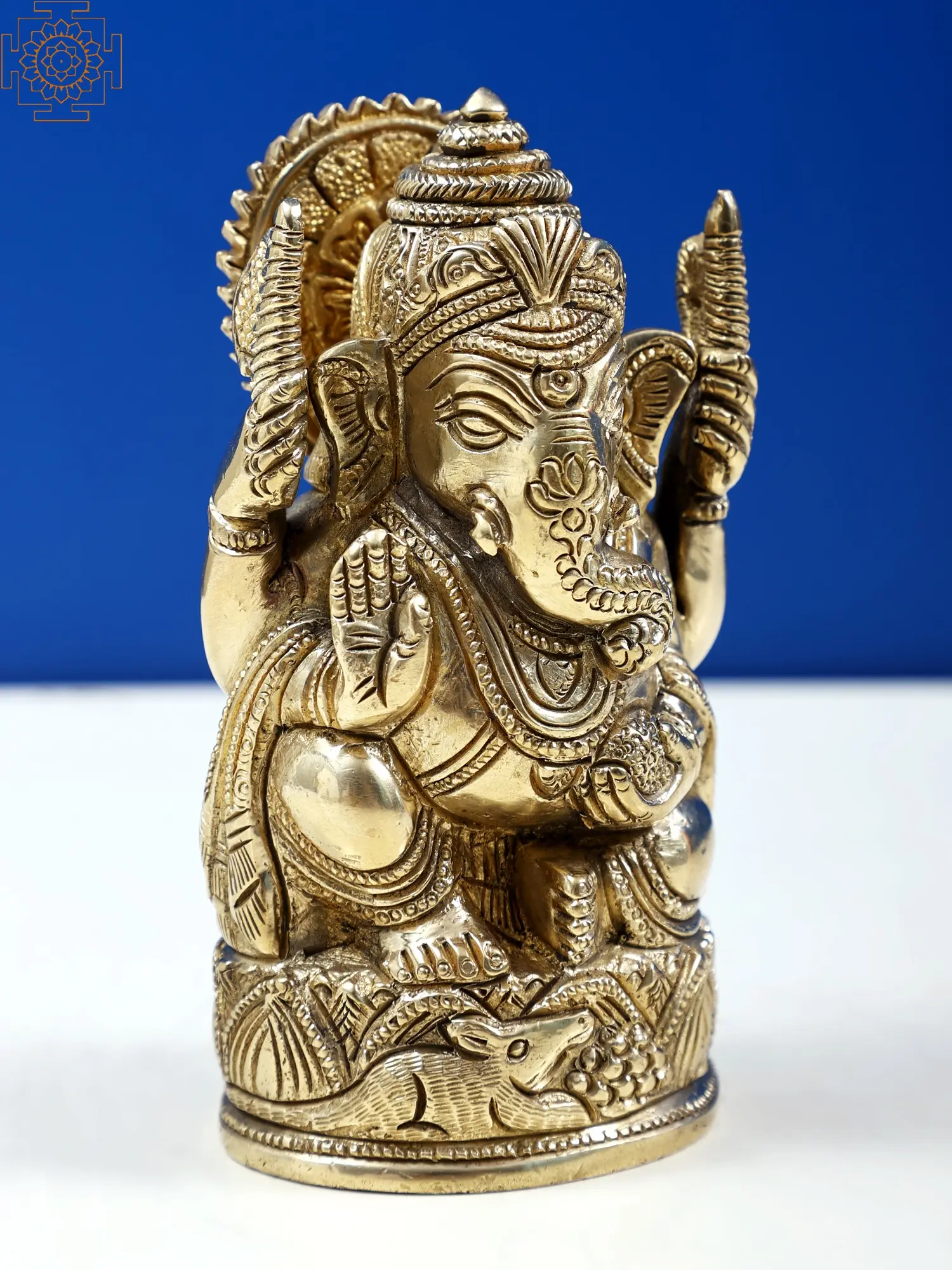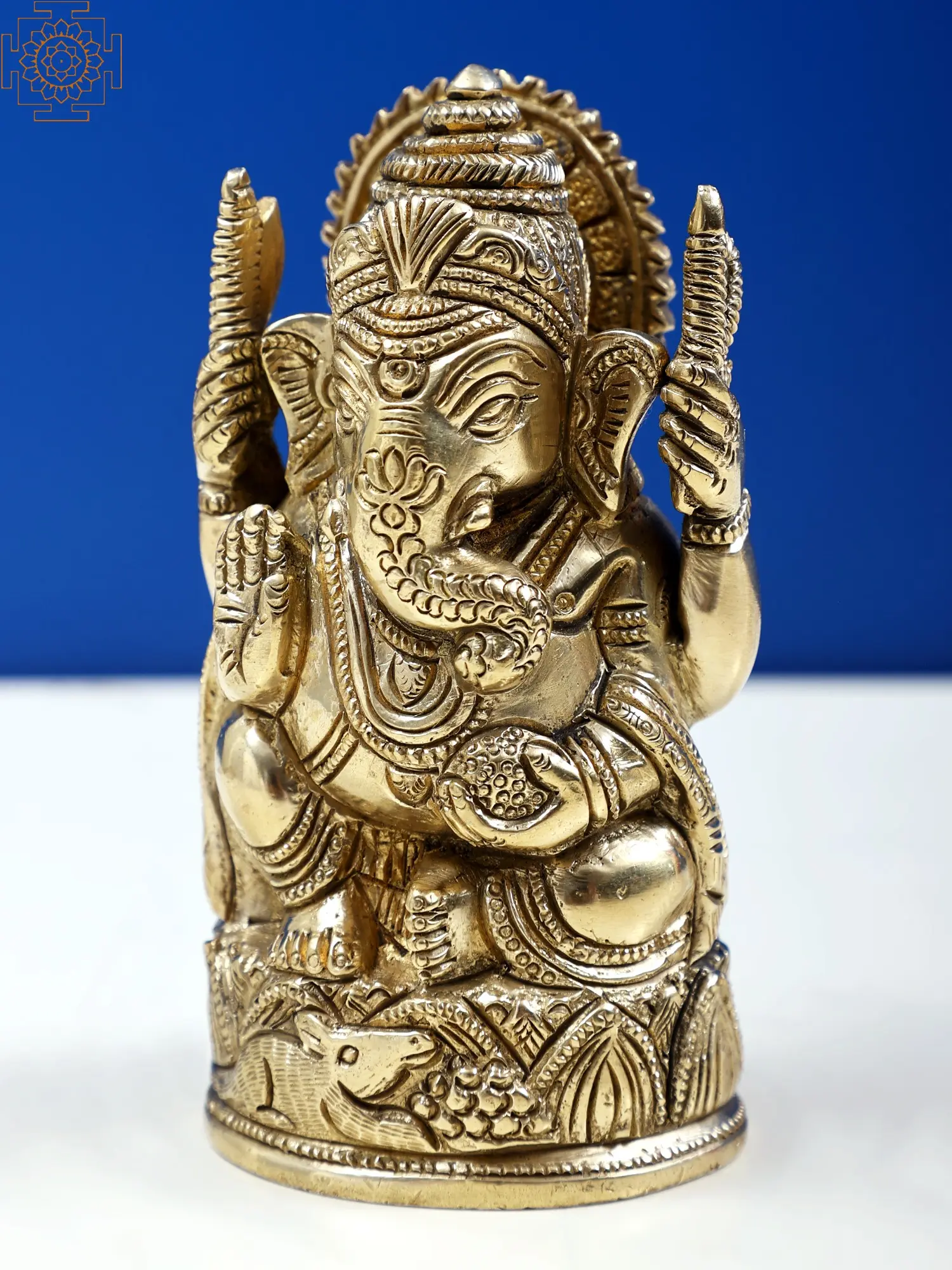 Ganesha, also known as “Vighneshvara”, is the “Harbinger of Success”, often worshipped by the people before they begin anything new. In this brass rendition, He is seated in “Lalitasana Pose”, exuding a sense of calm and majesty. His front right hand, raised in the “Ashirwad Mudra” (gesture of benediction), bestows blessings upon all who seek his guidance. With an elephant head symbolising wisdom and a rotund form denoting abundance, Ganesha embodies the balance of intellect and prosperity. Devotees invoke his presence to surmount challenges, embark on new ventures, and invoke prosperity.
