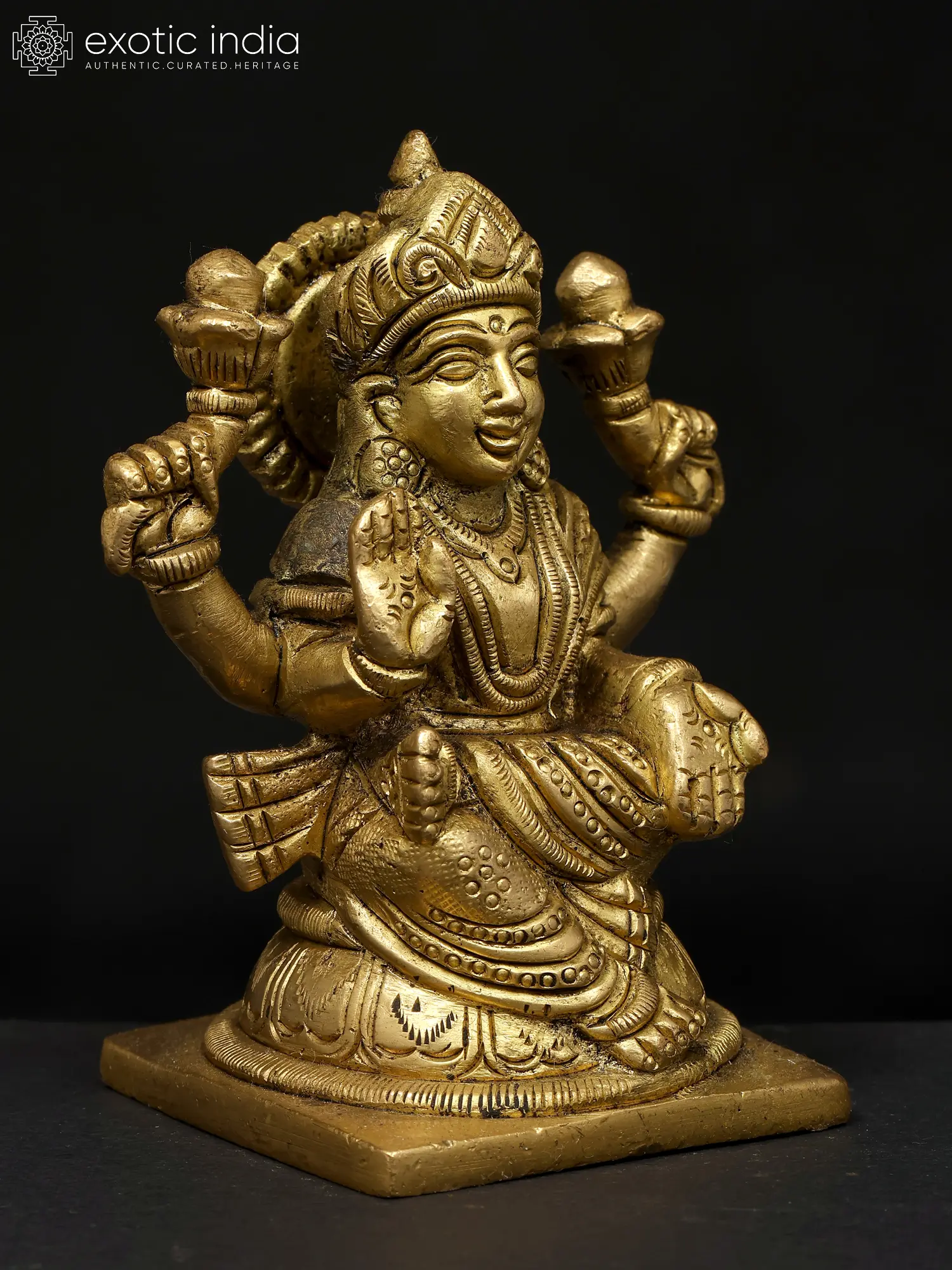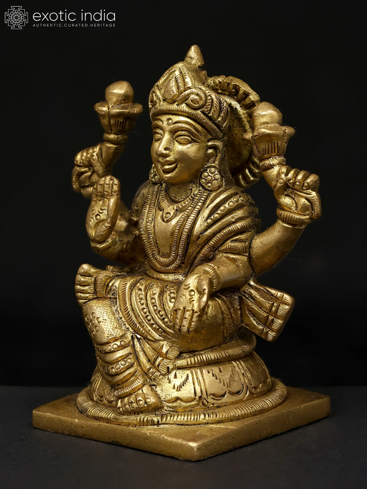 Small Brass Goddess Lakshmi Padam with Vaishnava Symbols