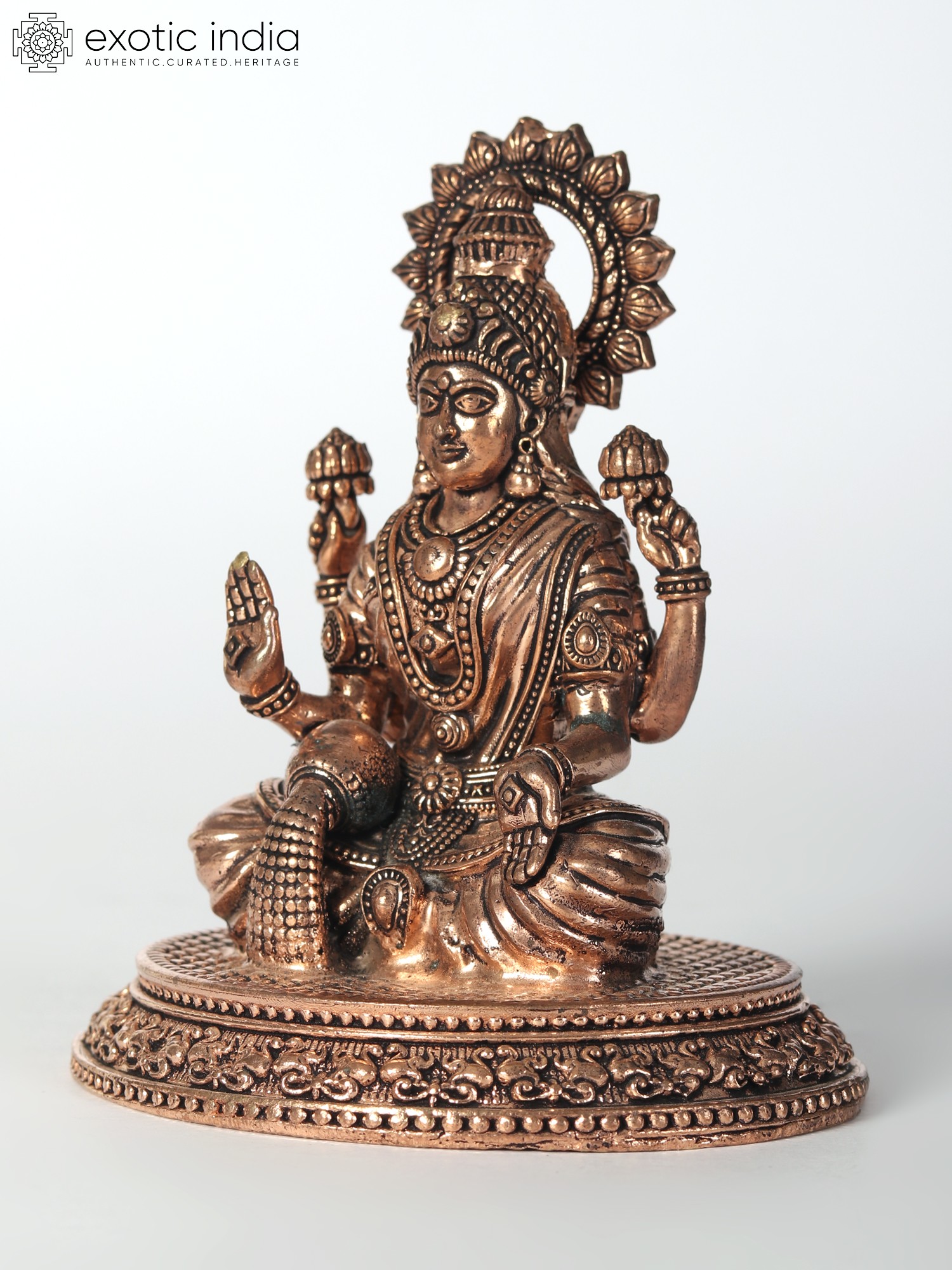 4" Small Four-Armed Blessing Goddess Lakshmi Brass Statue