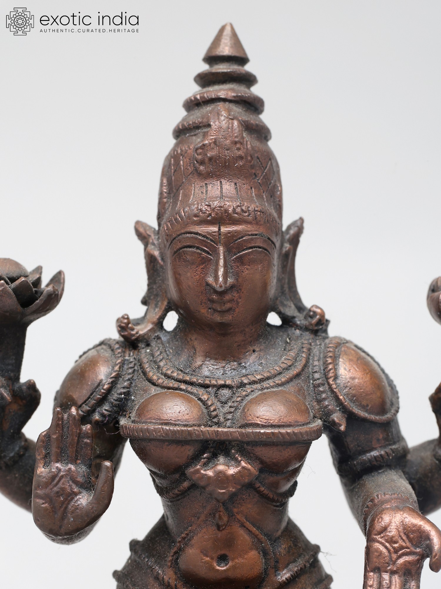 7" Standing Lord Vishnu with Devi Lakshmi, Garuda and Narada Muni | Copper Statue
