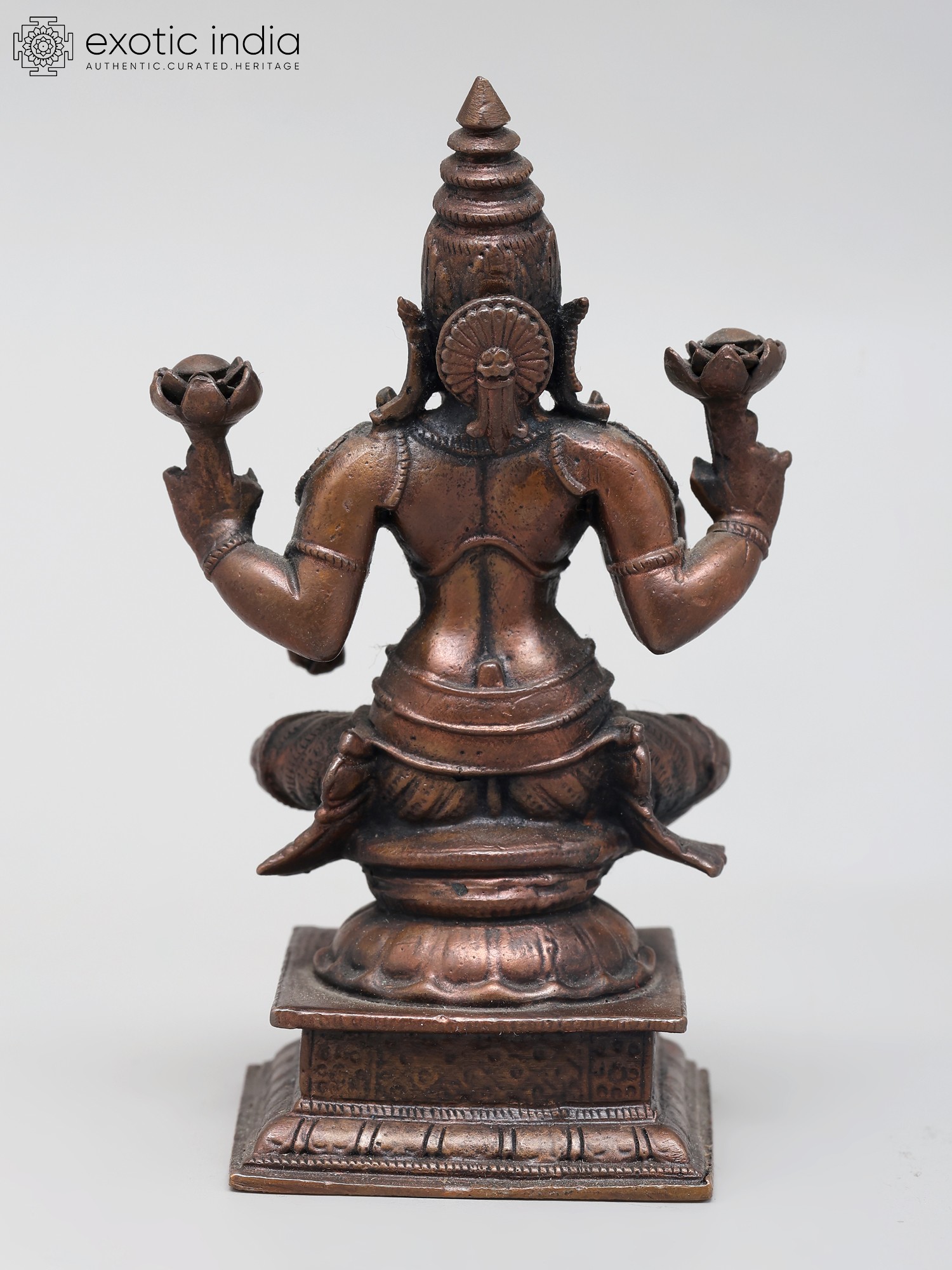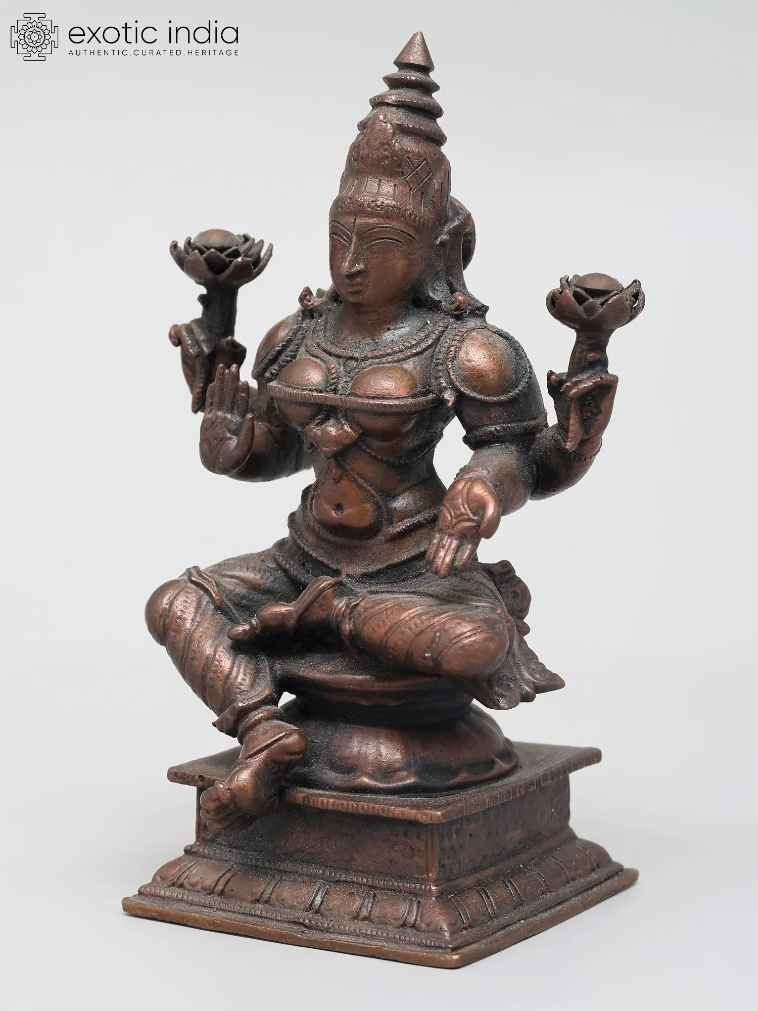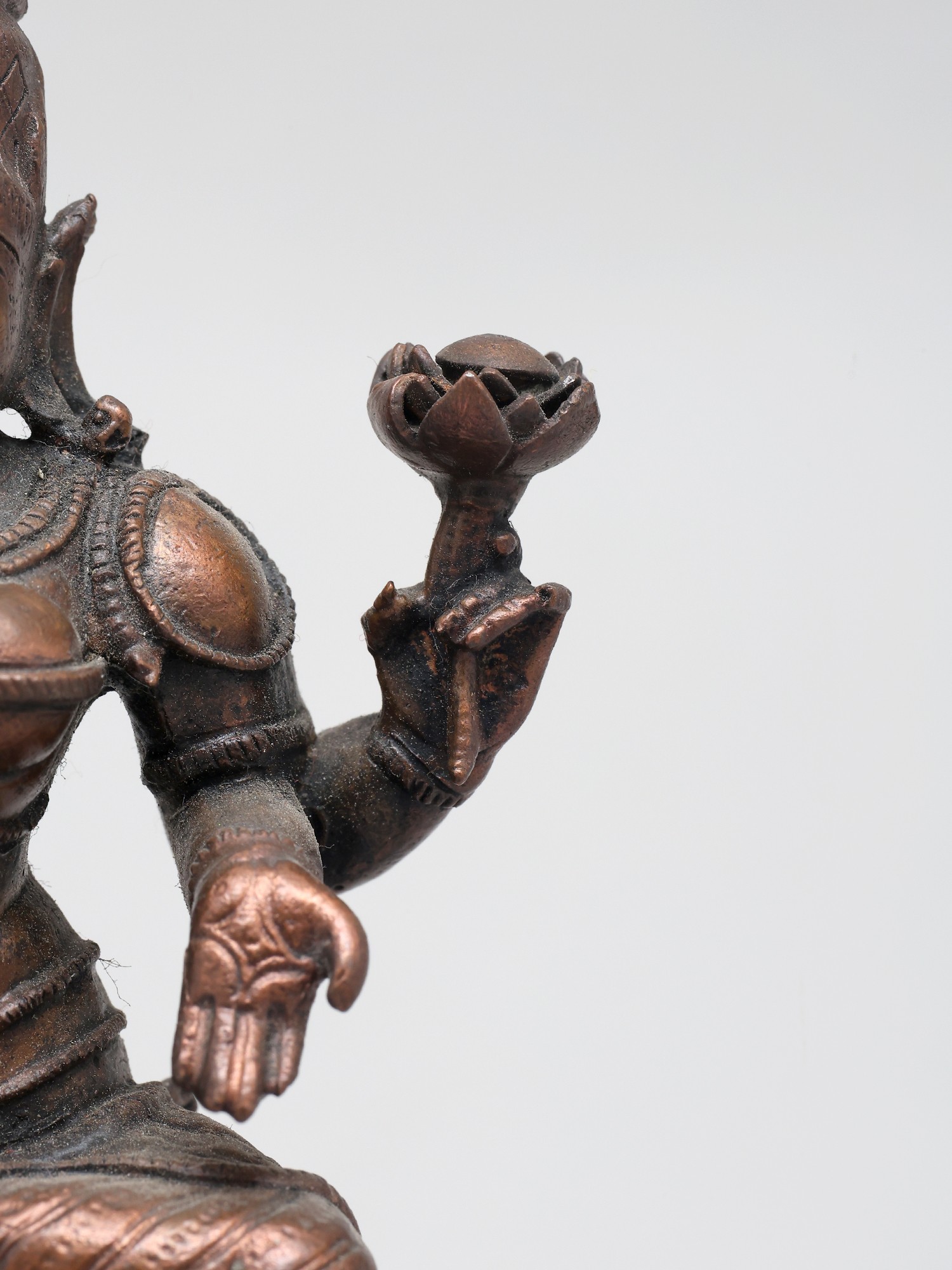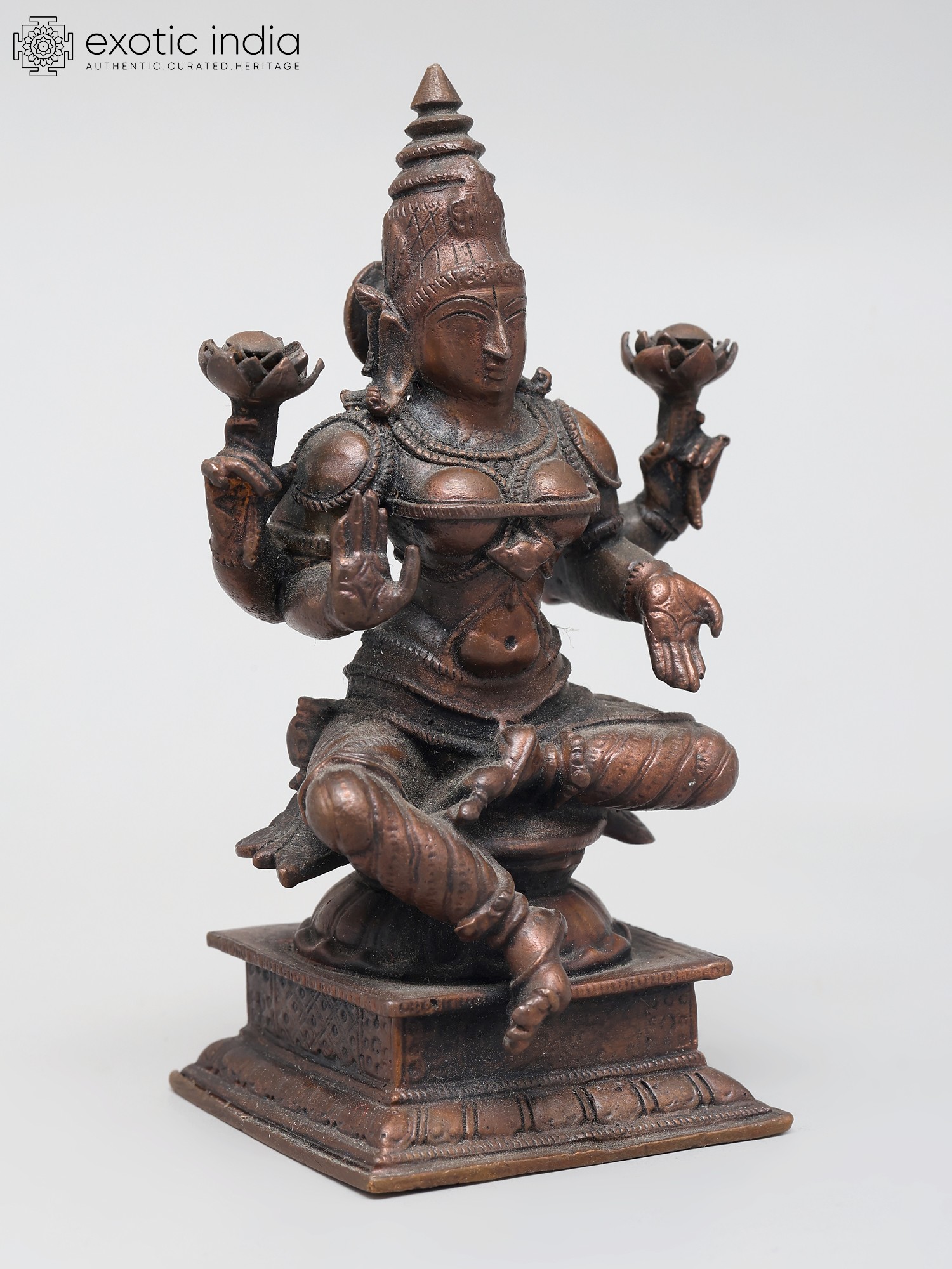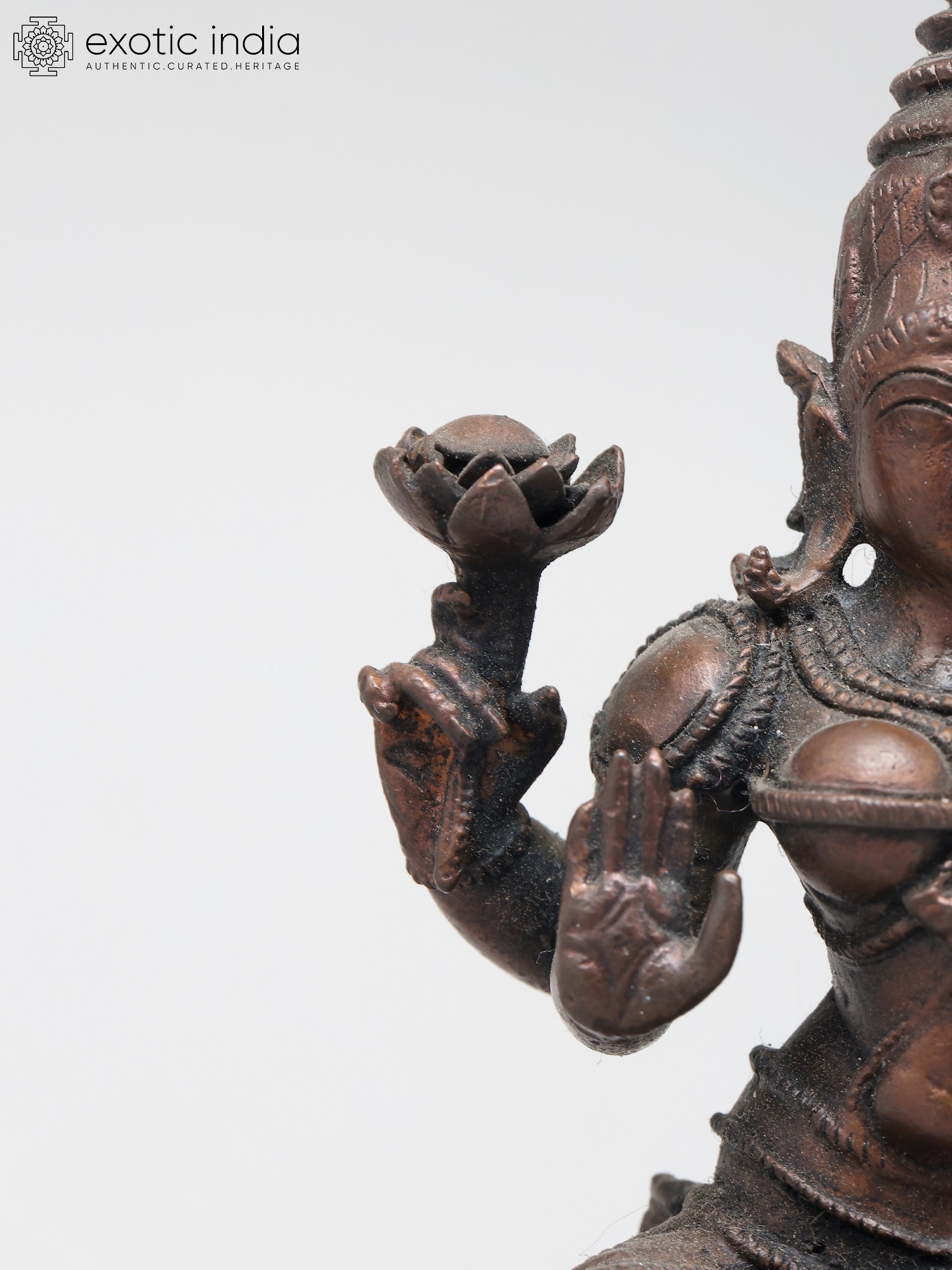 5" Small Lord Narasimha Seated on Serpent Throne with Devi Lakshmi | Copper Statue