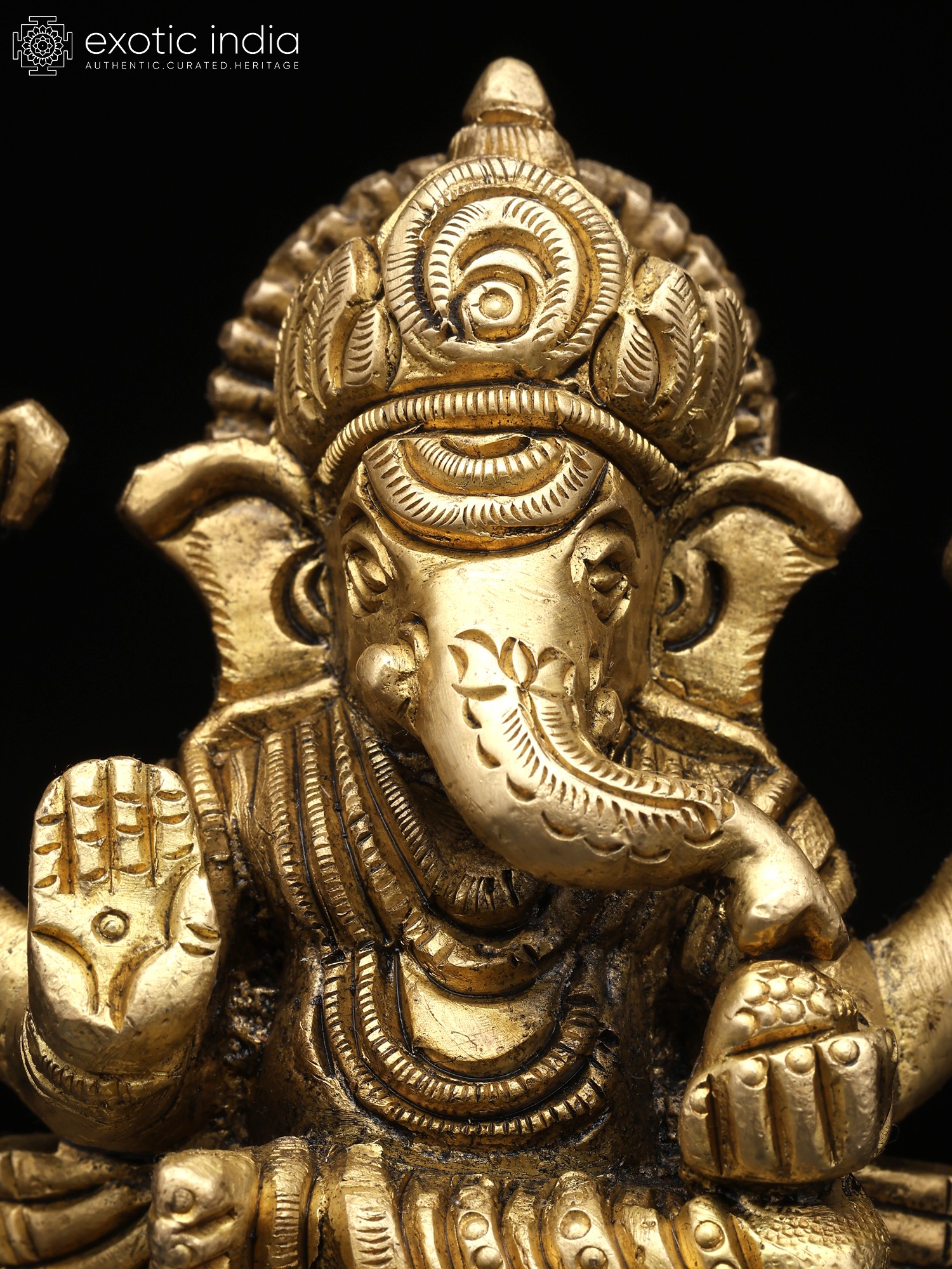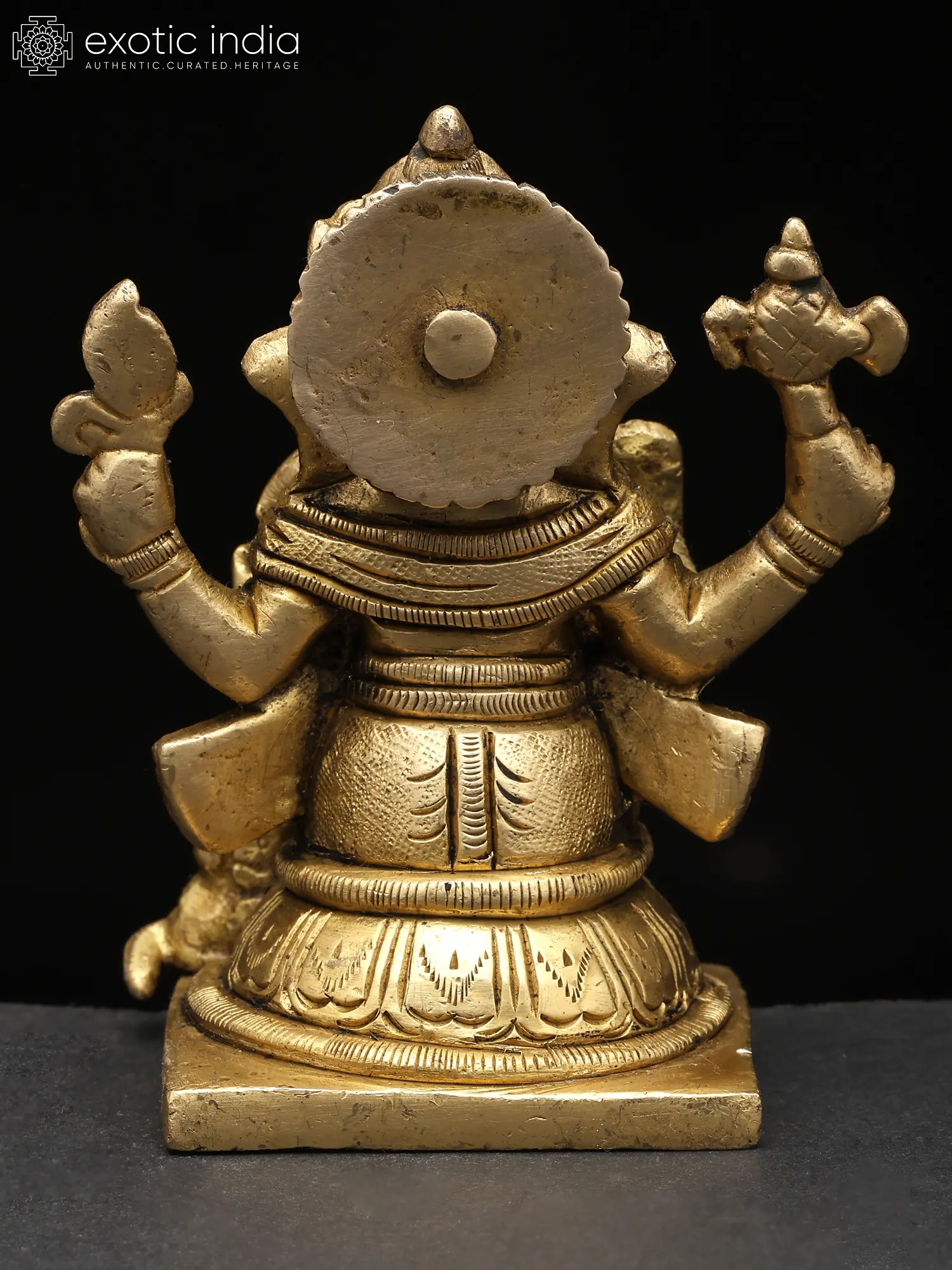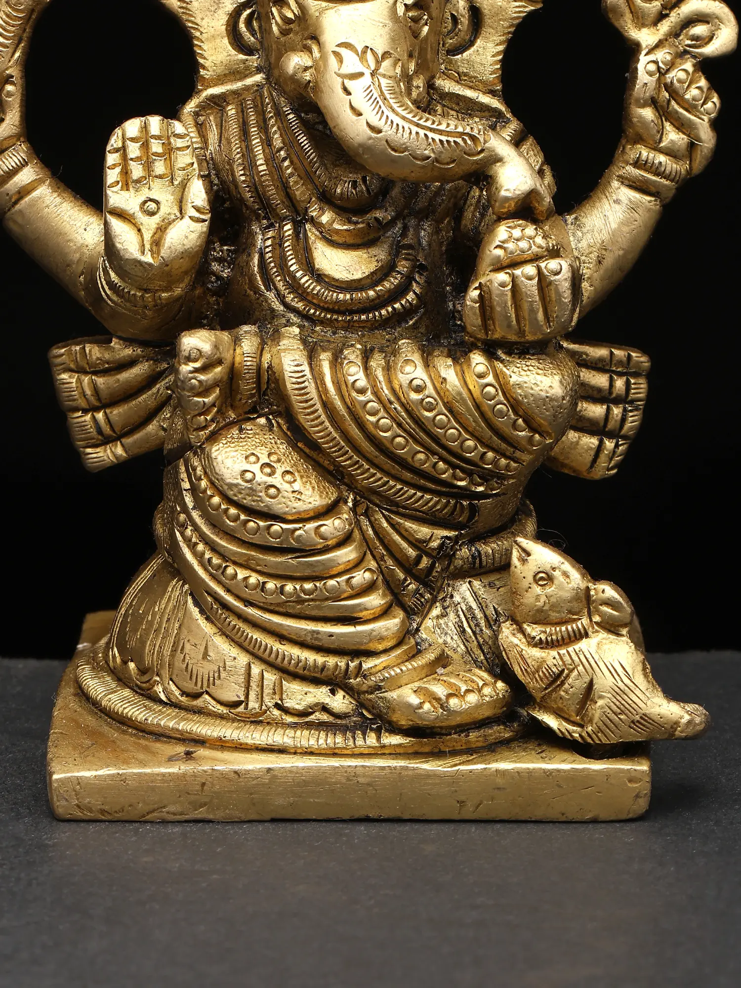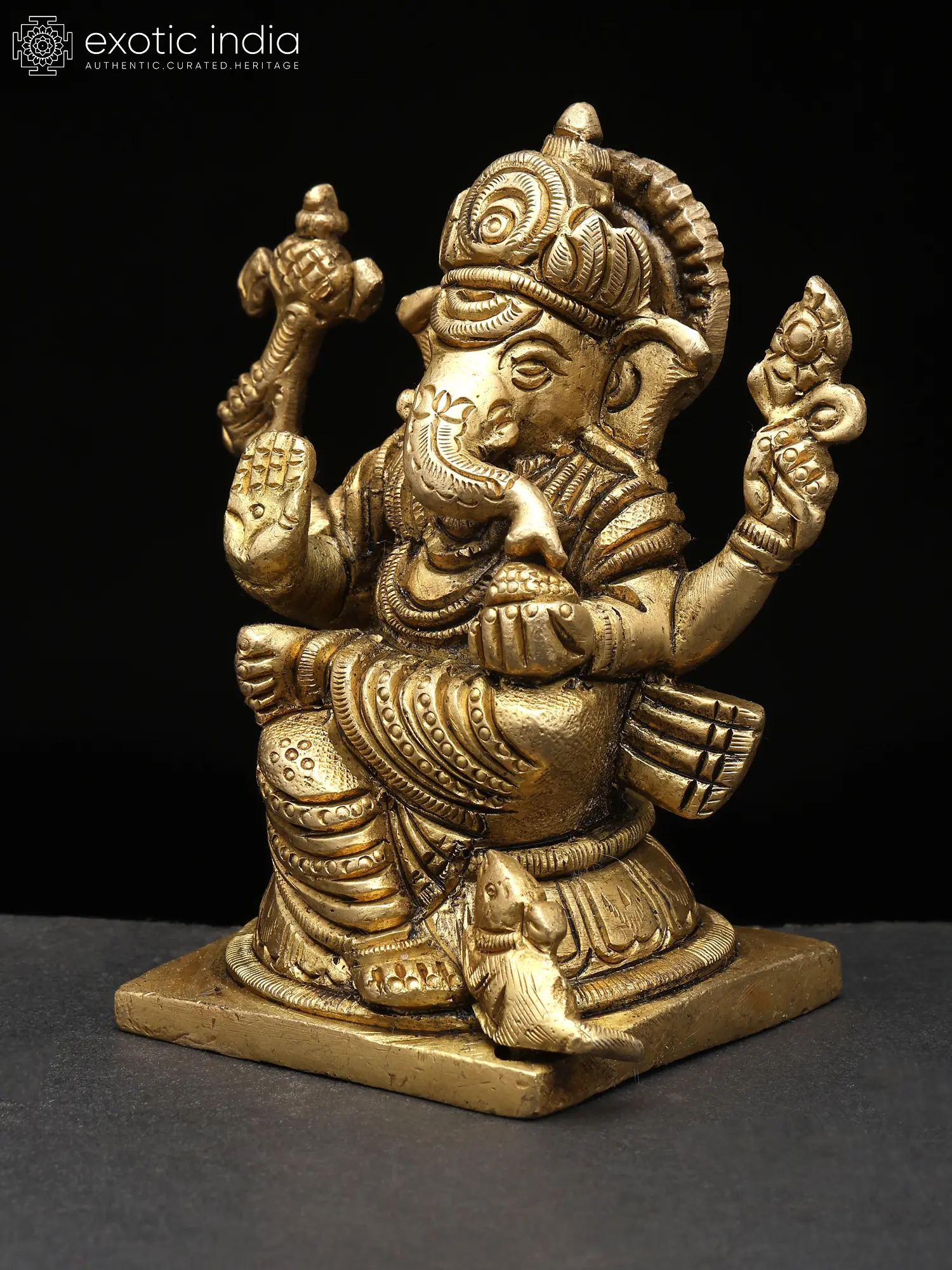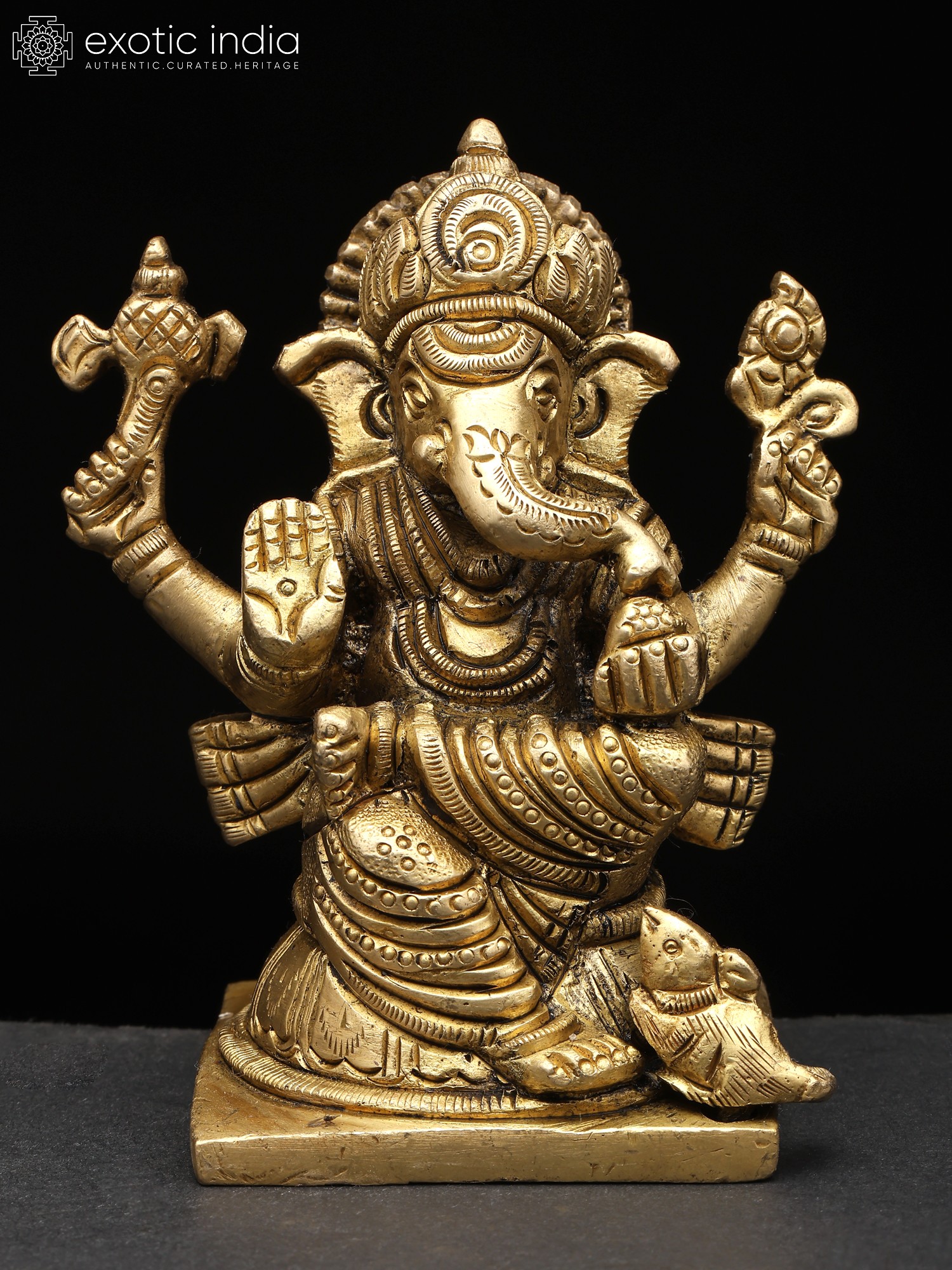 3" Small Lord Ganesha Seated on Mushak – The Divine Four-Armed Form | Brass Sculpture