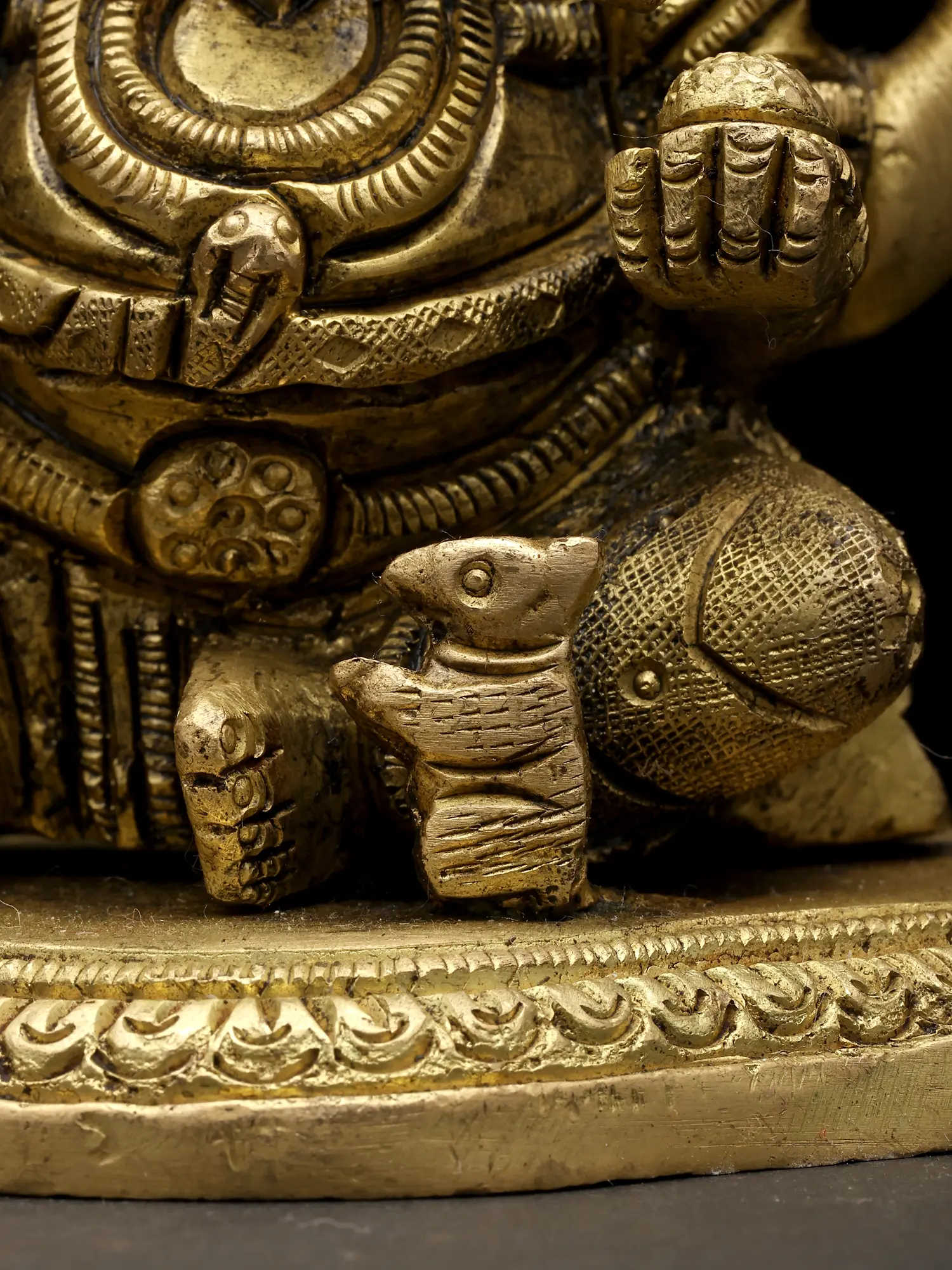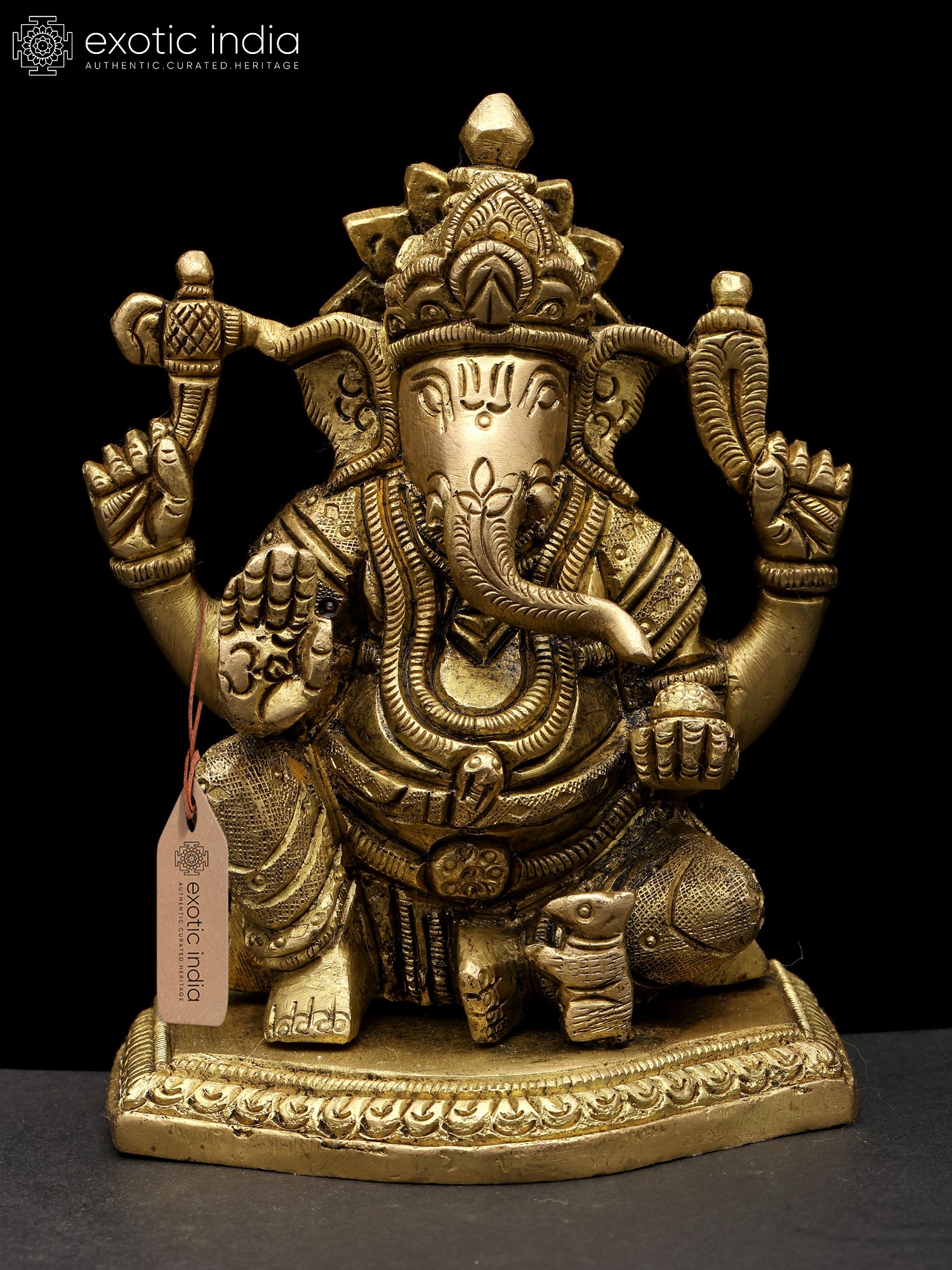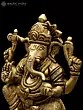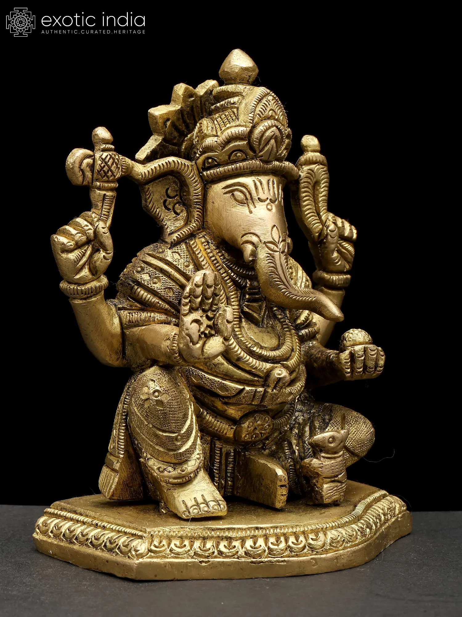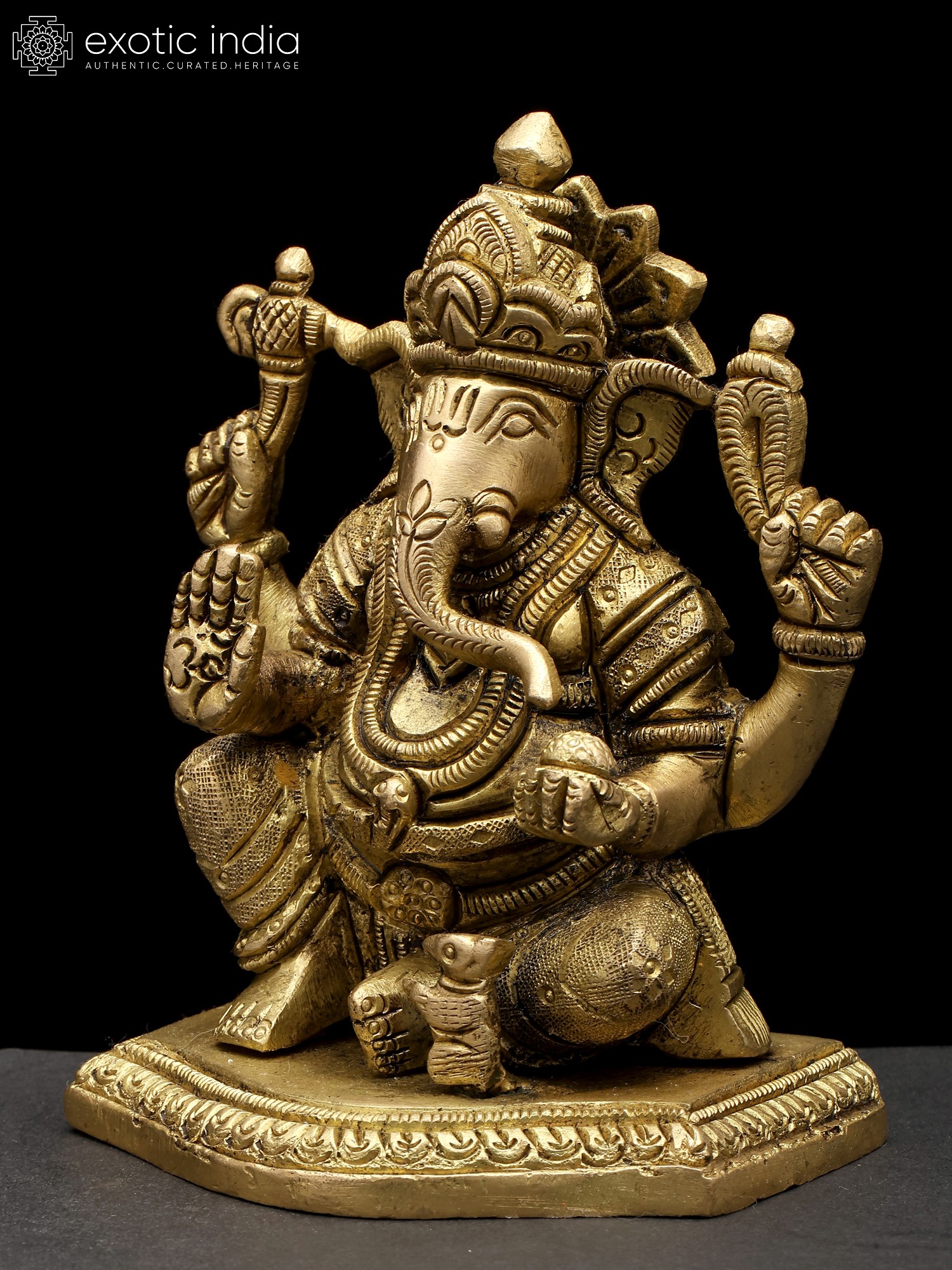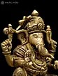 7" Lord Ganesha Brass Statue Sitting on Conch Pedestal