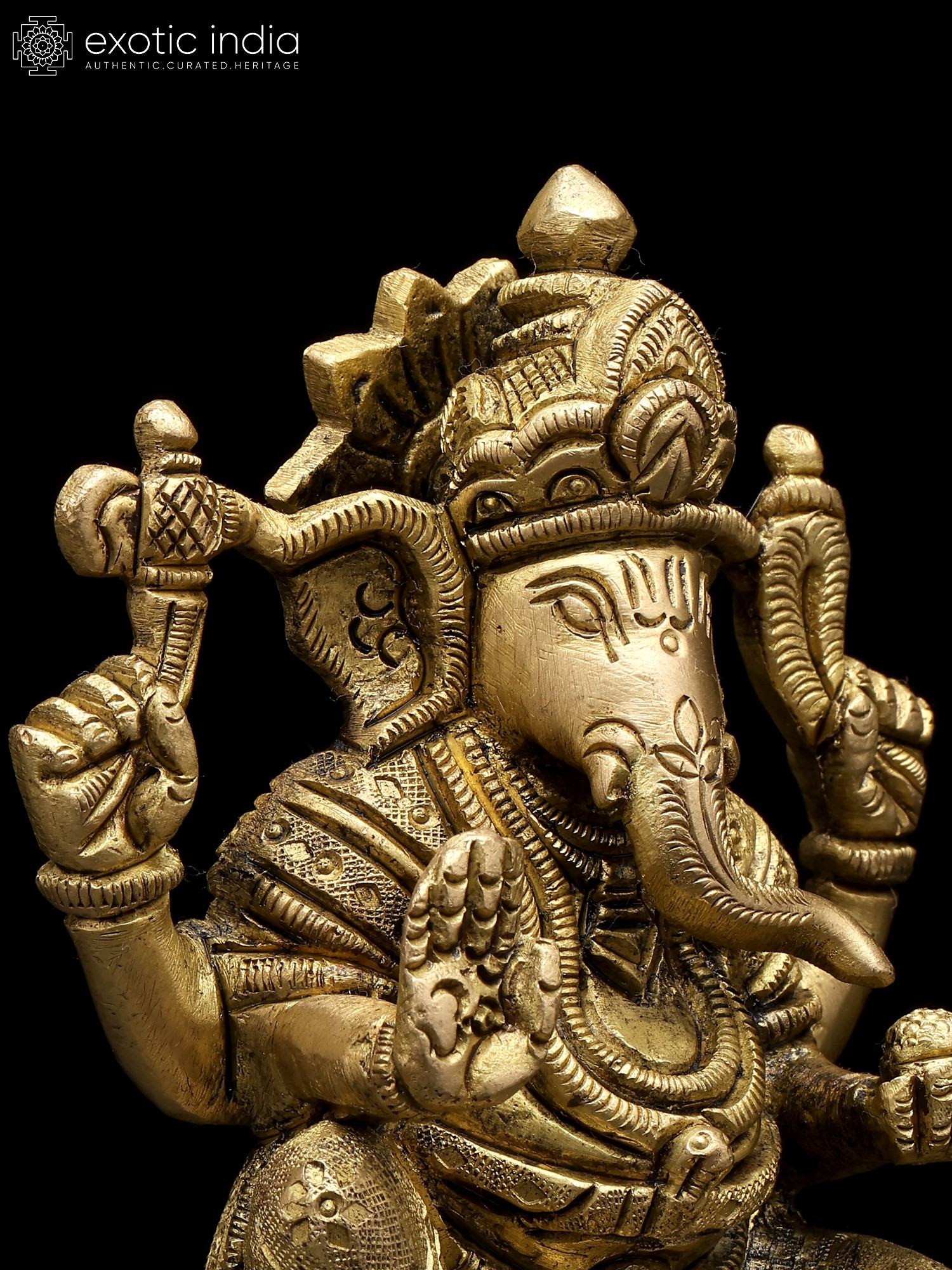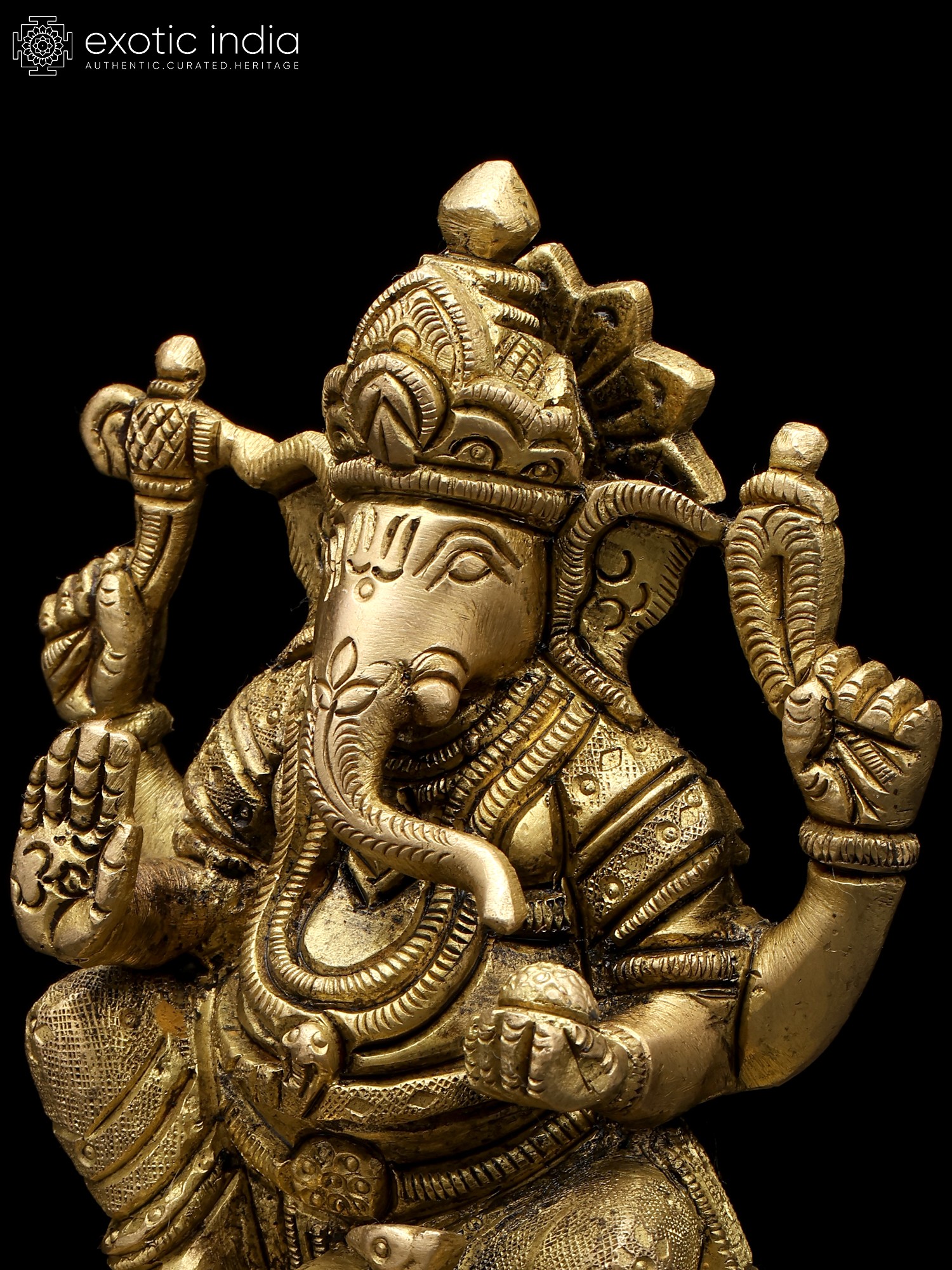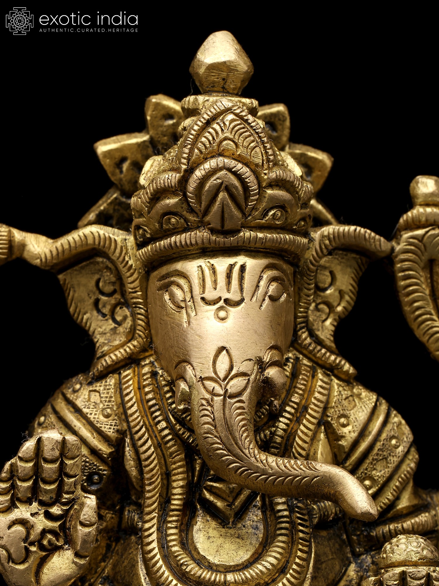 8" Chaturbhuja Ganesha Vastu Plate in Brass | Wall Hanging