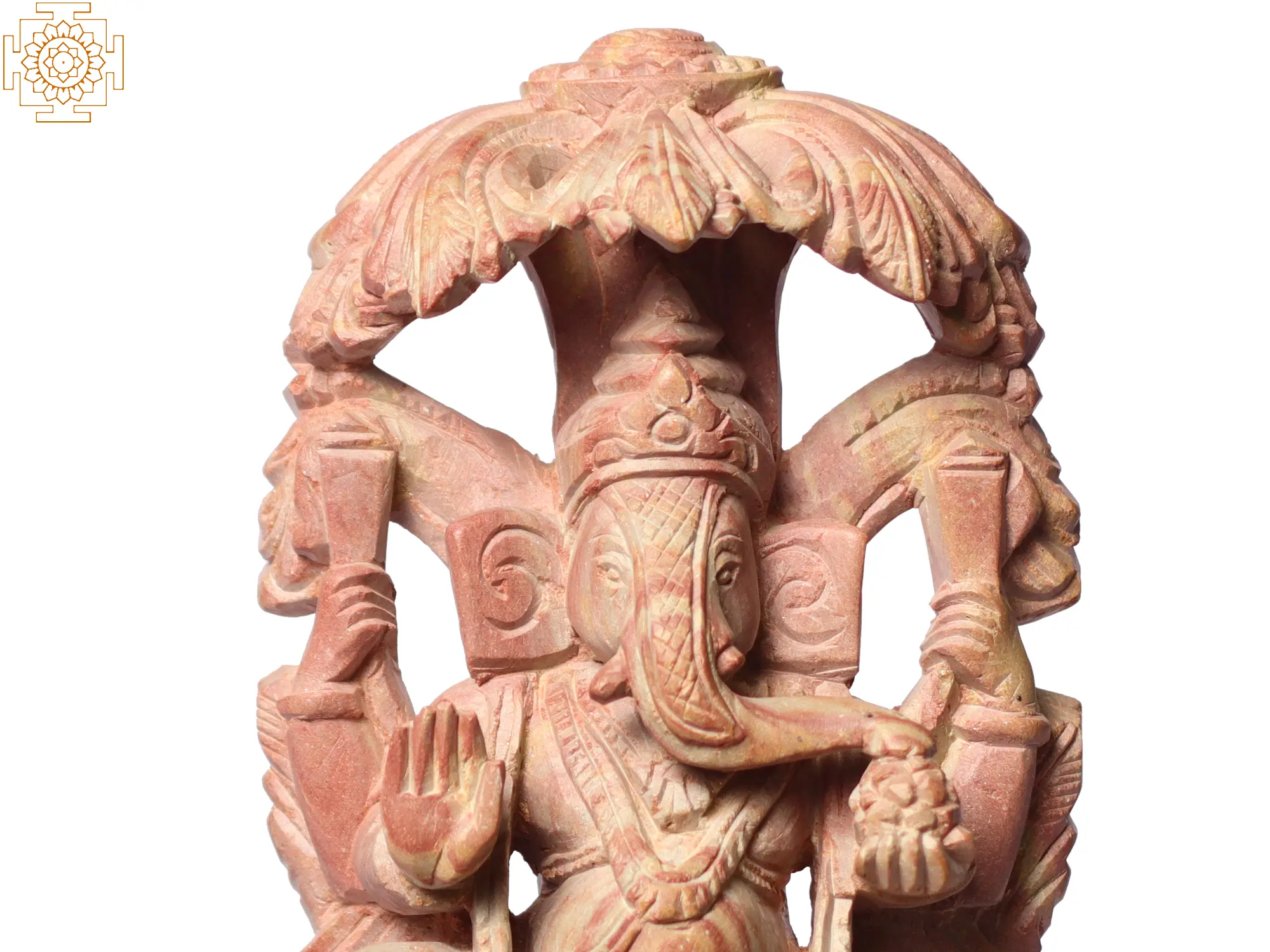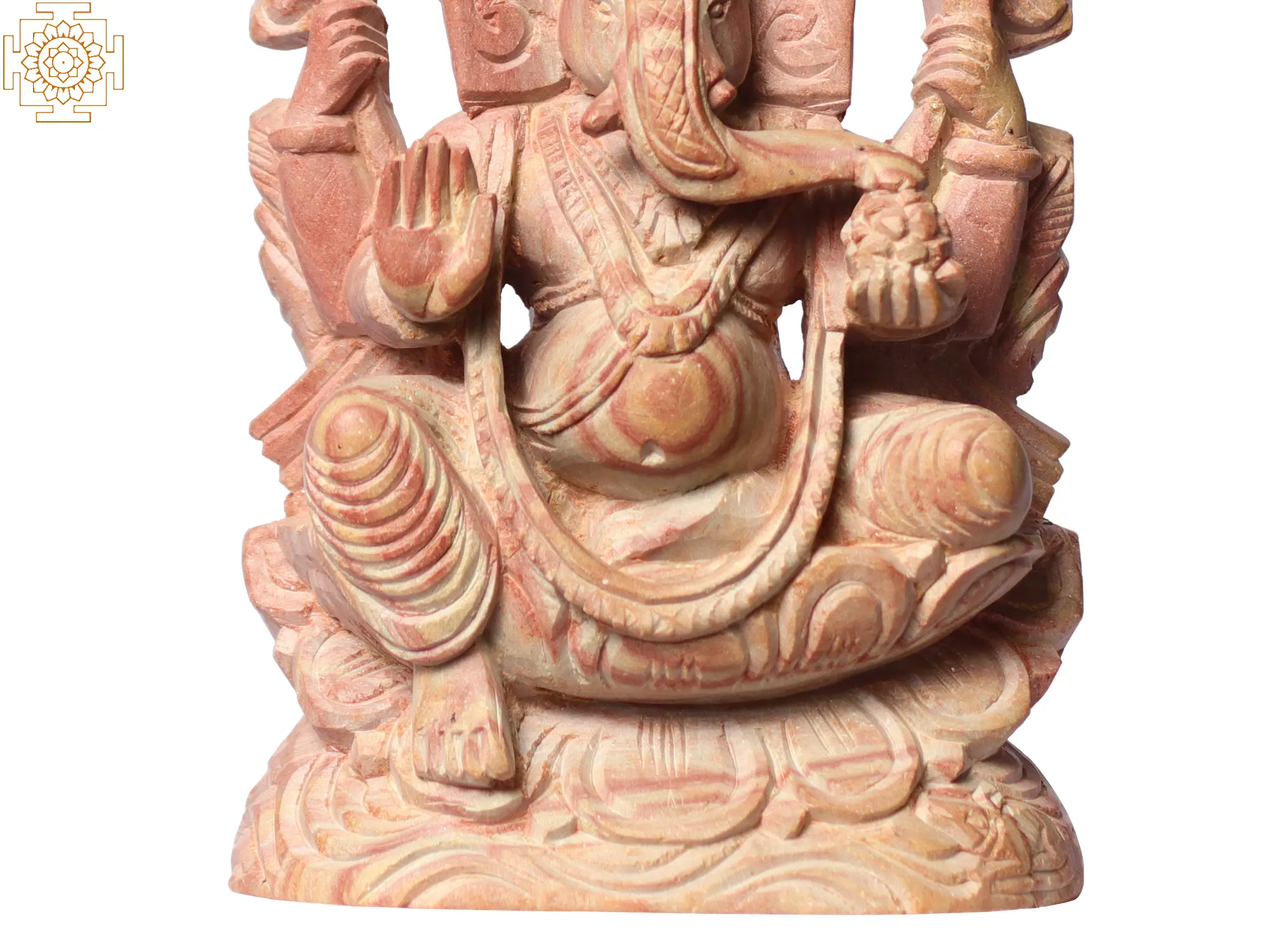 Carved from pink stone, this charming sculpture captures Lord Ganesha's playful essence. With four arms, he bestows blessings upon his devotees while holding the beloved modak, a symbol of sweetness and fulfillment. Ganesha's presence signifies auspicious beginnings and prosperity. The pink stone, representing unconditional love, infuses the art with tenderness and compassion. This statue encourages us to appreciate life's simple pleasures and embrace every experience with an open heart. May Lord Ganesha's benevolent energy inspire you to face challenges with grace and find delight in life's smallest blessings.
