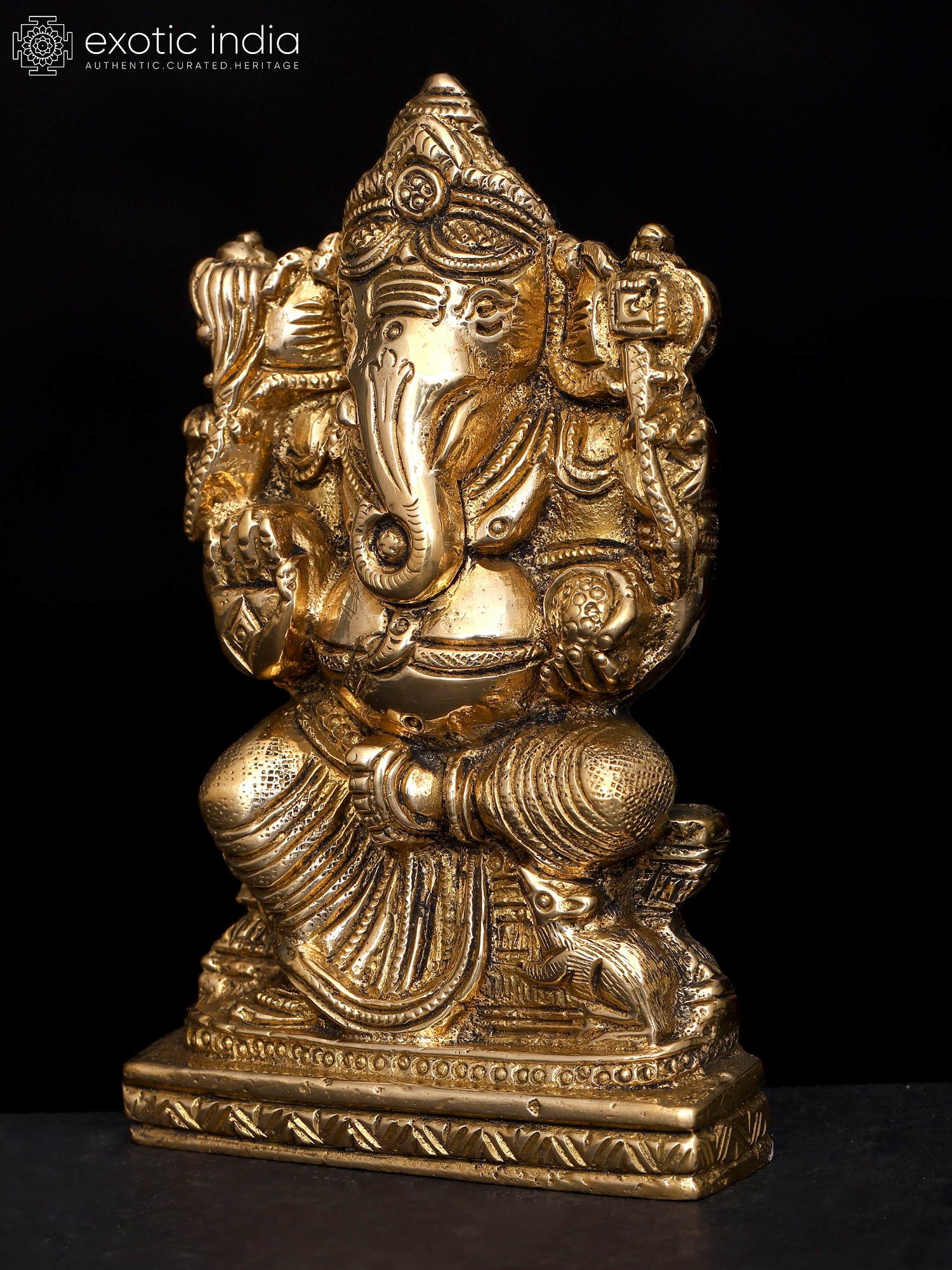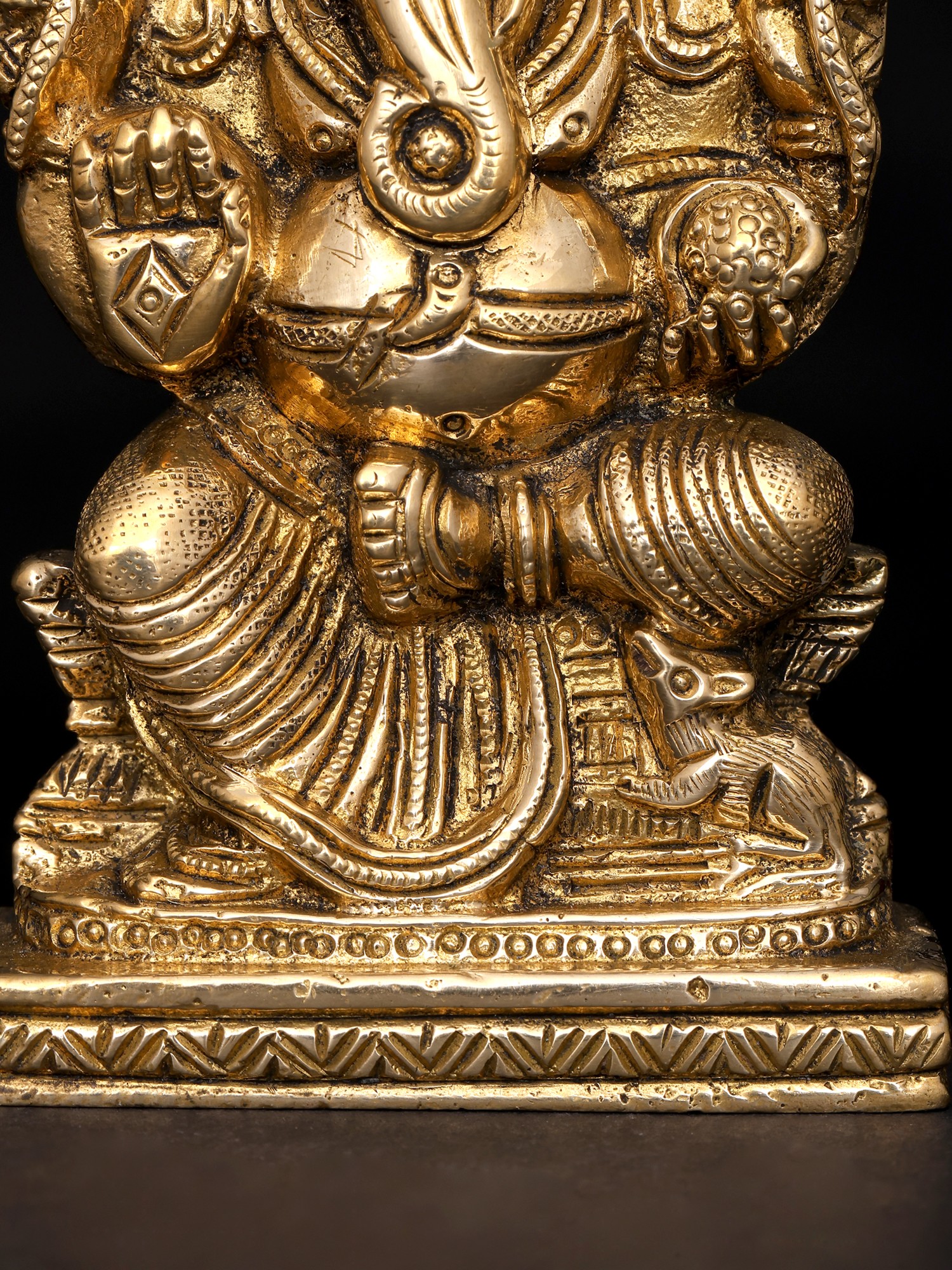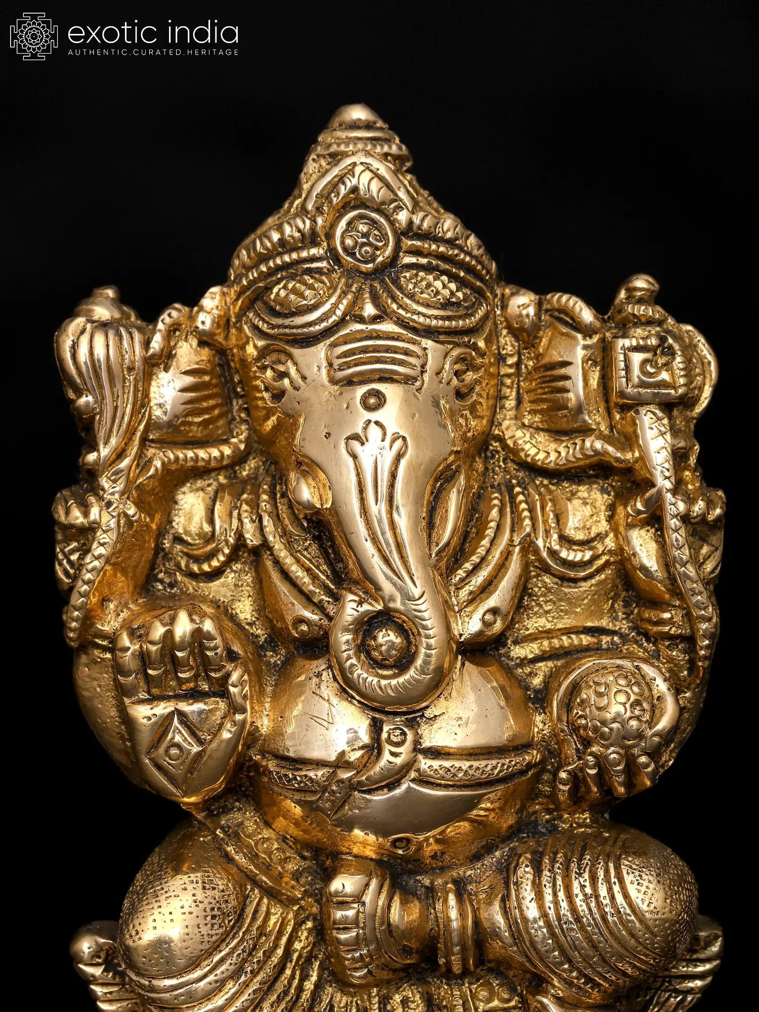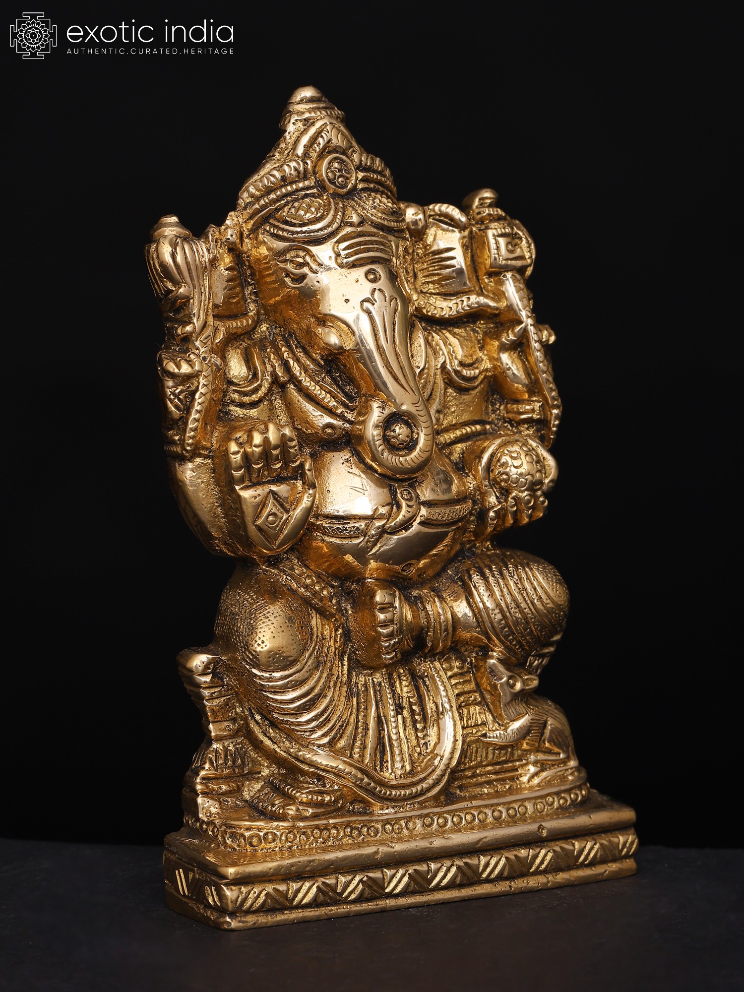 4'' Small Four-Handed Ganesha With Modak | Flat Brass Statue