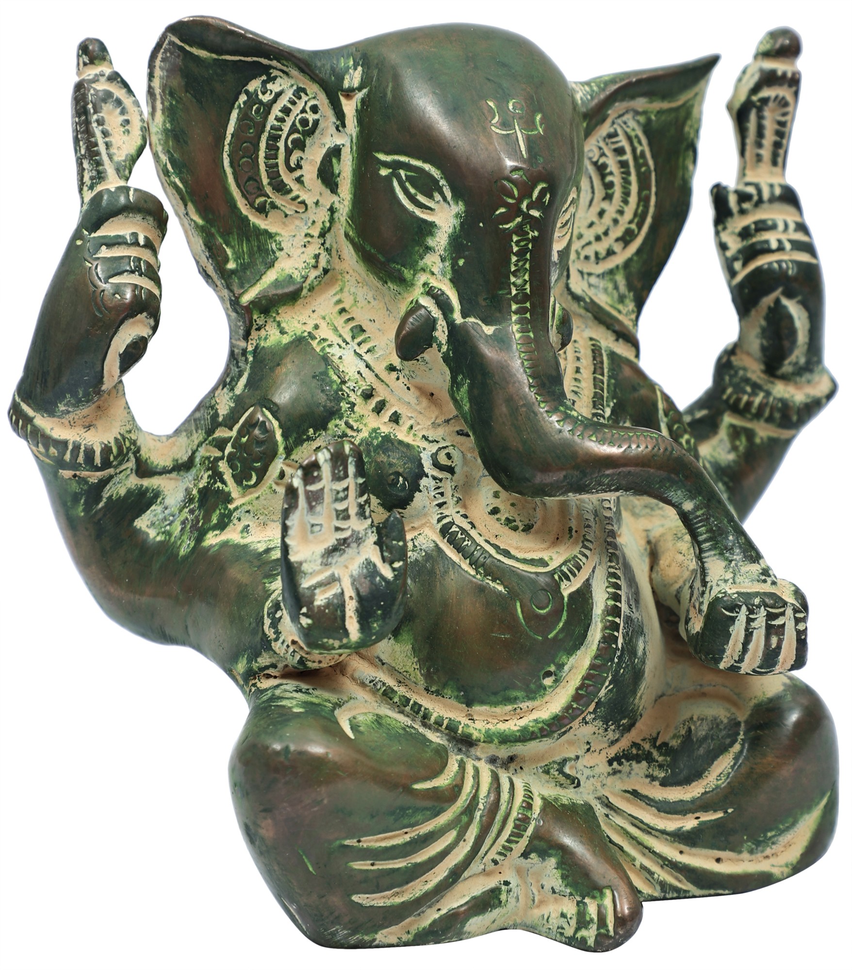 This statue is more than just a decorative item; it is a testament to the rich artistic heritage of India. Each detail, from the delicate carvings on his ears to the blessings bestowed by his raised hands, is a result of skilled craftsmanship passed down through generations. The use of brass, a metal considered sacred in many traditions, further enhances the spiritual value of the piece. Brass is believed to possess inherent purifying properties and is often used for religious artifacts to invite positive energies. The size of this statue makes it versatile, allowing you to place it in various settings without overwhelming the space.