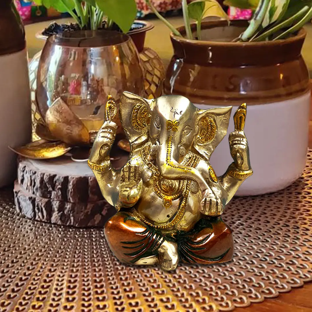4" Small Ganesha Statue in Brass | Handmade | Made in India