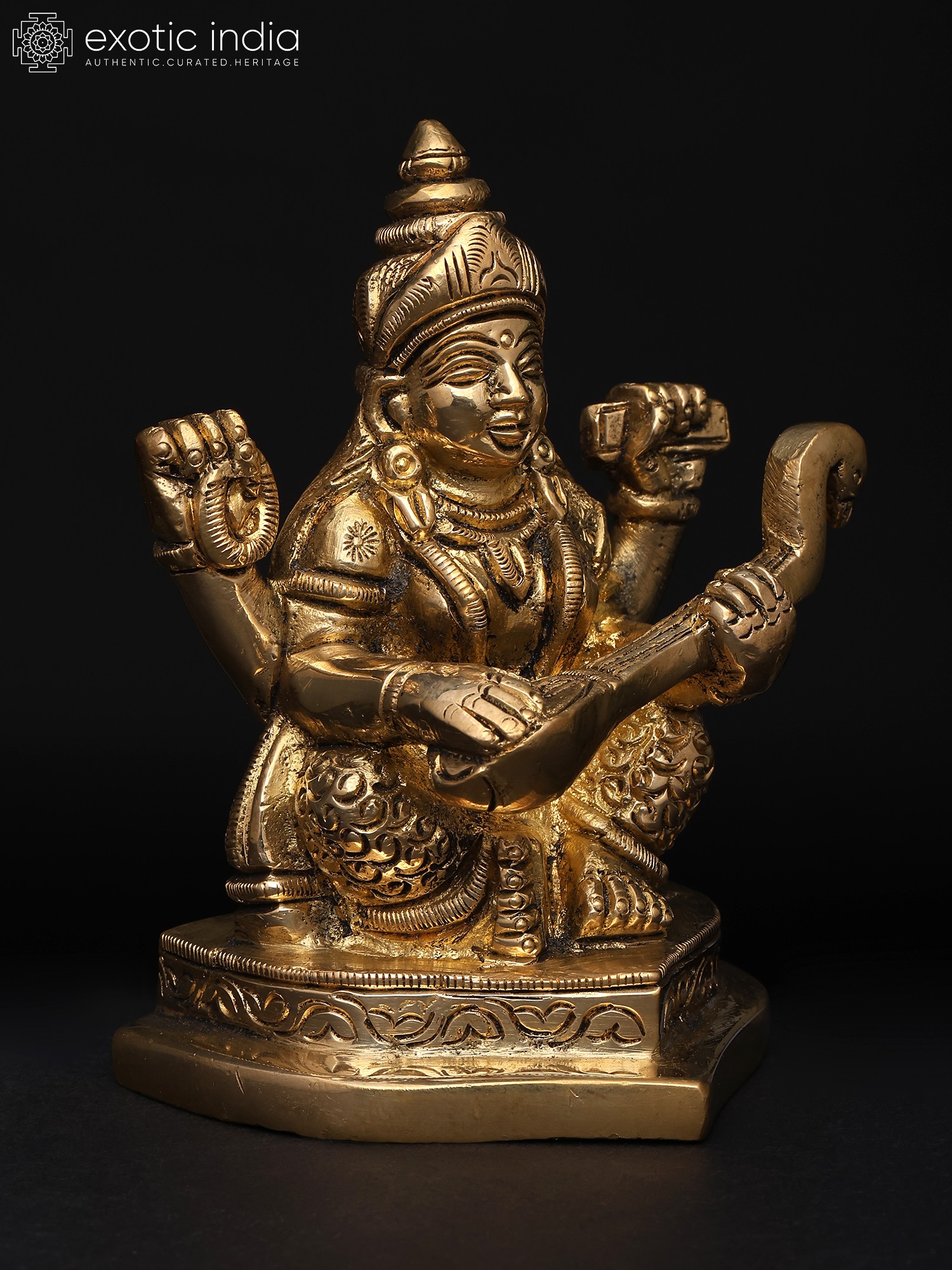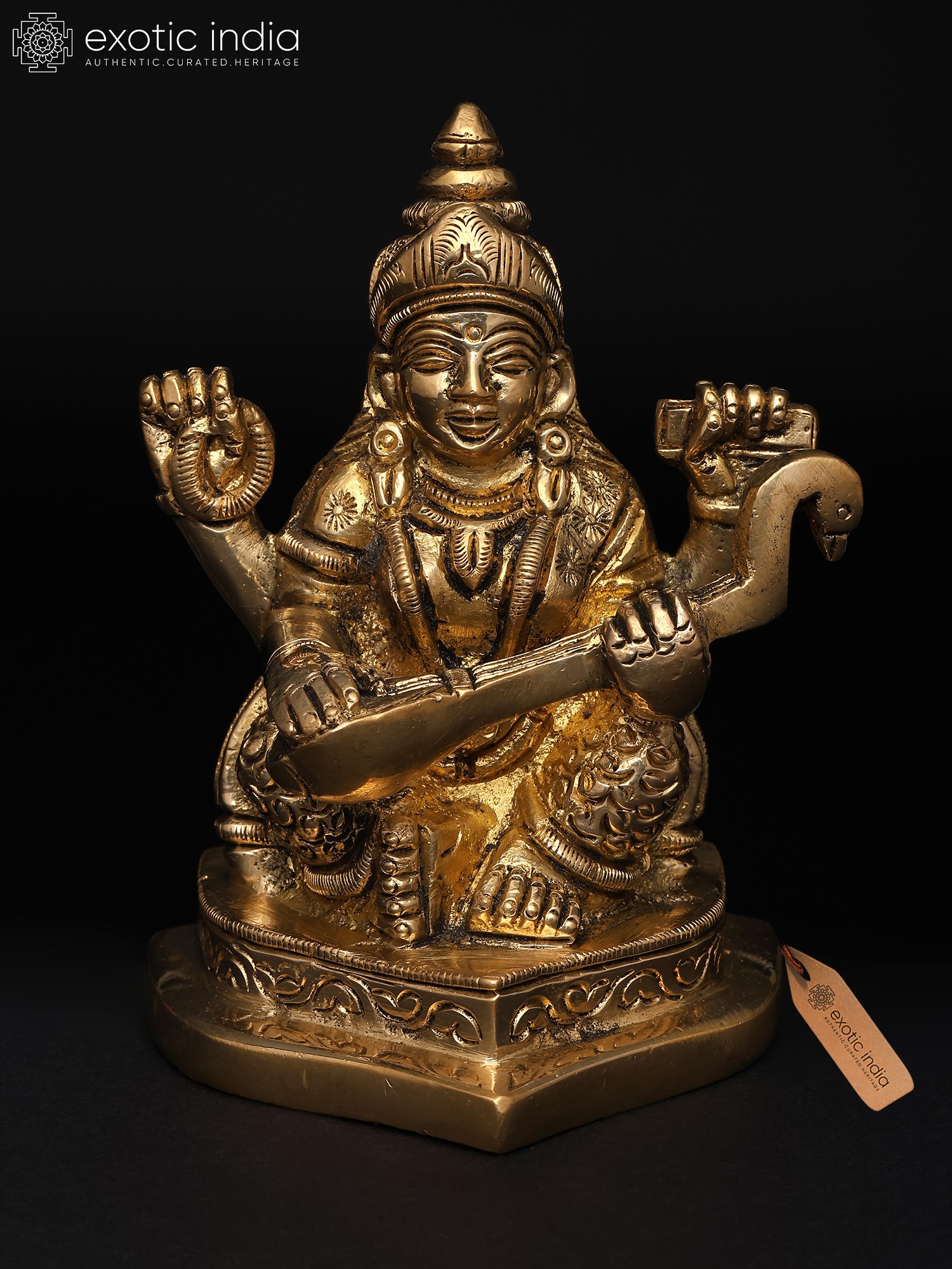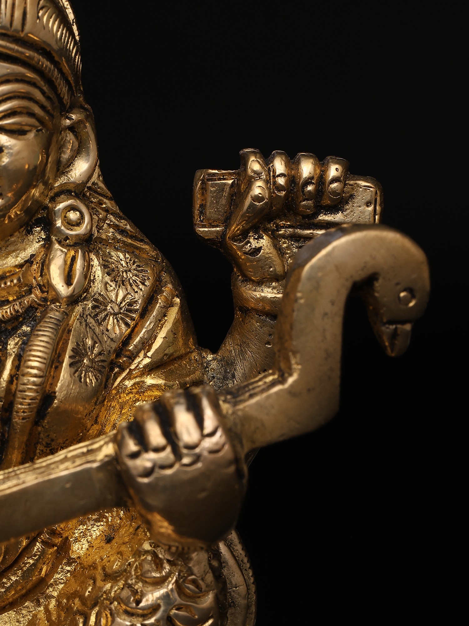 13" Goddess Saraswati Brass Sculpture | Handmade | Made in India