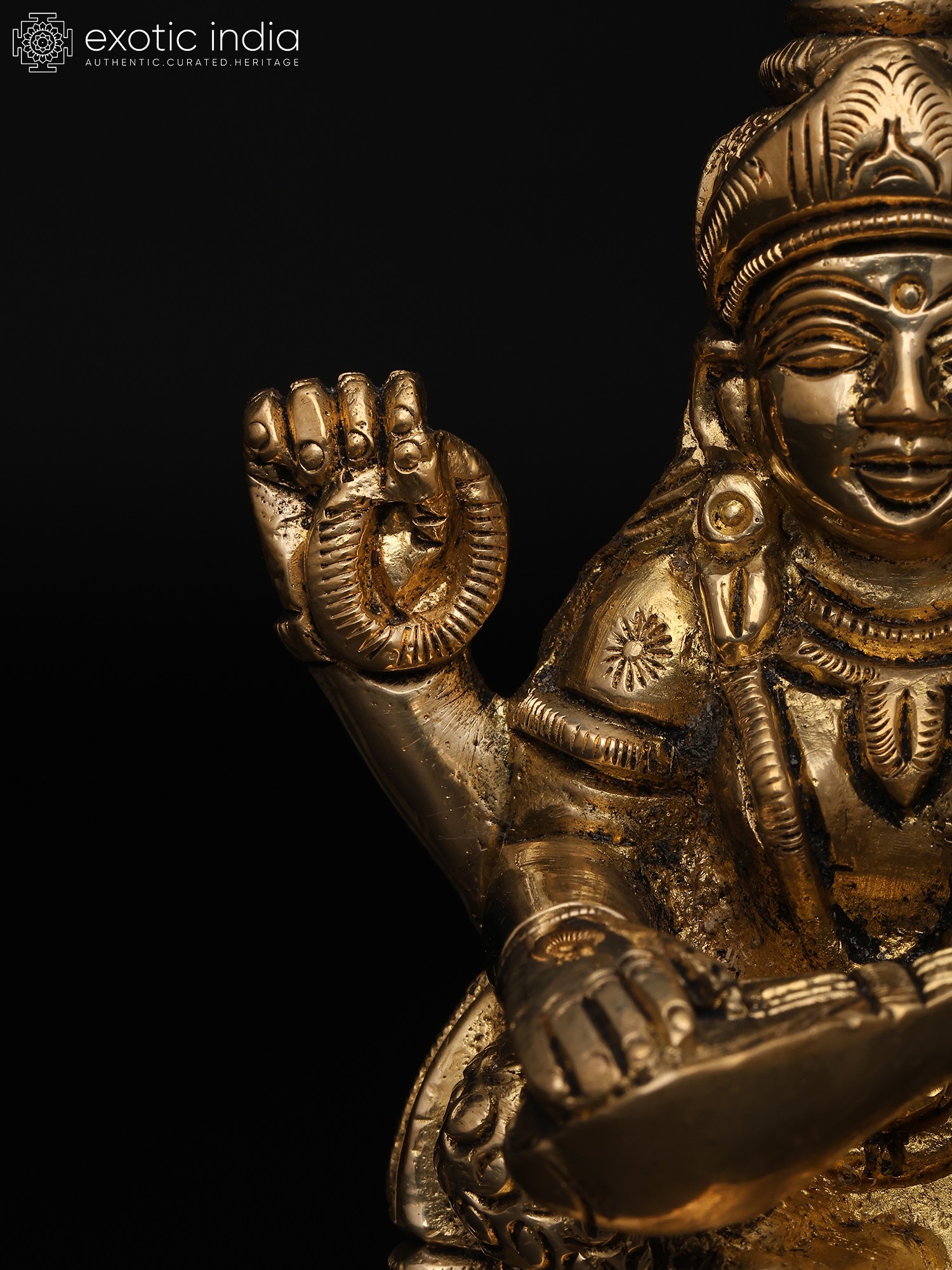 5" Small Superfine Shivling and Protective Vasuki with Wood Base | Brass Statue | Made in India