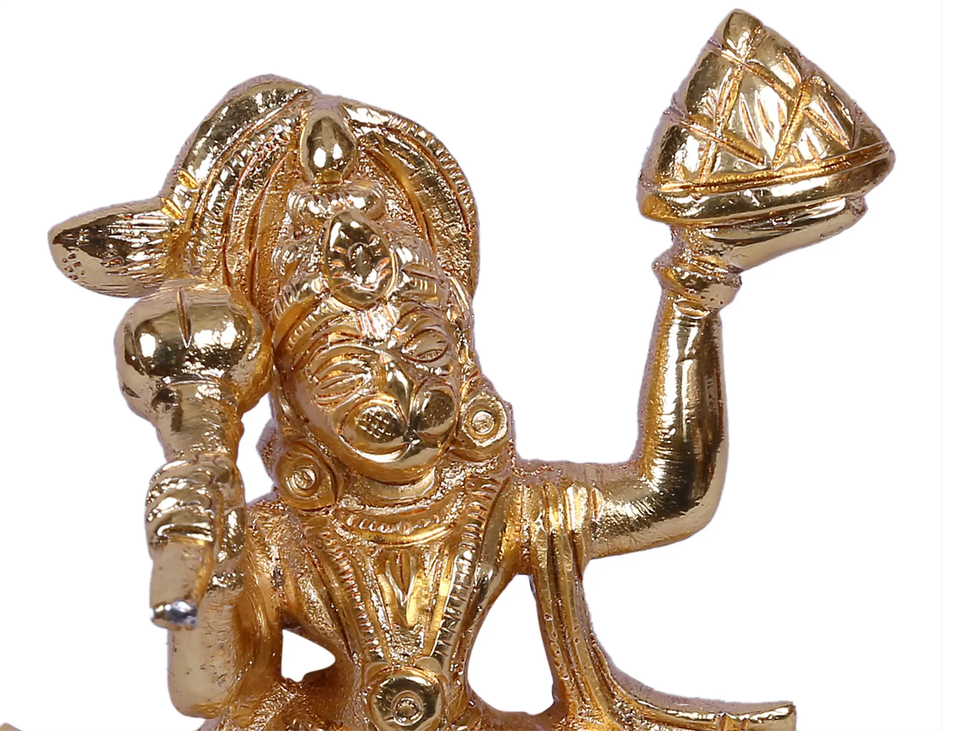 Made in premium quality gold plated brass - Lord Hanuman takes flight to save Lakshmana's life, the sculpture evokes a sense of admiration and reverence, reminding us of the boundless power of devotion and the miracles that unfold when one serves with a selfless heart. Welcome this revered brass creation into your life, and let the captivating presence of Lord Hanuman instil in you the essence of divine love and selfless service.