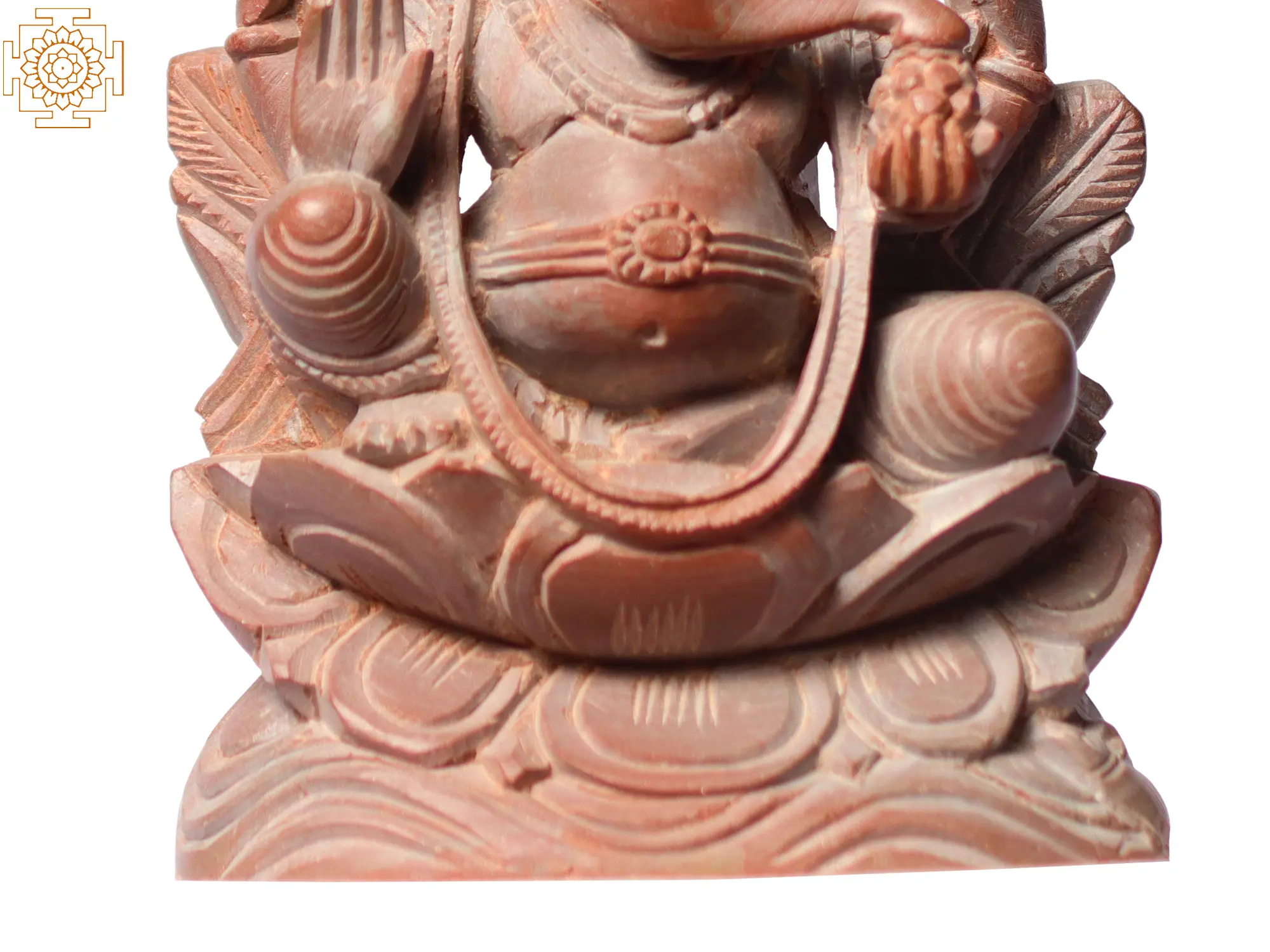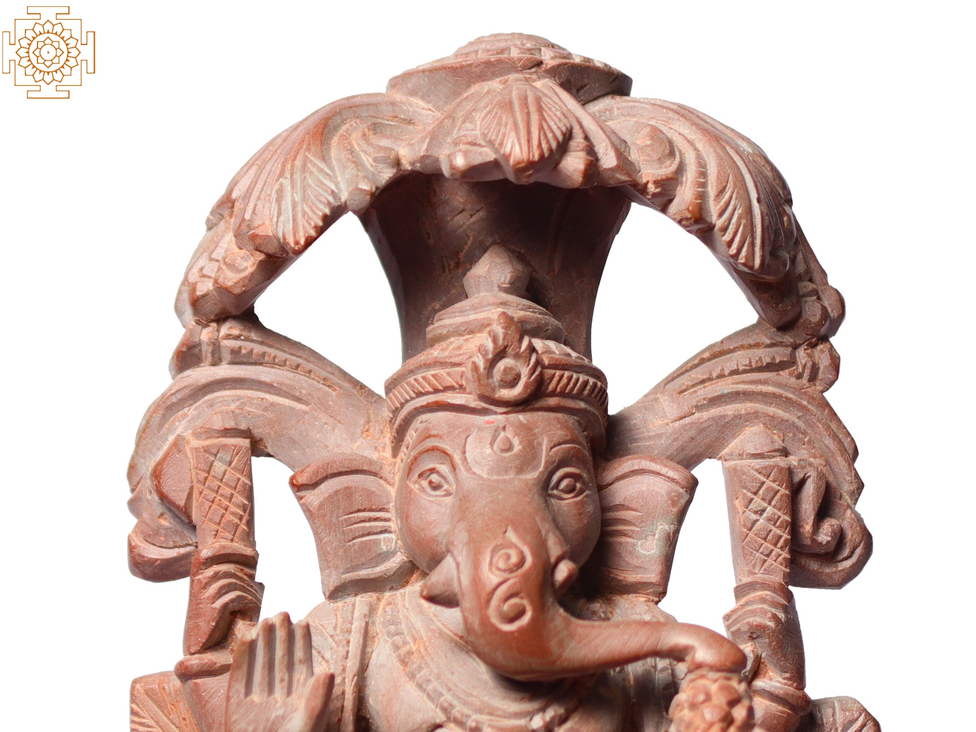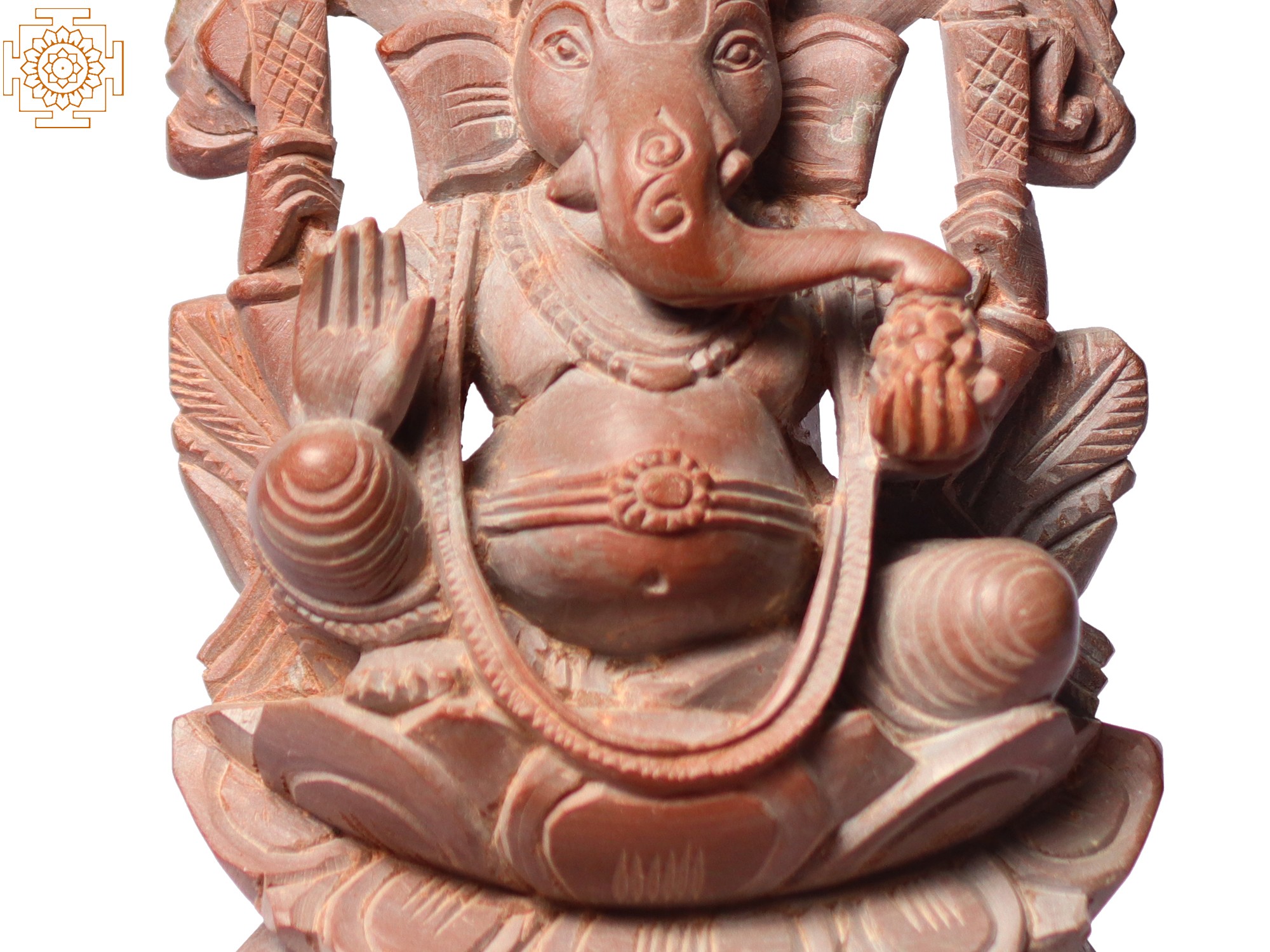 Lord Ganesha is often depicted with a human body and an elephant head, with large ears representing attentiveness, a single tusk symbolising knowledge and non-duality, and a trunk signifying strength, discrimination, and blessings. He has a pot-belly, symbolising contentment and the ability to digest all experiences in life, brought to you in this beautiful sculpture from pink stone.