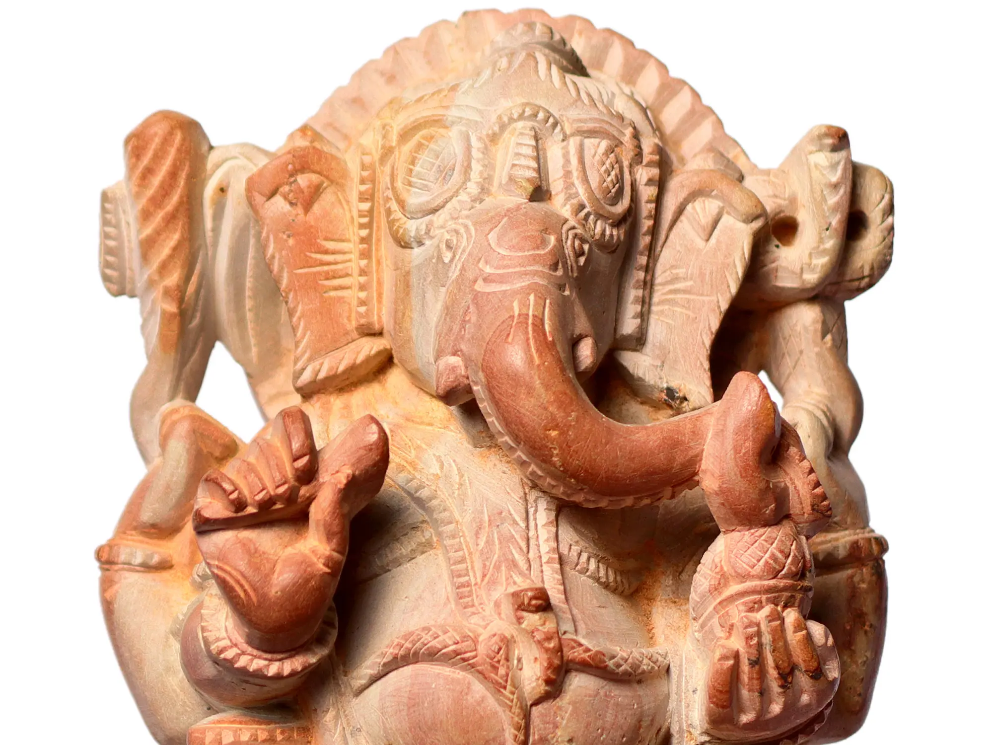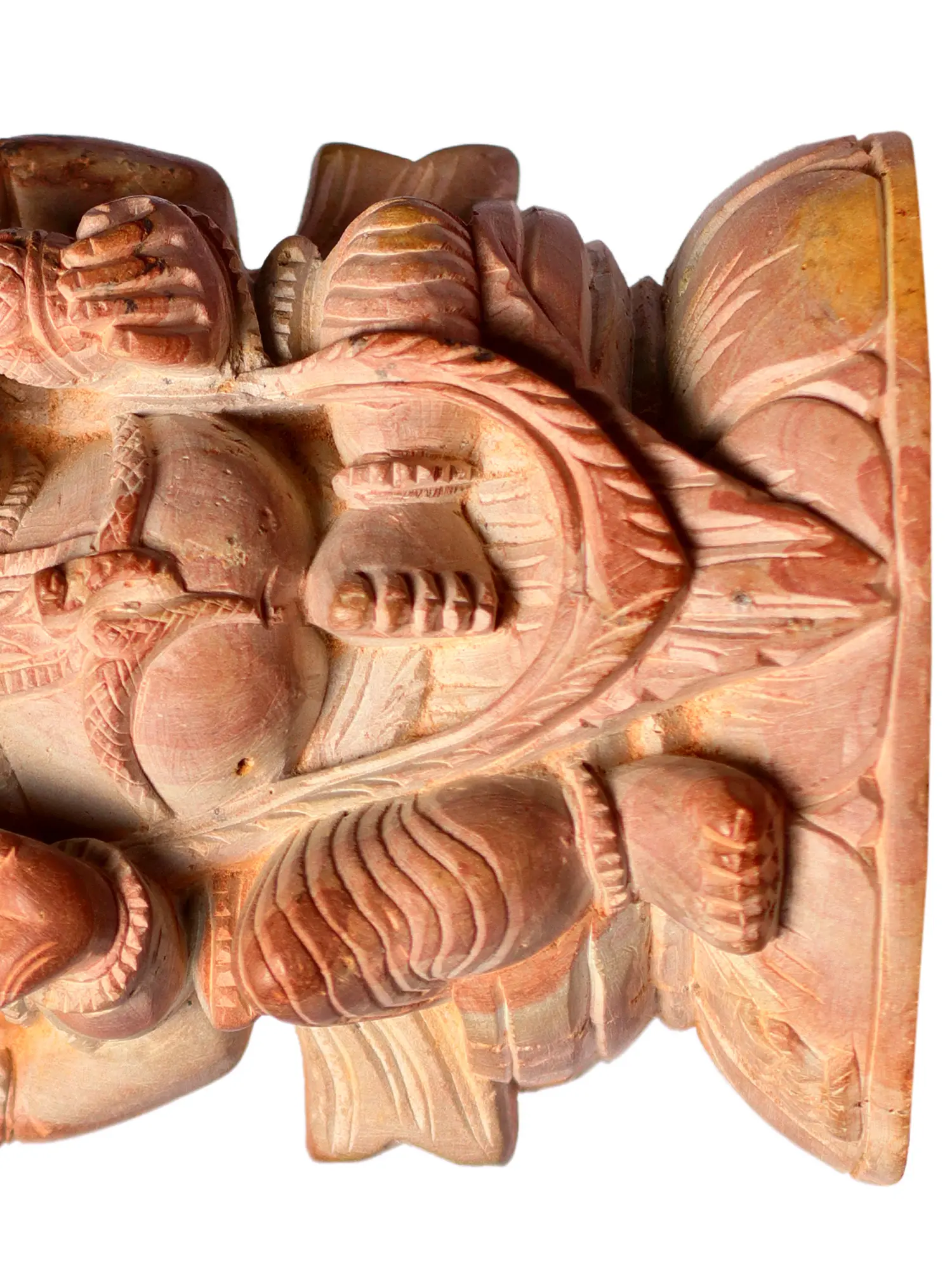 Carved in pink stone - this sculpture of Shri Ganesha is not merely an artistic masterpiece, but also a profound philosophical representation of the human condition and the cosmos. It calls us to embrace the wisdom of Ganesha, overcome obstacles, foster compassion, and attain enlightenment. In the divine presence of Shri Ganesha, we find solace, inspiration, and the promise of transcendence on our earthly journey.
