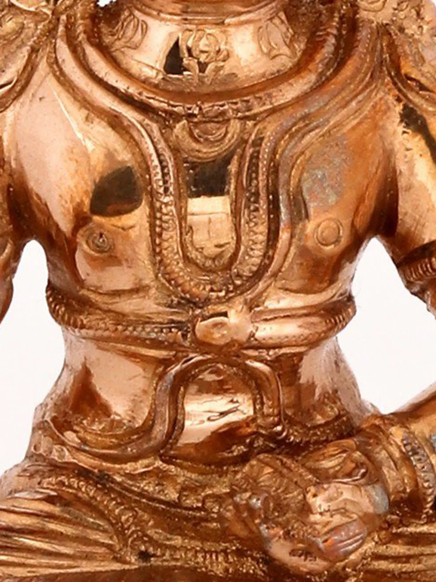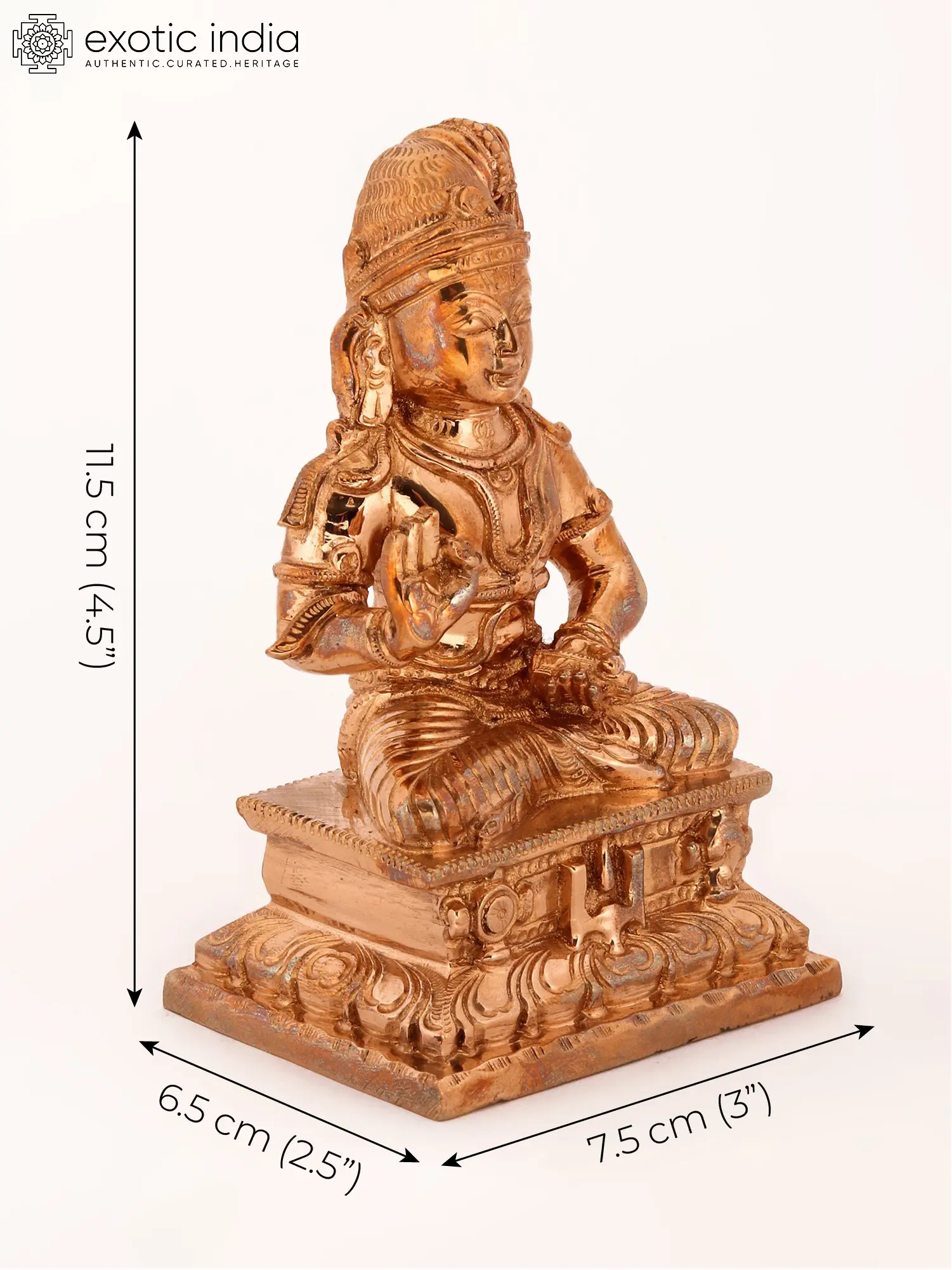 This brass masterpiece, a tribute to his divine presence, captures Nammalvar in profound repose upon a pedestal. Clasping sacred scriptures, his form radiates serenity, and his right hand gracefully forms the “Vitarka Mudra”, an embodiment of intellect and discussion. The artwork embodies the essence of Nammalvar’s teachings, emphasising wisdom, divine connection.