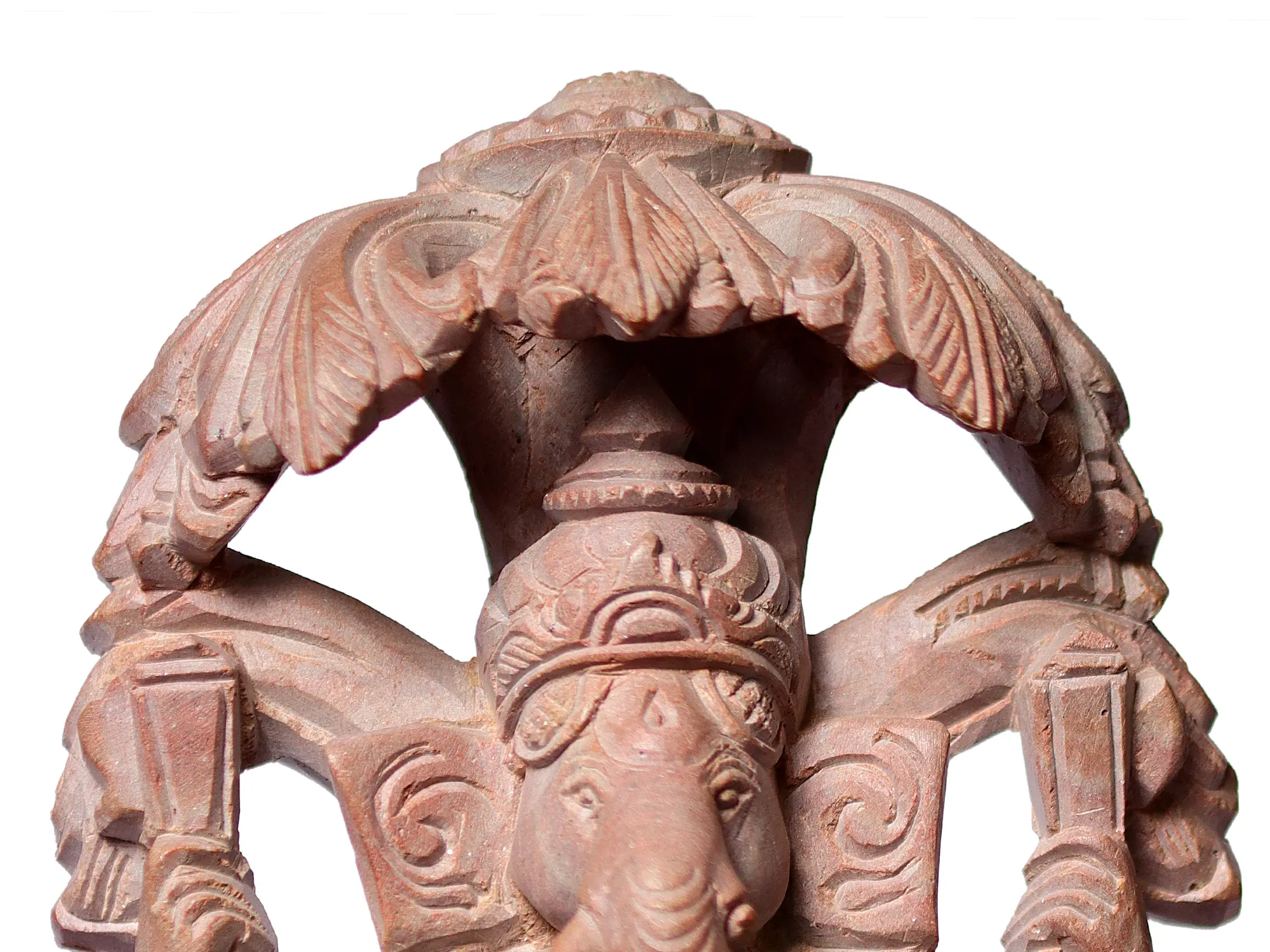 This exquisite sculpture captures the divine form of Lord Ganesha, the beloved elephant-headed deity revered as the remover of obstacles and the patron of arts and sciences. Crafted from a delicate pink stone, this piece emanates a gentle warmth and a profound sense of spirituality, making it a captivating centerpiece for any sacred space or a treasured addition to your collection of Indian art. Lord Ganesha, with his unique visage and benevolent presence, is invoked at the commencement of every significant endeavor, ensuring auspiciousness and success. ––––––––––