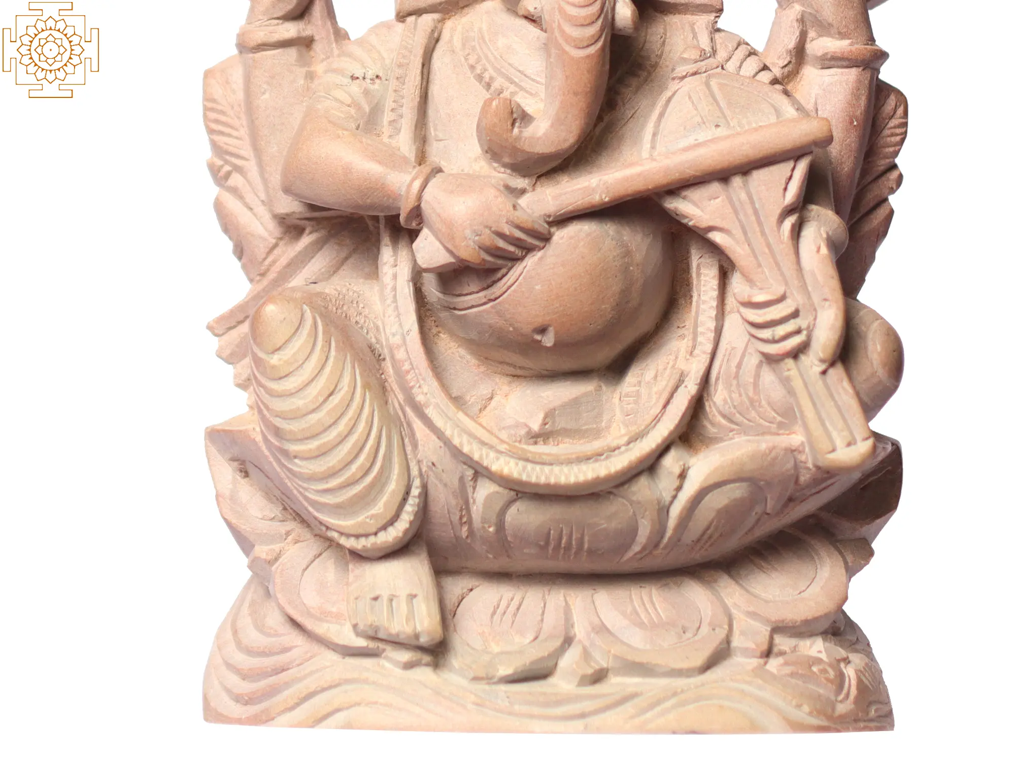 Lord Ganesha, the master of Music, is depicted playing the violin, symbolising the harmony and rhythm of life. The violin, a melodic instrument, represents the cosmic symphony that Ganesha orchestrates in the universe. His divine music resonates with the interconnectedness of all beings, soothing the discordant notes of existence. Ganesha’s mastery of the violin signifies his ability to create a harmonious balance between opposing forces, fostering peace, and unity. Sculpted from pure Pink Stone, this artwork signifies Ganesha’s ability to infuse life with love and empathy, fostering a deep sense of connection and understanding among all beings, as they sway to the melodious rhythms of his divine music.