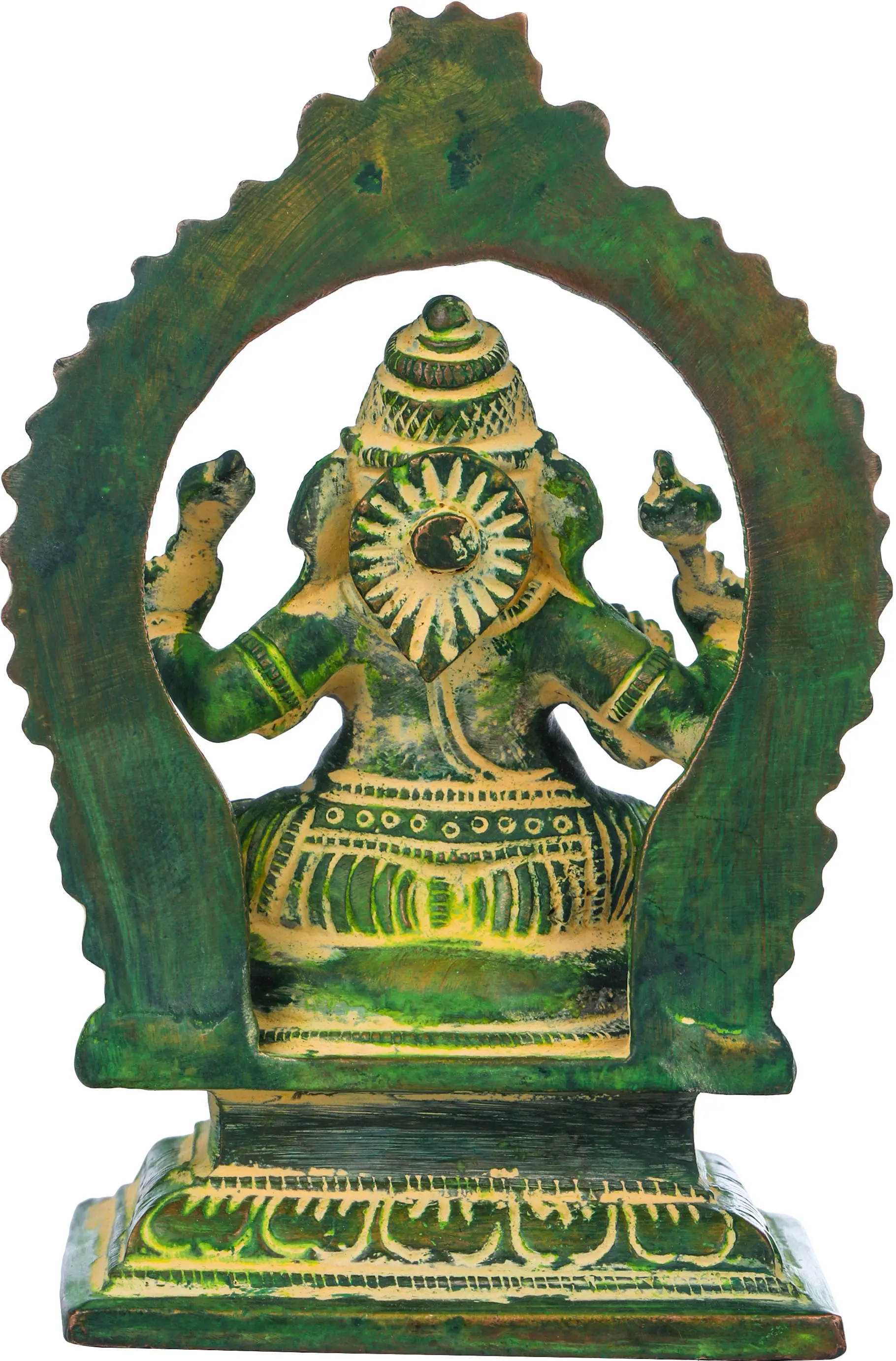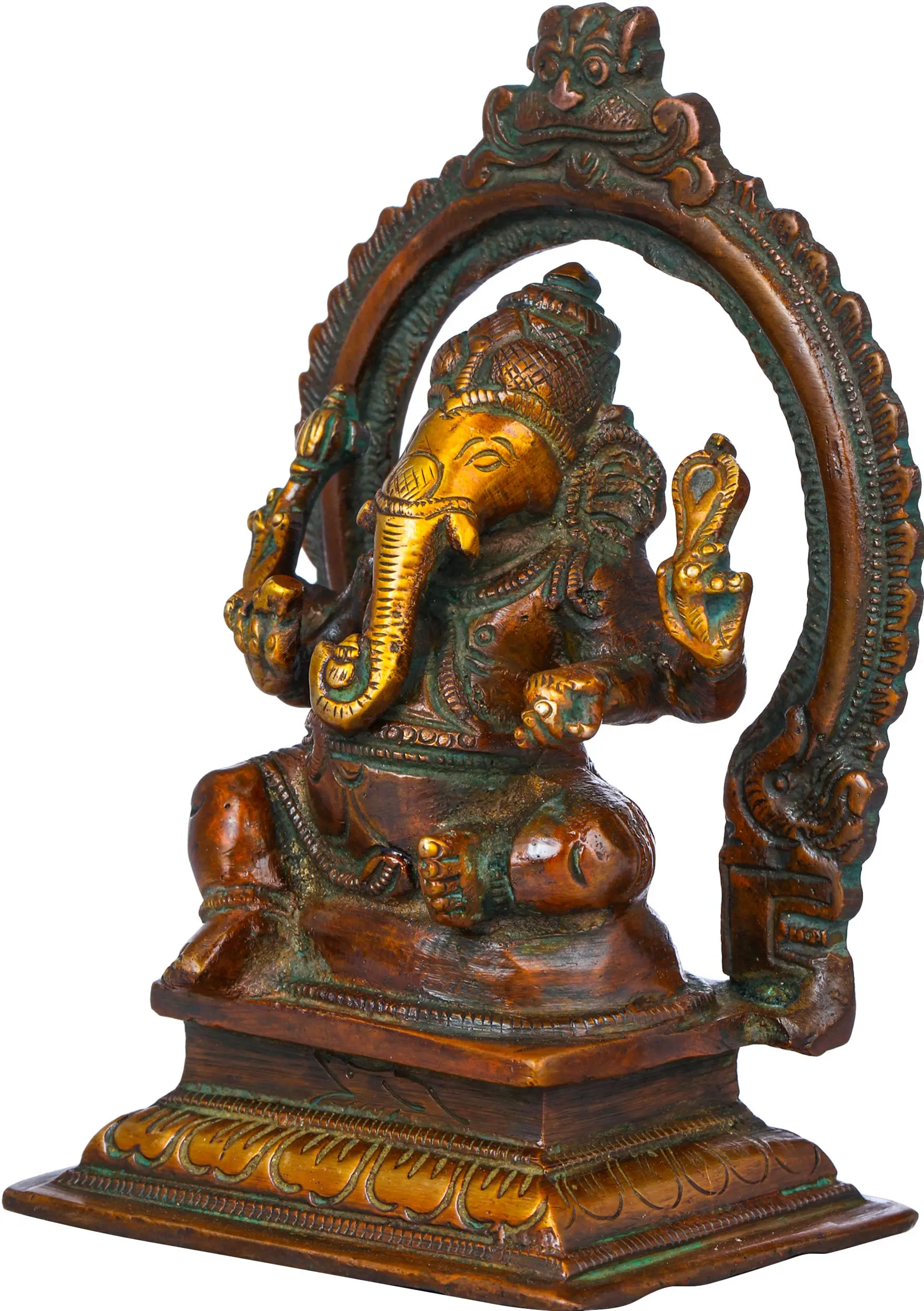 Lord Ganesha, the harbinger of Success, sits gracefully in Lalitasana, displaying divine composure and benevolence. Seated on a lotus podium, symbolizing purity, Ganesha reigns over the Kirtimukha throne, vanquishing negativity. Carrying a goad, Ganesha urges his devotees to follow the path of discipline, guiding them away from worldly distractions. With a broken tusk in his hand, Ganesha embodies sacrifice and humility, signifying the willingness to overcome obstacles to uphold righteousness. The noose represents his power to capture negativity and bind it, bestowing protection and liberation. Crafted with devotion, this brass artwork captures the divine presence of Lord Ganesha, exuding auspiciousness and inviting blessings for success, wisdom, and spiritual growth.