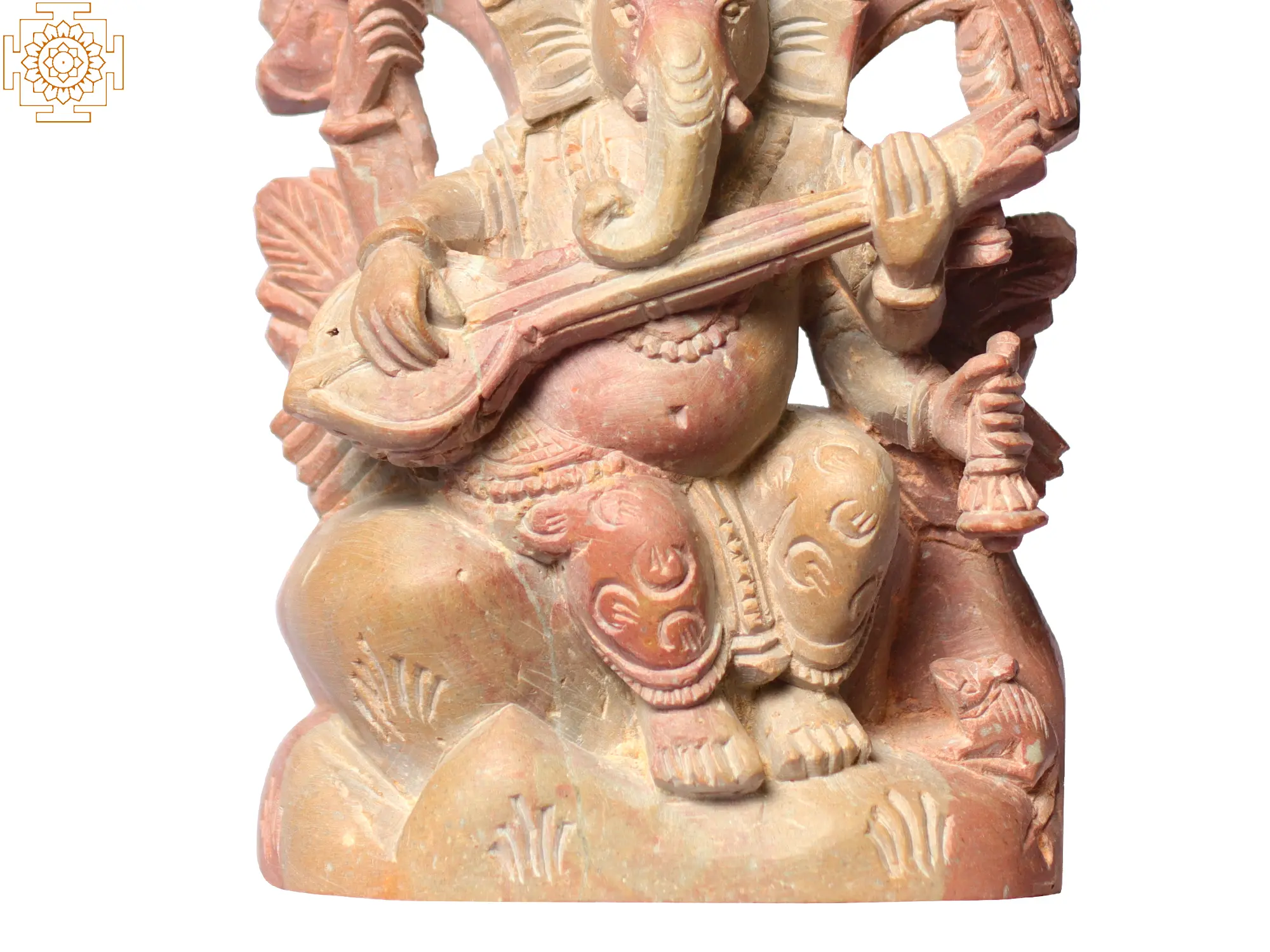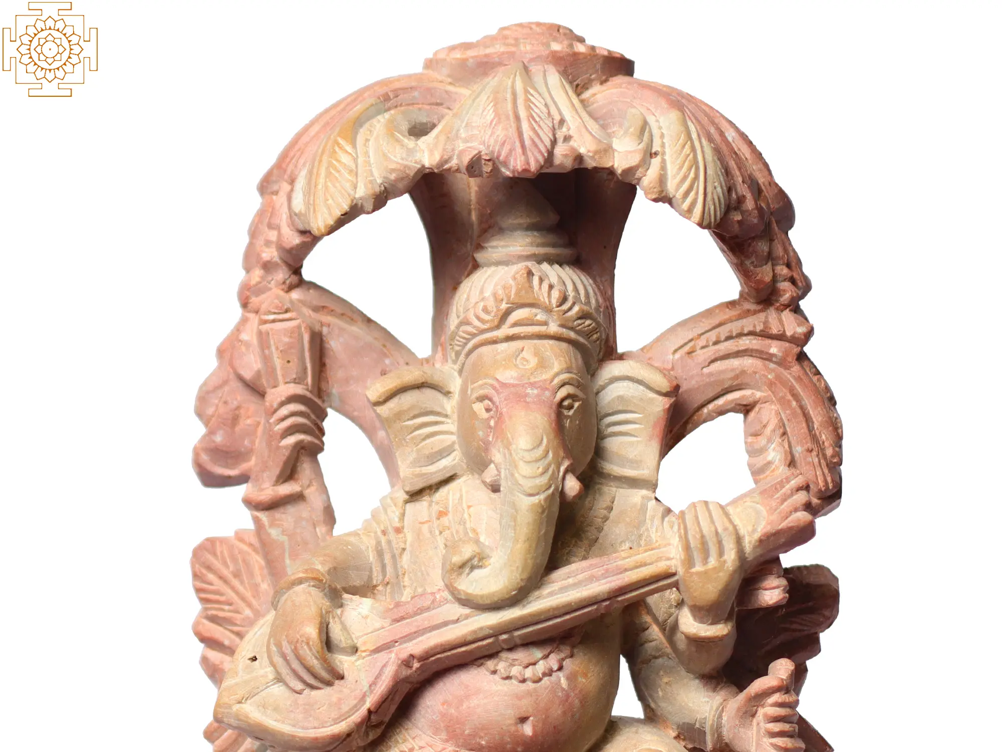 The enchanting sculpture depicts Lord Ganesha, the remover of obstacles, sitting gracefully and playing the sitar. The pink stone radiates warmth and love, adding to the art's allure. As Ganesha's fingers dance on the strings, each note resonates with joy, inspiring creativity and harmony. The sitar symbolizes the cosmic dance of creation, and in Ganesha's skilled hands, it becomes a conduit for divine expression. This sculpture gives a beautiful message that obstacles can be transformed into melodies of success with the right blend of determination and artistic flair.