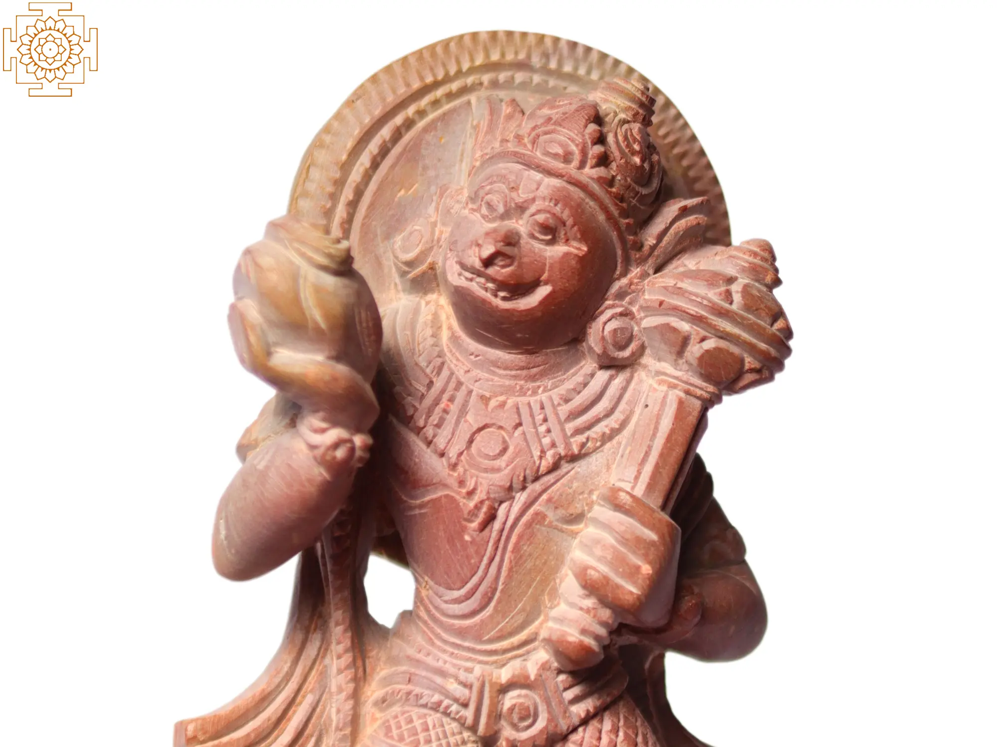 Engraved in pink stone, Lord Hanuman's act of carrying the Sanjeevani herb represents his boundless devotion and selflessness towards Lord Rama. It reminds us of the power of unwavering faith and the strength that comes from dedicating ourselves to a higher purpose. His gada symbolizes strength, valor, and the righteous path. It inspires us to face life's challenges with determination and to use our strength to uplift and serve others, just as Lord Hanuman did for Lord Rama. Lord Hanuman's act of carrying the herb reflects his devotion and his willingness to go to any length to bring relief and aid to those in need.