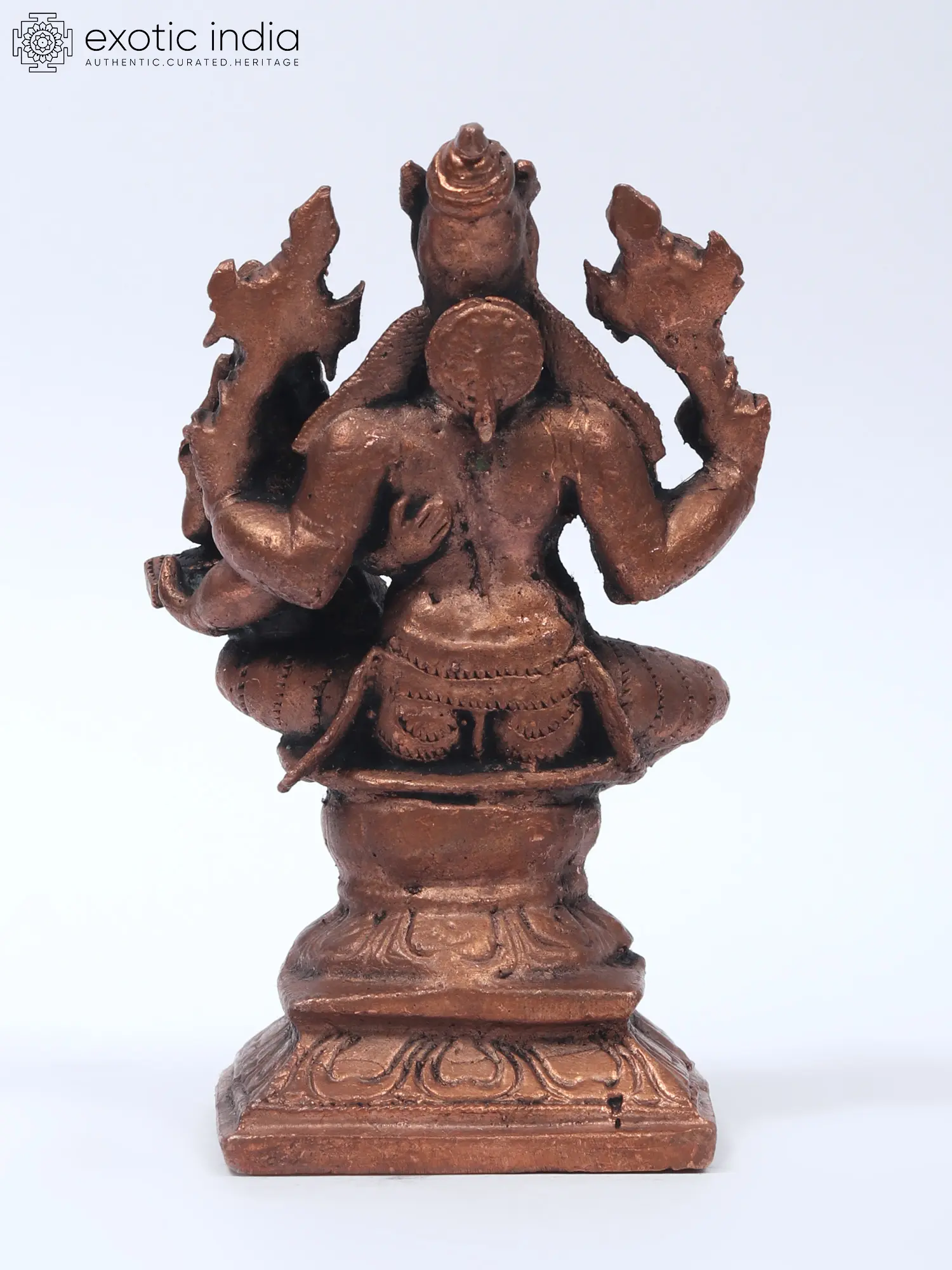 Invite the blessings of wisdom and prosperity into your home with this meticulously crafted copper statue portraying the divine Lord Hayagreeva and Goddess Lakshmi. This piece encapsulates a powerful spiritual presence, embodying the potent combination of knowledge and wealth. The statue displays Hayagreeva in a seated posture, with Goddess Lakshmi seated gracefully on his lap. This symbolizes the inseparable nature of wisdom and prosperity, where true wealth is often seen as an outcome of clear understanding and divine knowledge.
