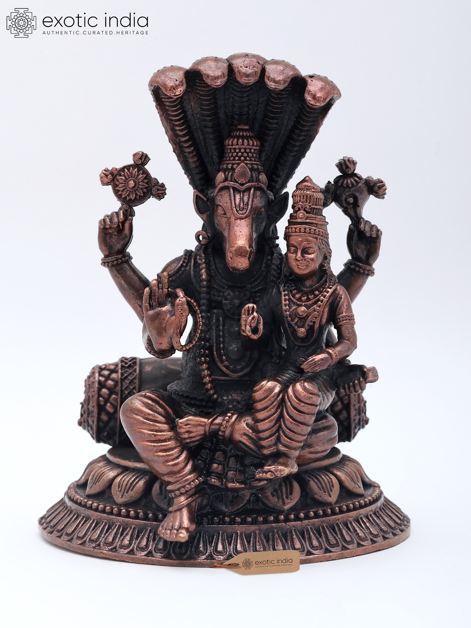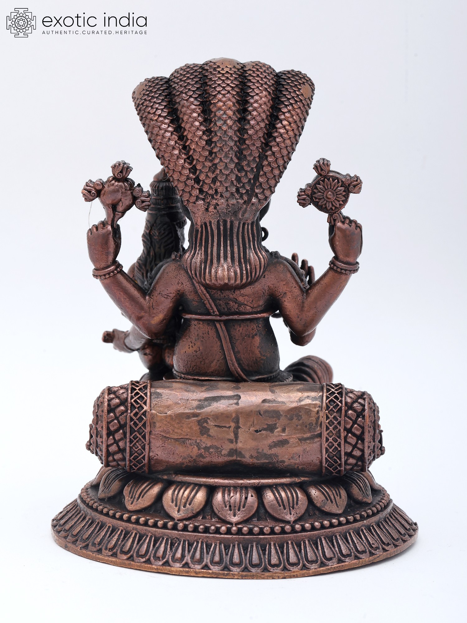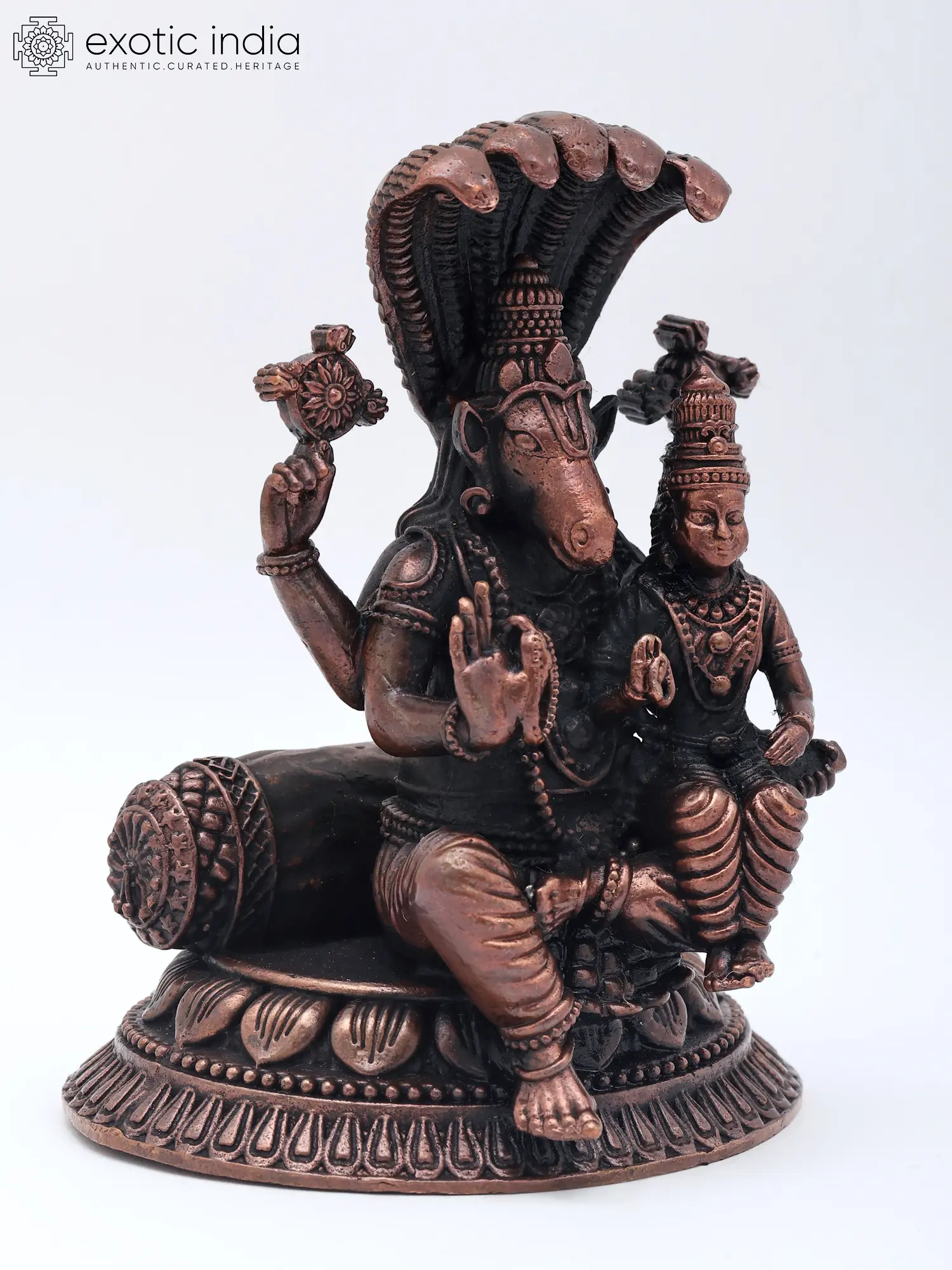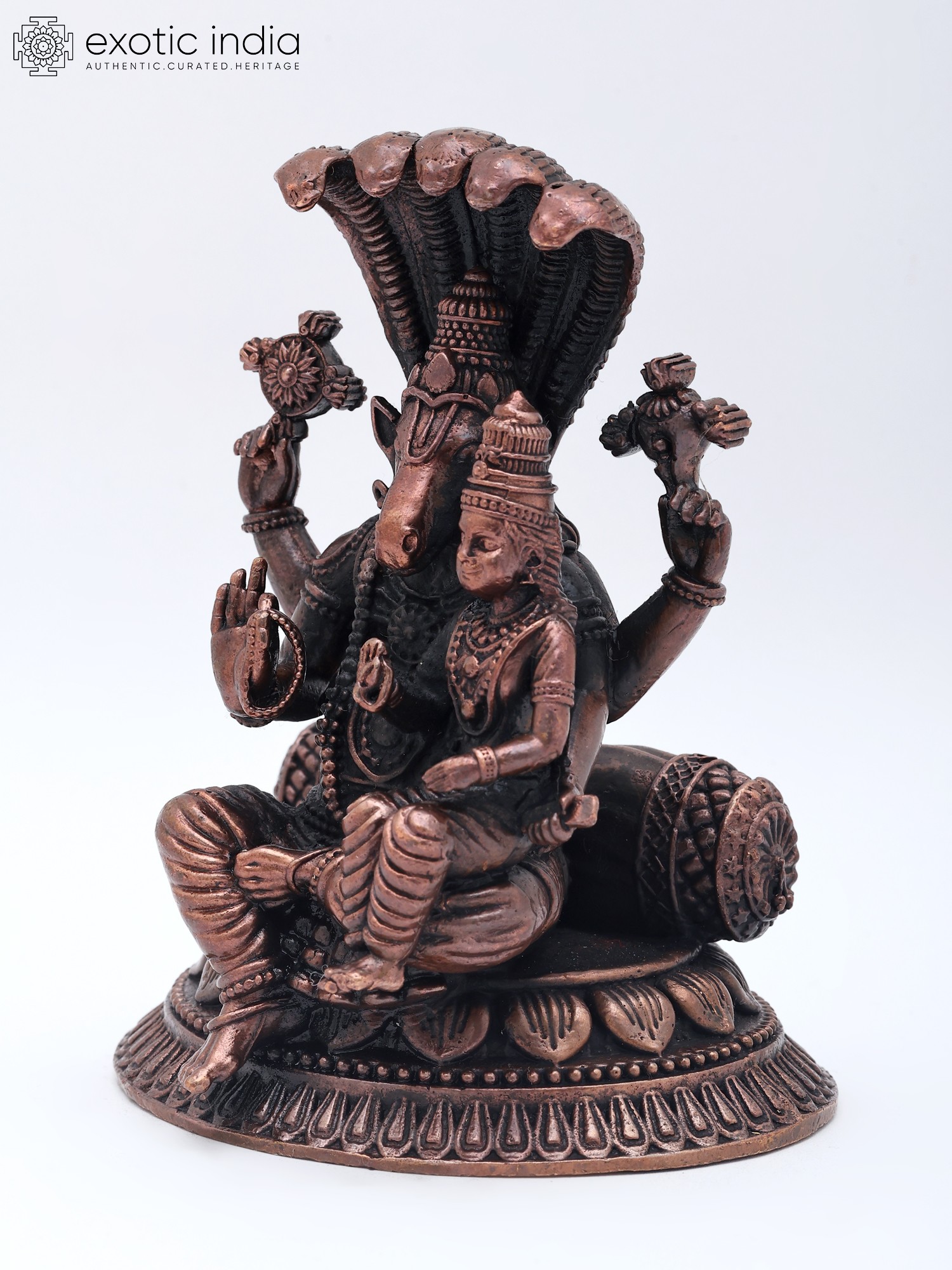 4" Lord Hayagreeva Idol with Devi Lakshmi Seated on Sheshnag | Copper Statue