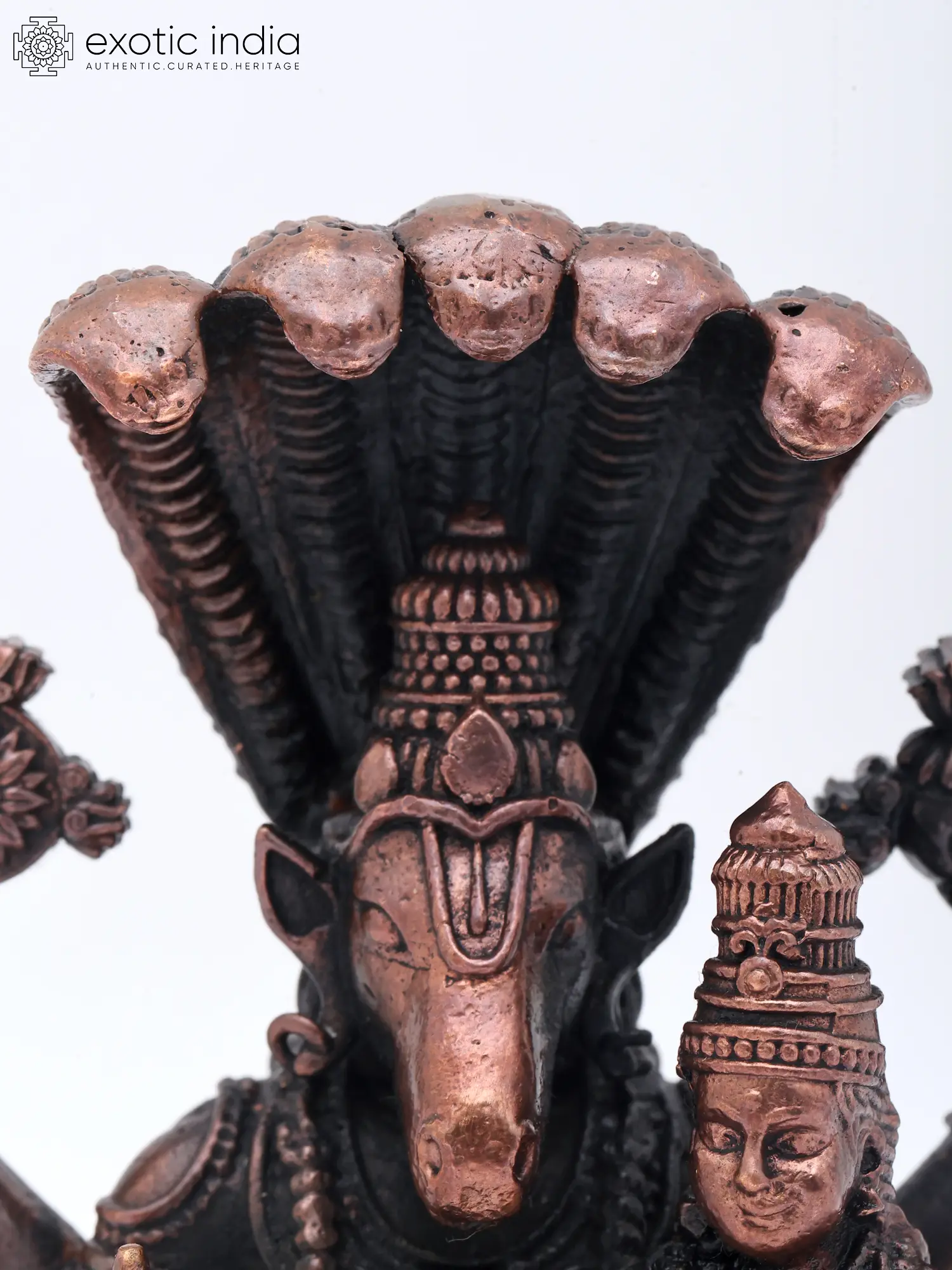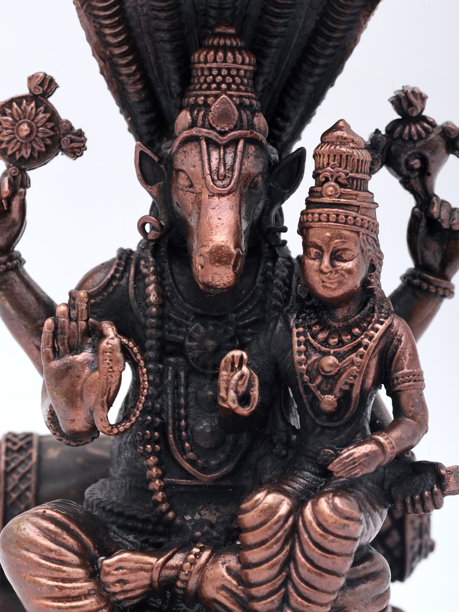 5" Small Lord Hayagriva with Devi Lakshmi Seated on Sheshnag | Copper Statue