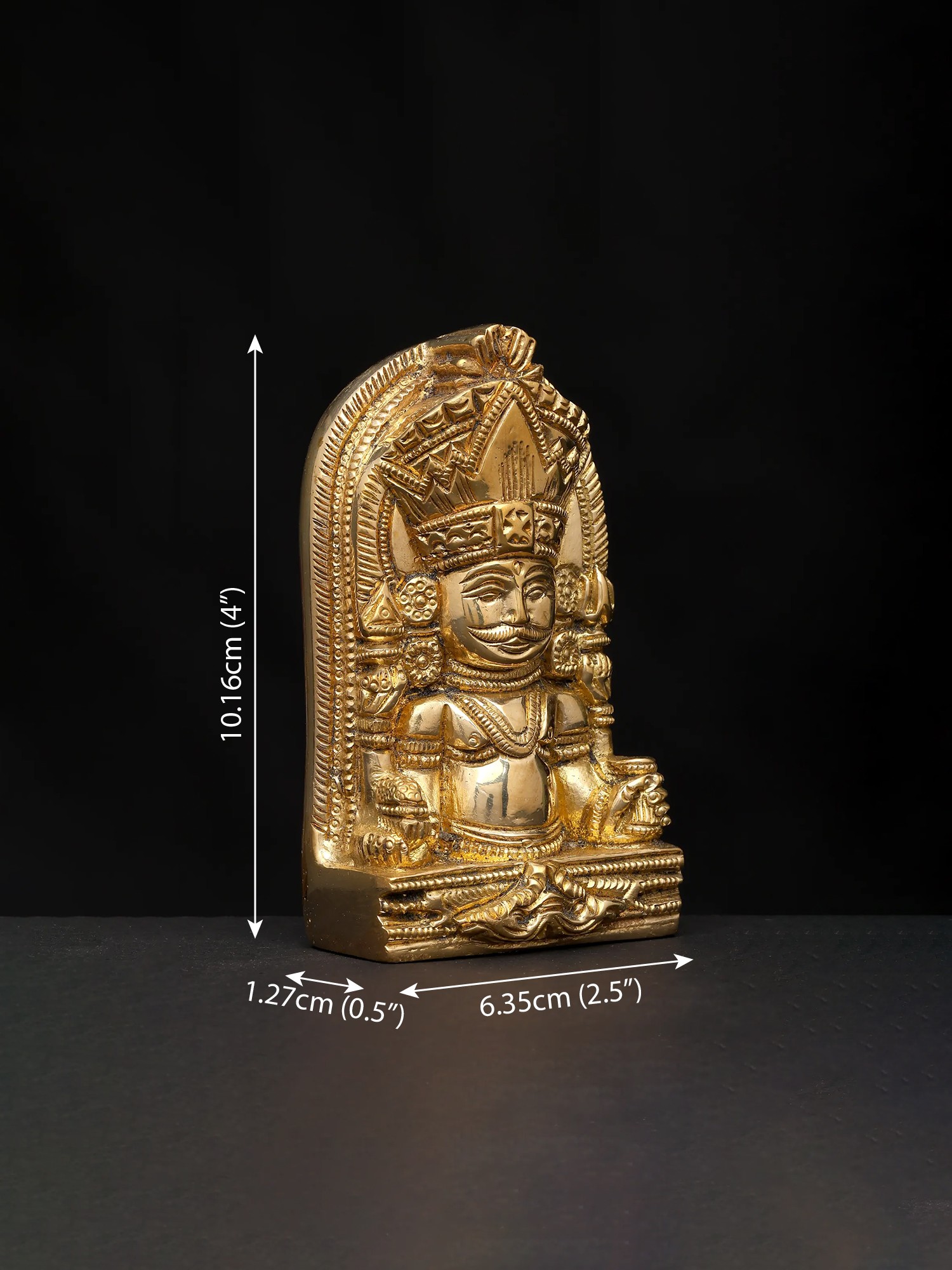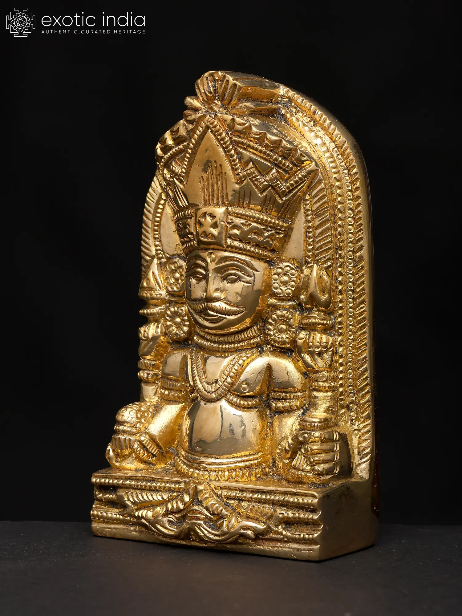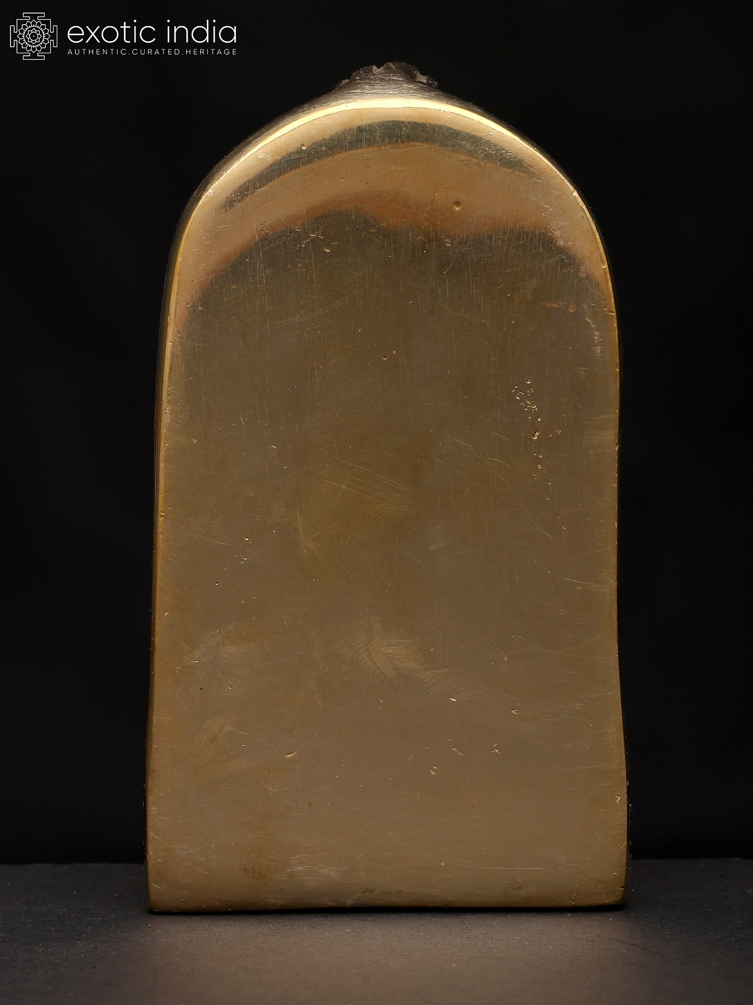 This exquisite brass statue captures the essence of Lord Nakoda, a revered figure in Jainism, in a form that resonates with devotional warmth and artistic splendor. Crafted from solid brass, a metal traditionally associated with purity and auspiciousness in Indian culture, this small-sized masterpiece is designed to bring a sense of peace and spiritual grounding to any space. The intricate detailing showcases the masterful craftsmanship that has been passed down through generations, reflecting a deep understanding of sacred iconography. The figure of Lord Nakoda is depicted with a serene countenance, emanating a tranquil aura. His commanding presence is enhanced by the elaborate headdress, adorned with patterns that speak of royalty and spiritual authority. The facial features, including the well-defined mustache and the gentle, knowing eyes, are rendered with remarkable precision, inviting contemplation and reverence. The statue is presented within an ornate archway, a common motif in Indian art that signifies a sacred portal or a divine enclosure, further elevating the divine presence.