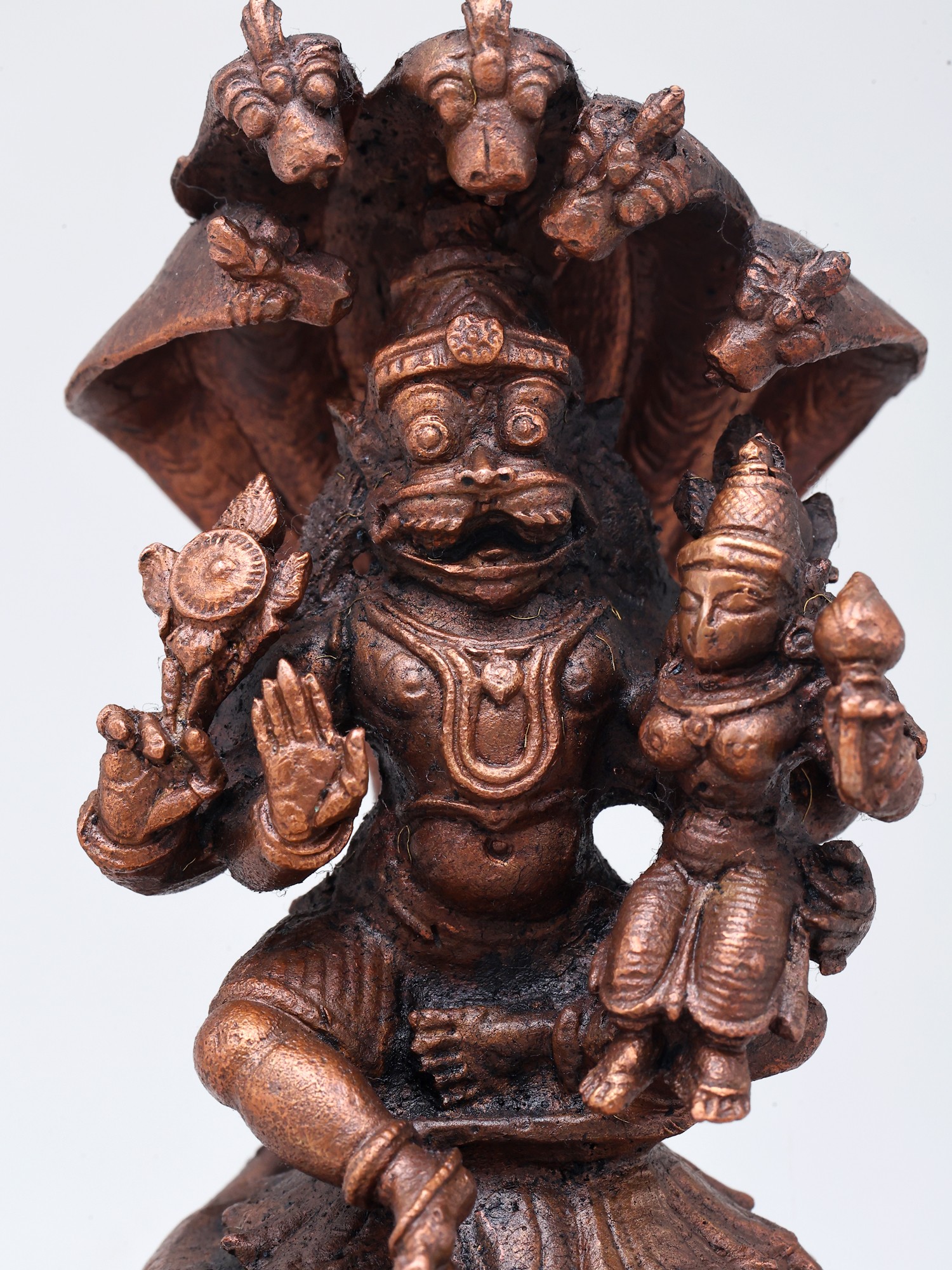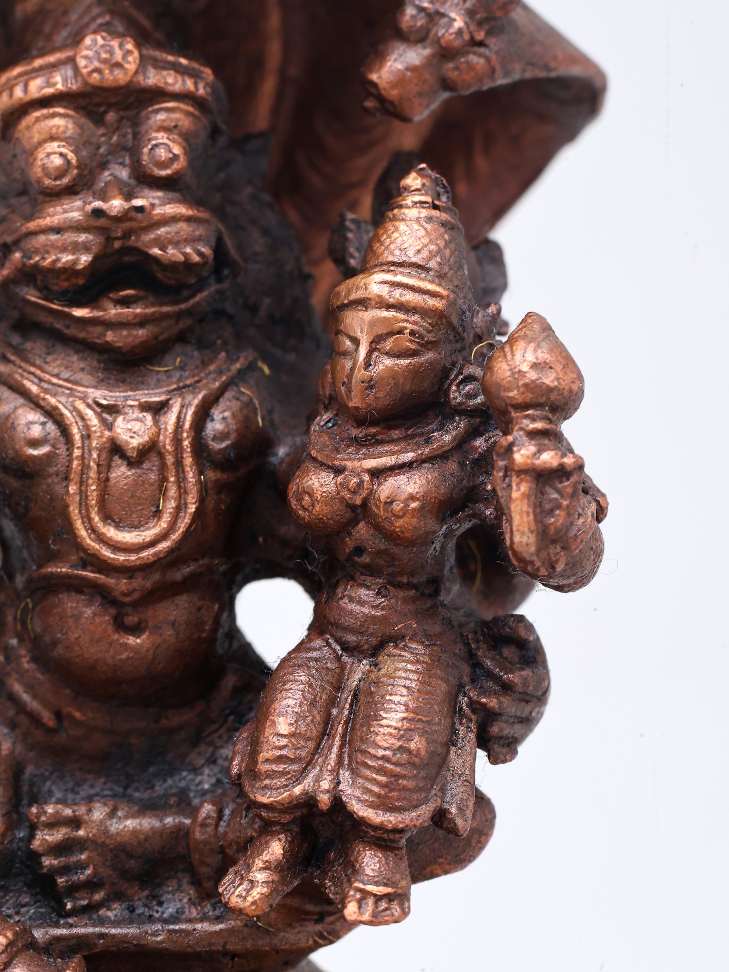 4" Small Lord Narasimha Seated with Devi Lakshmi | Copper Statue