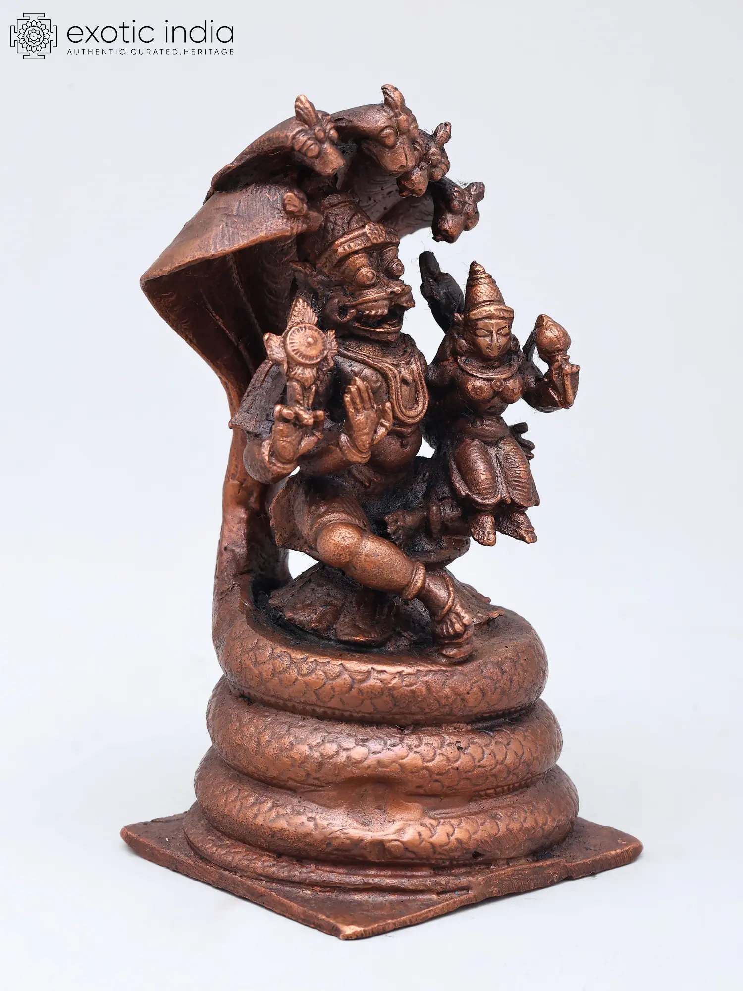 5" Small Blessing Lord Narasimha Seated with Devi Lakshmi | Copper Statue