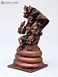 4" Small Lord Narasimha Seated on Kirtimukha Throne with Devi Lakshmi | Copper Statue