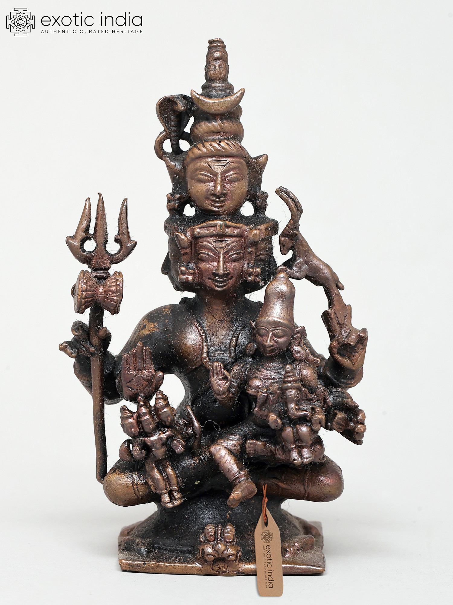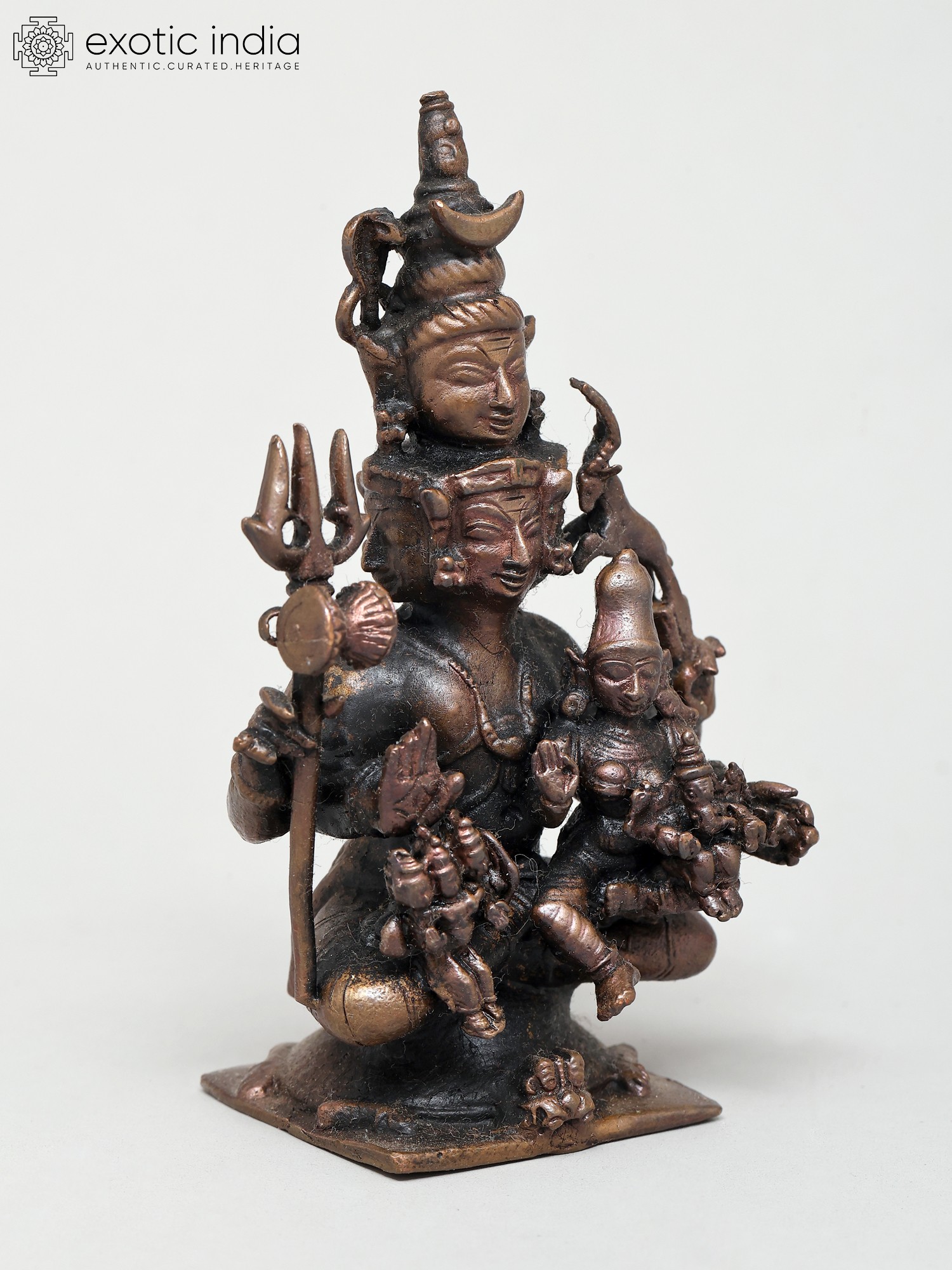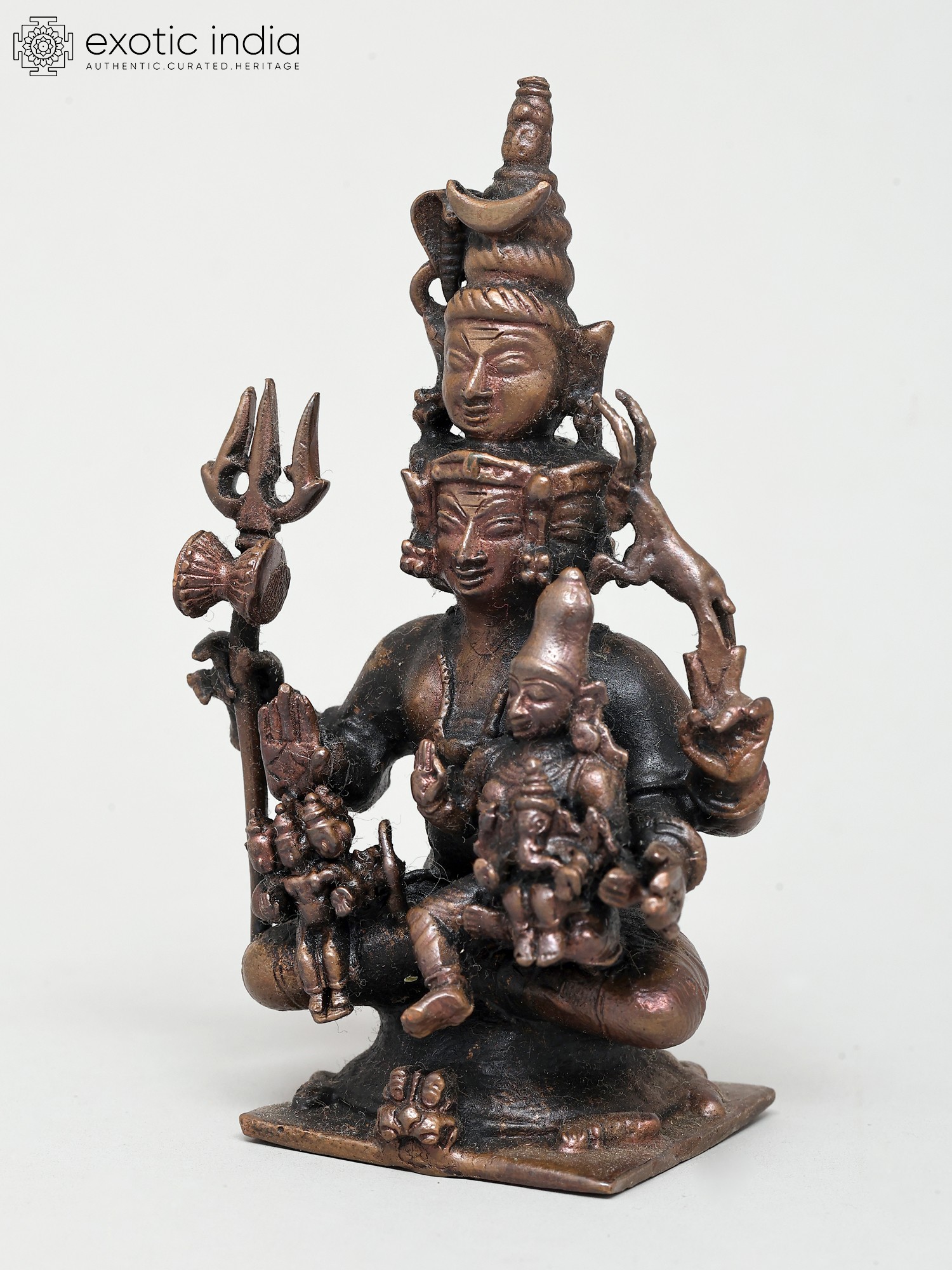 4" Small Four Armed Meditating Lord Shiva | Copper Statue