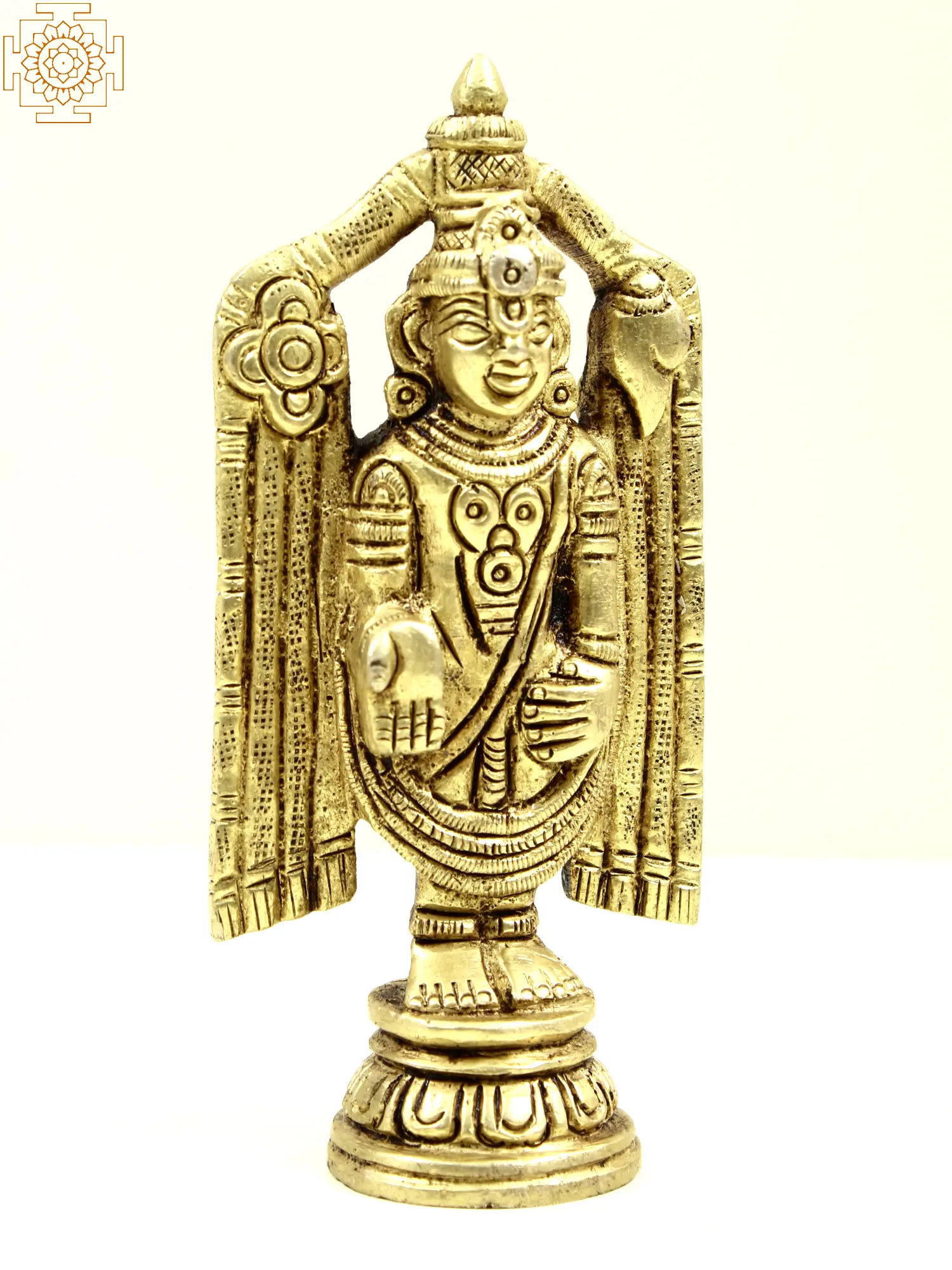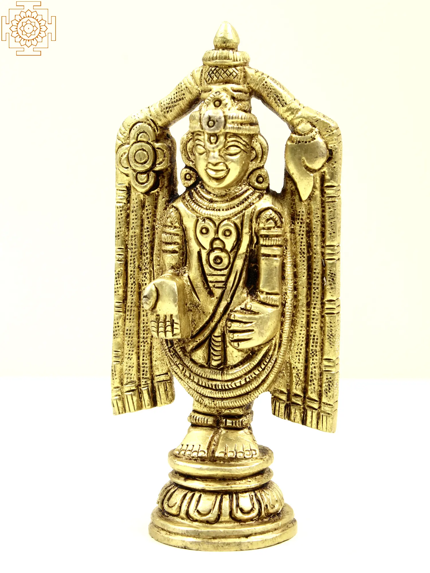 This stunning idol statue portrays Lord Venkateshwara, also known as Balaji, a revered form of Vishnu depicted standing majestically. Venkateshwara is associated with wealth, prosperity, and liberation. He is often adorned with a magnificent crown and clothed in rich garments, highlighting his divine status.