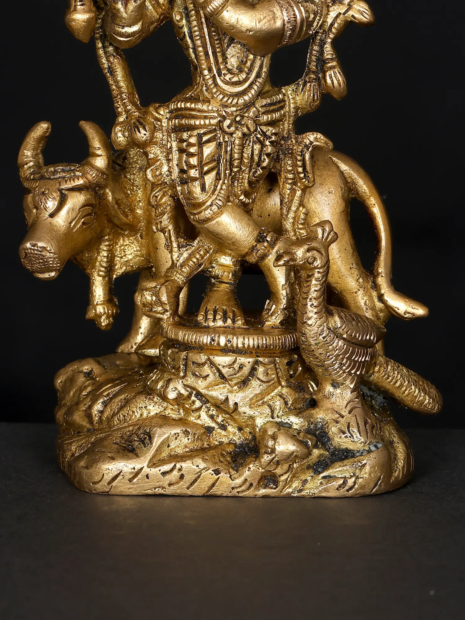 Rendered in lustrous brass, this statue is a testament to the skilled craftsmanship that brings ancient stories to life. The intricate details, from the delicate folds of Krishna's attire to the finely etched features of the cow and peacock, are a celebration of traditional Indian metalwork. Each element is meticulously sculpted to convey a sense of reverence and artistic excellence. The warm, golden hue of the brass symbolizes prosperity, purity, and divine grace. This piece serves as a beautiful reminder of Krishna's teachings of dharma, love, and selfless devotion. Placing this statue in your home is an invitation to experience the divine harmony and spiritual solace that Lord Krishna embodies, bringing a touch of sacred art and timeless mythology into your living space.