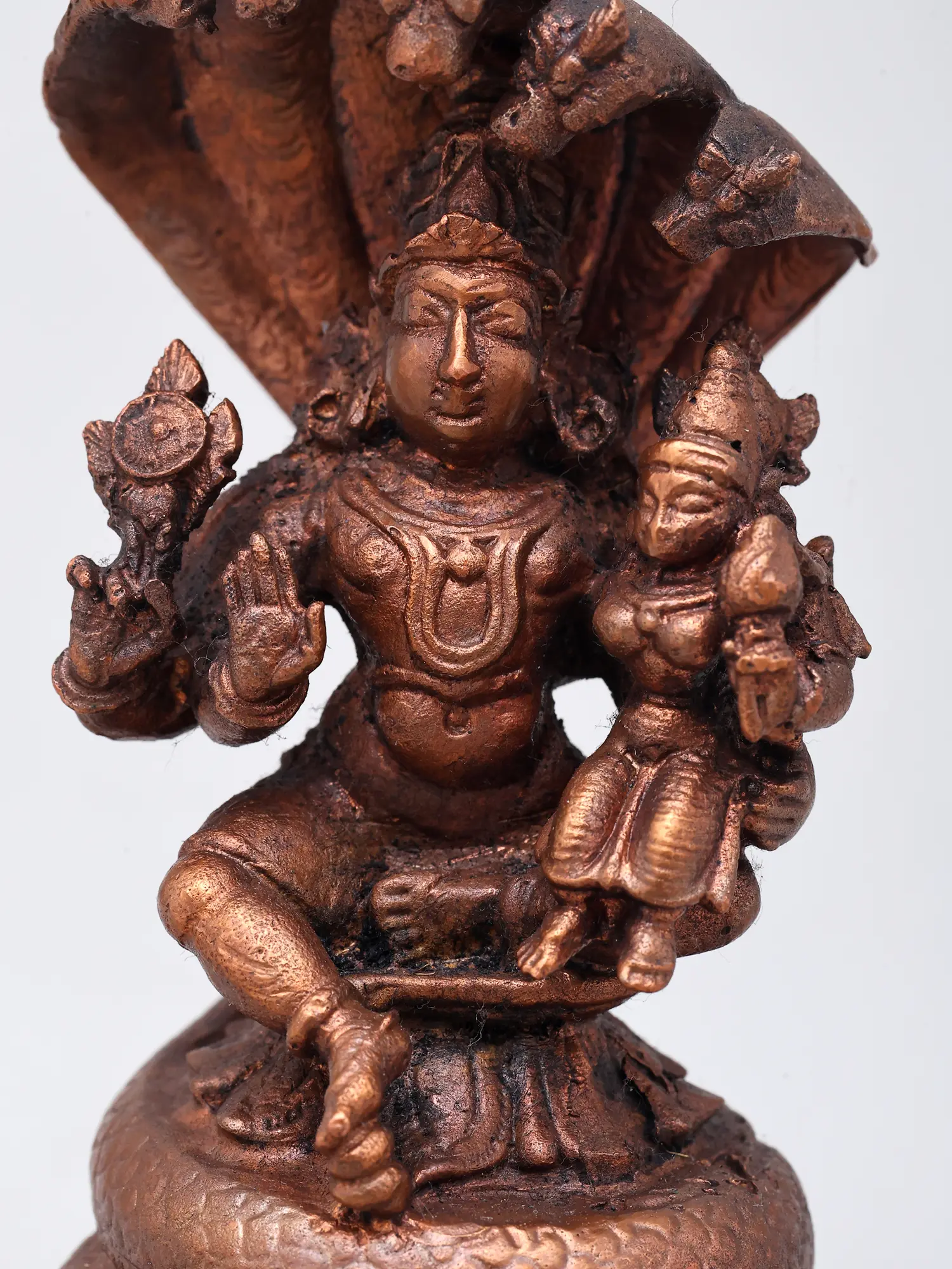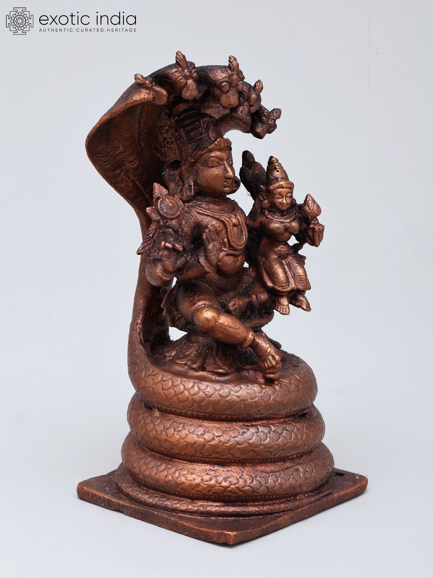 4" Small Lord Vishnu with Devi Lakshmi Seated on Kirtimukha Throne | Copper Statue