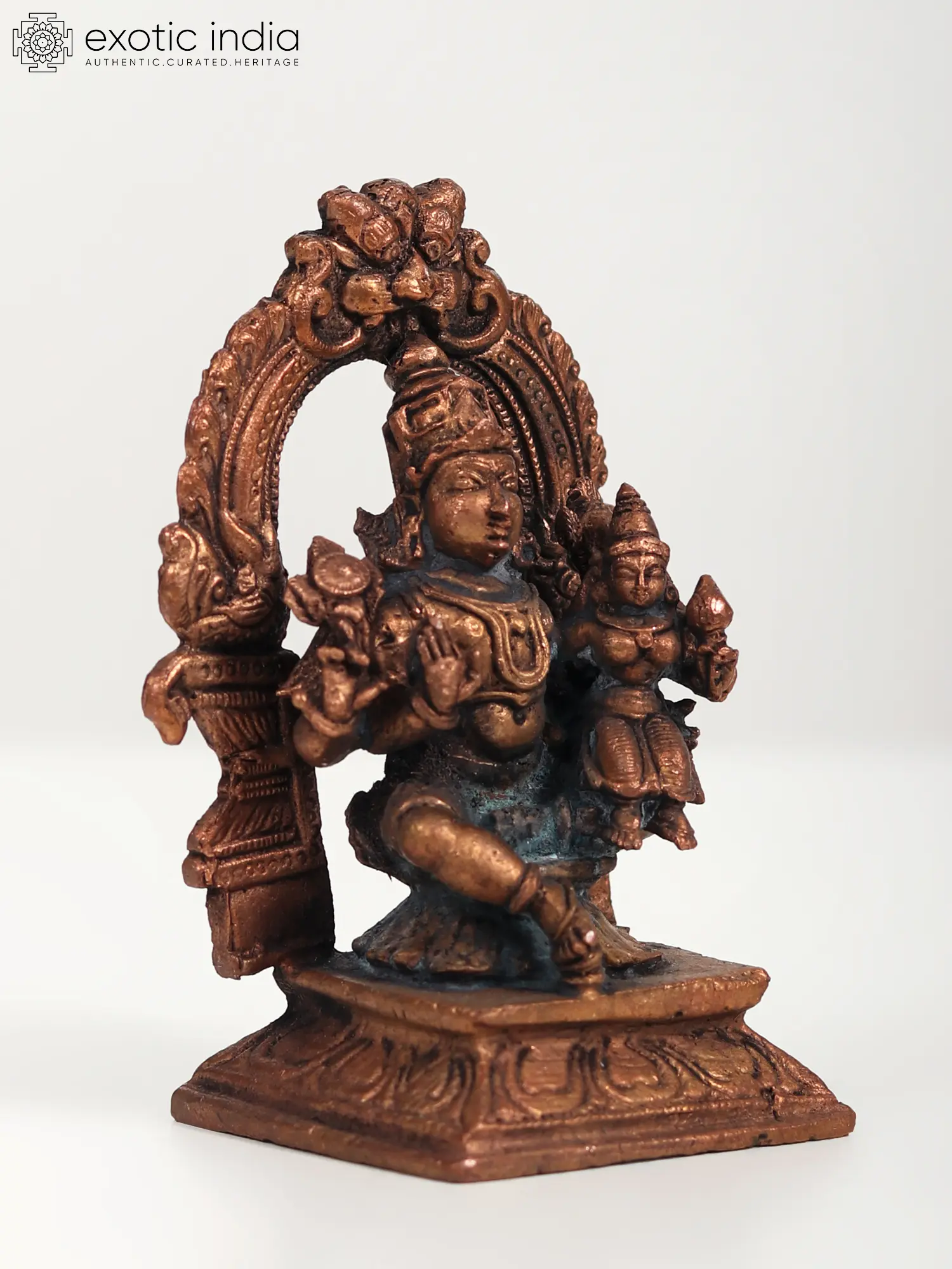 This Small Lord Vishnu with Devi Lakshmi Seated on Kirtimukha Throne Copper Statue serves as a divine focal point for daily worship. This sacred representation of Lakshmi-Vishnu, seated on a Kirtimukha Throne, invokes blessings of prosperity, harmony, and spiritual abundance. Worshipping this statue fosters familial well-being, and financial stability, and invokes divine grace.