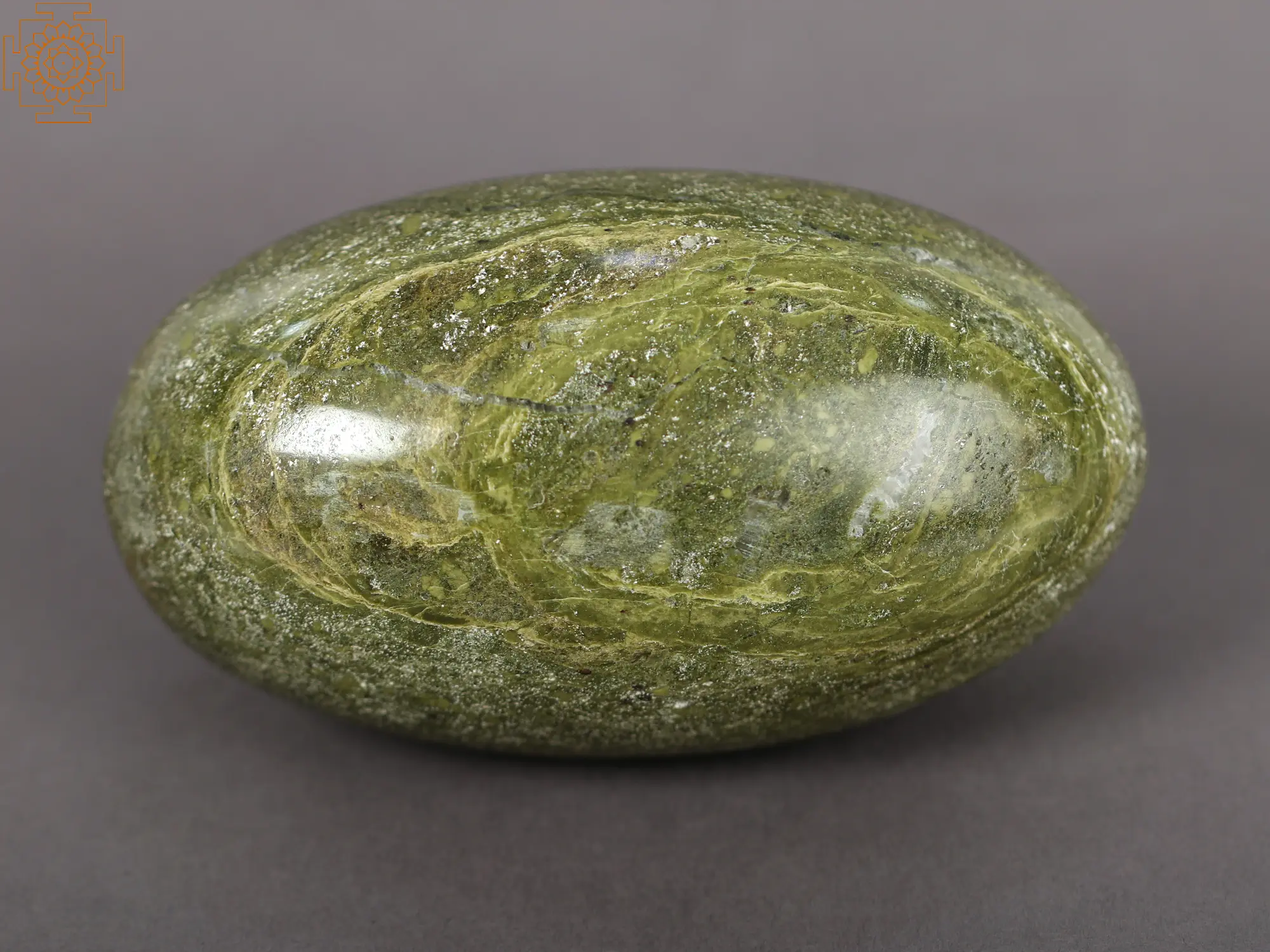 This Lingam, which represents Lord Shiva's creative force, is usually depicted as a cylindrical block of stone or wood. It features a rounded top end and a yoni, or female organ, at the bottom that is shaped like a loop with a groove all around it for water to flow out. This Small Natural Serpentine Lingam is a remarkable sacred artifact crafted from serpentine stone that represents the power of Lord Shiva. Serpentine is highly regarded for its healing and transformative properties. In this Lingam form, it embodies the essence of Lord Shiva and his transformative energy. Worshipped by devotees, it symbolizes renewal and spiritual growth. The natural patterns within the stone add to its mystique. This piece serves as a conduit for inner transformation and a tangible connection to the divine, making it a cherished spiritual object.