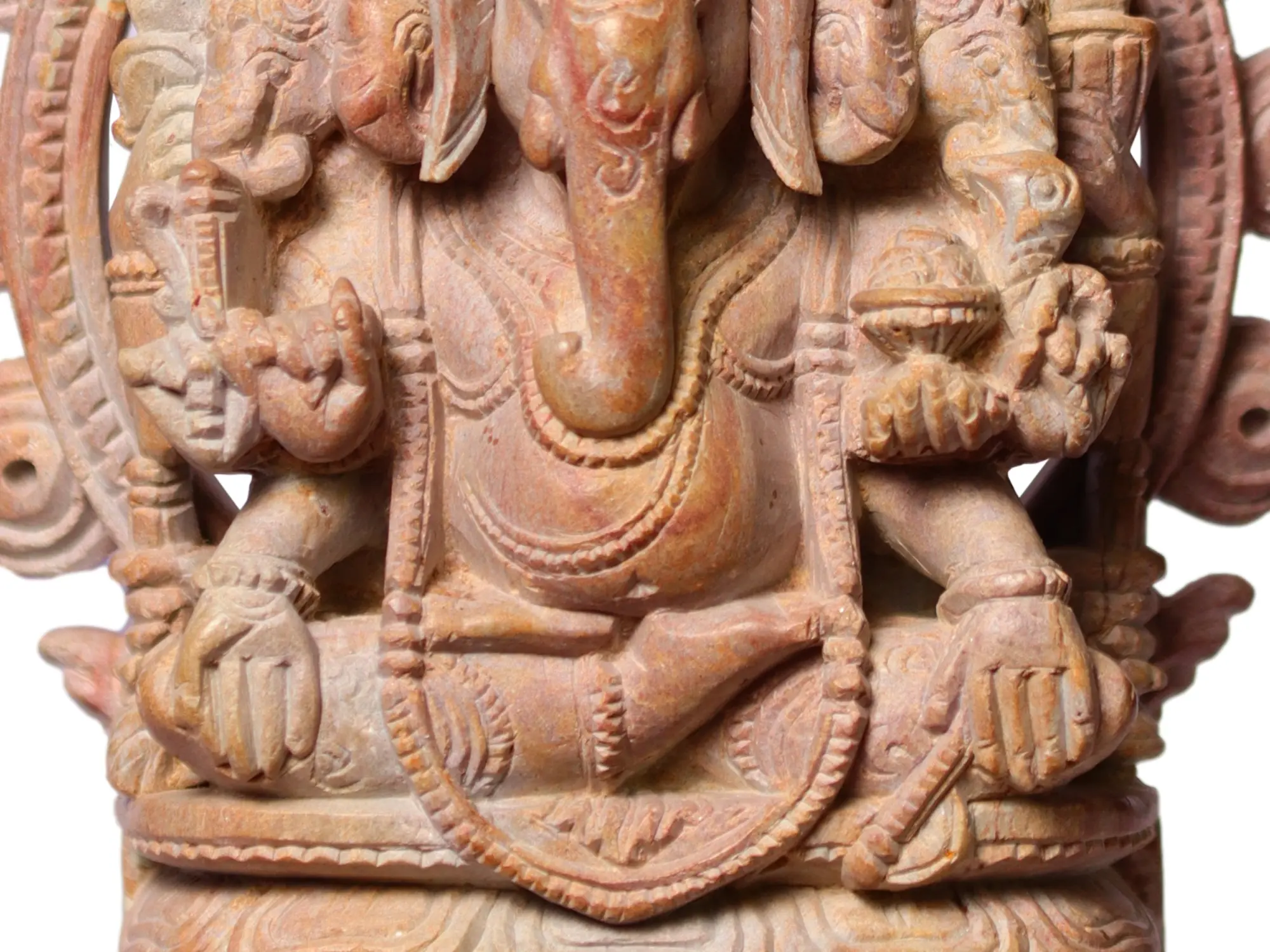 16" Wood Framed Lord Ganesha Wall Hanging Statue in Brass
