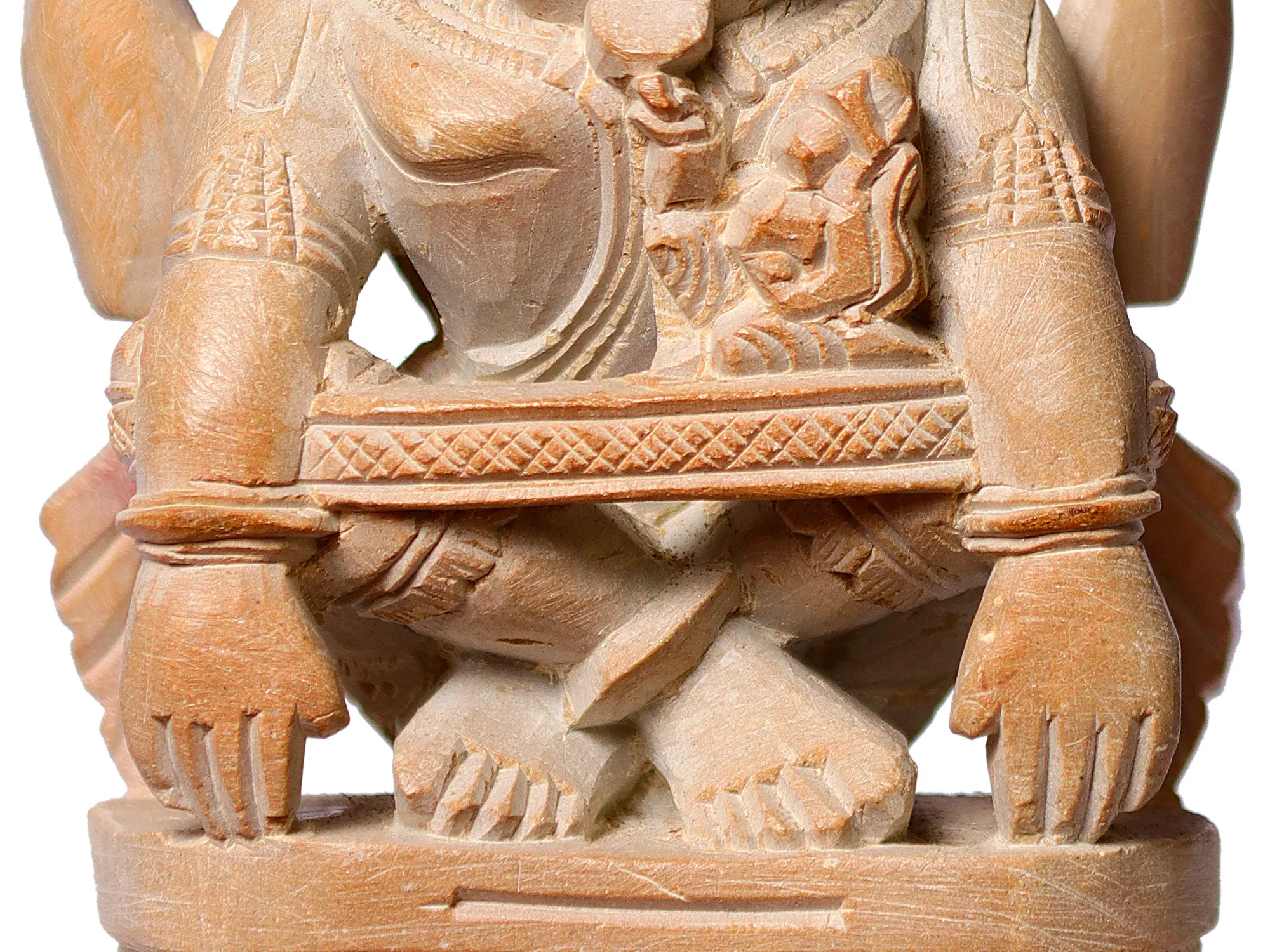 Hailing from the culturally rich region of Odisha, known for its vibrant traditions of stone carving, this statue is a testament to the skill and dedication of local artisans. The intricate detailing, from the elaborate headdress to the powerful limbs, showcases a deep understanding of both the spiritual iconography and the natural beauty of the stone. The soft pink hue of the stone adds a unique charm, lending a gentler, yet still formidable, aura to the deity. Such carvings have been a cherished part of Indian art for centuries, adorning temples, homes, and places of worship, serving as a constant reminder of the divine presence and the eternal struggle between good and evil. The posture of Narasimha, often depicted in a seated or crouching stance, ready to pounce or to hold his vanquished foe, is captured here with dynamic tension. The craftsman has paid close attention to the musculature and the form, imbuing the stone with a sense of life and imminent action. This piece is more than just a decorative object; it is a conduit to the divine, an embodiment of protection, justice, and the ultimate triumph of dharma over adharma. Its compact size makes it suitable for personal altars, meditation spaces, or as a cherished collectible that brings a touch of spiritual significance and artistic excellence into your life.