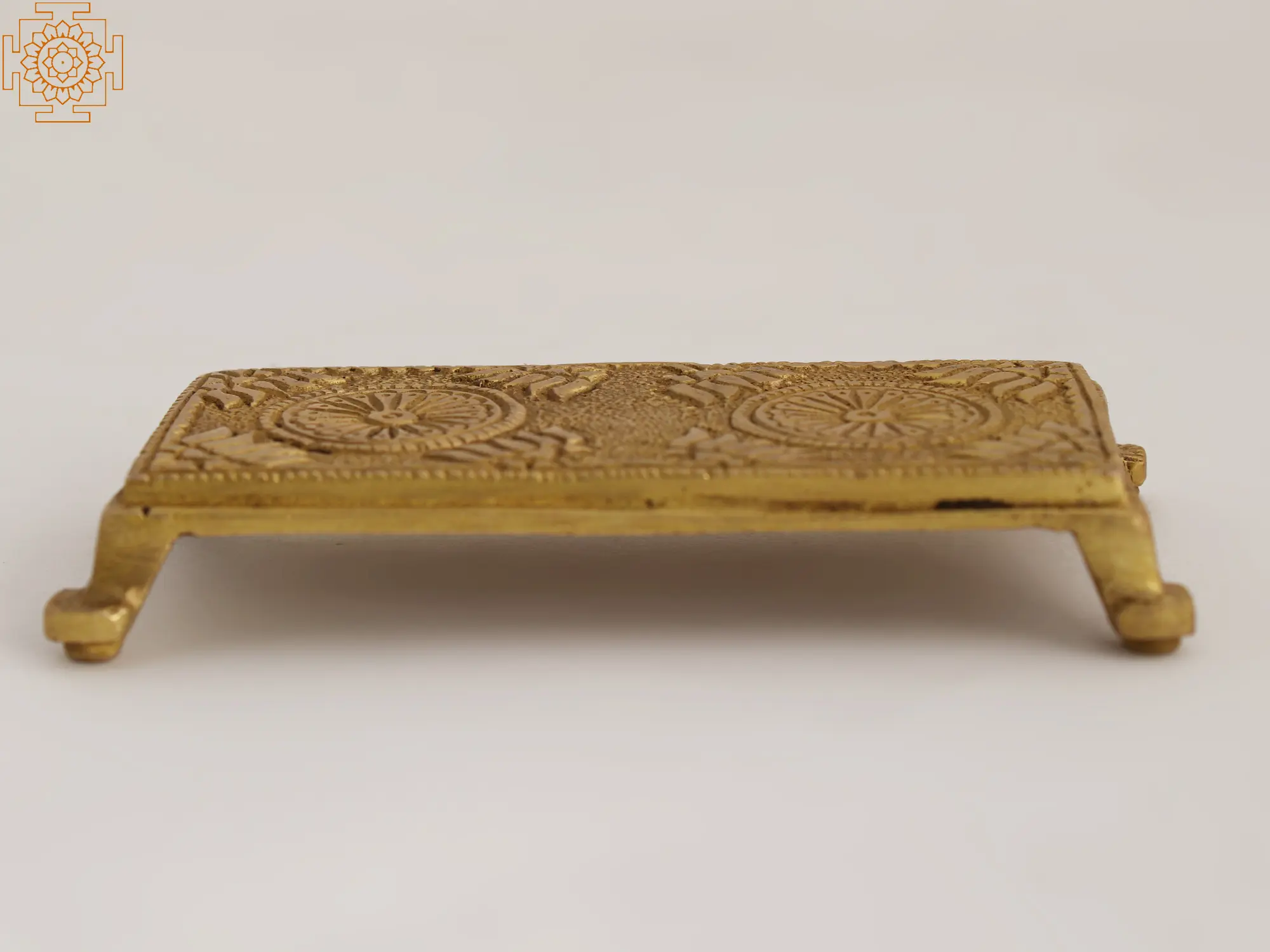 The depiction of flowers on household items is an age-old custom. Various products that we use in our daily lives and for regular worship include flower designs that enhance their attractiveness while also providing the art form with the auspiciousness of the specific flower. This chowki, a traditional seating object, is the best example of the graceful depiction of flower patterns on regular objects. It is crafted of high-quality brass and has a blossoming flower in the centre surrounded by lotus designs. The use of brass strengthens it and ensures its longevity. This brass chowki will draw a lot of attention with all of its unusual characteristics. It is one of the most ideal blends of tradition, story, and utility.